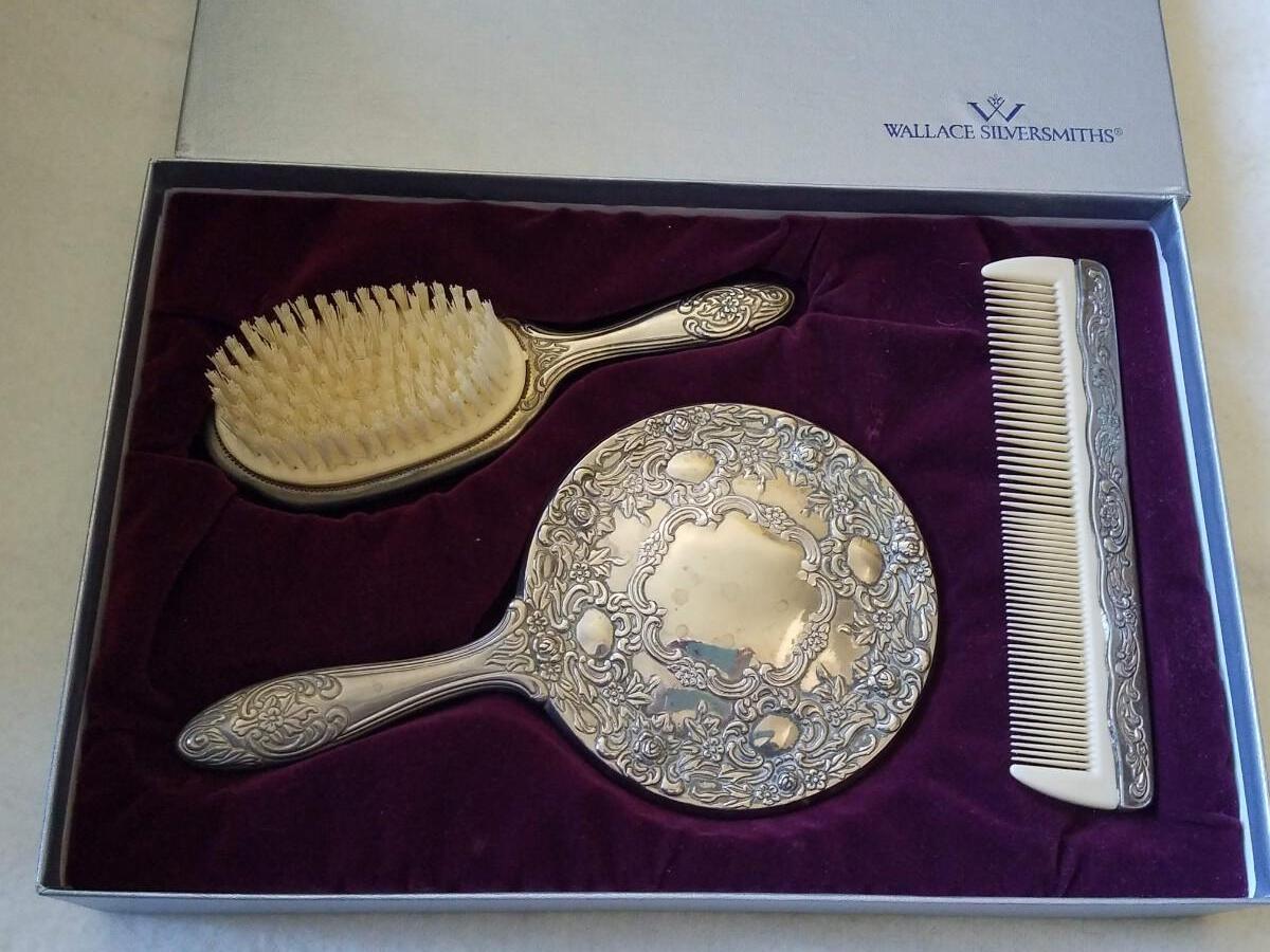 Wallace Silversmiths 3-Piece Set with Sterling Silver Hand Mirror