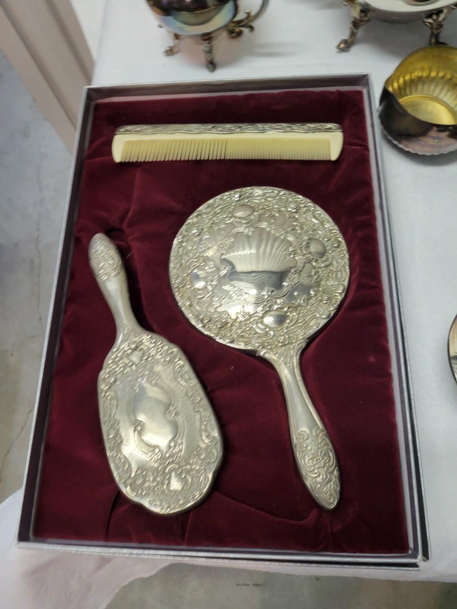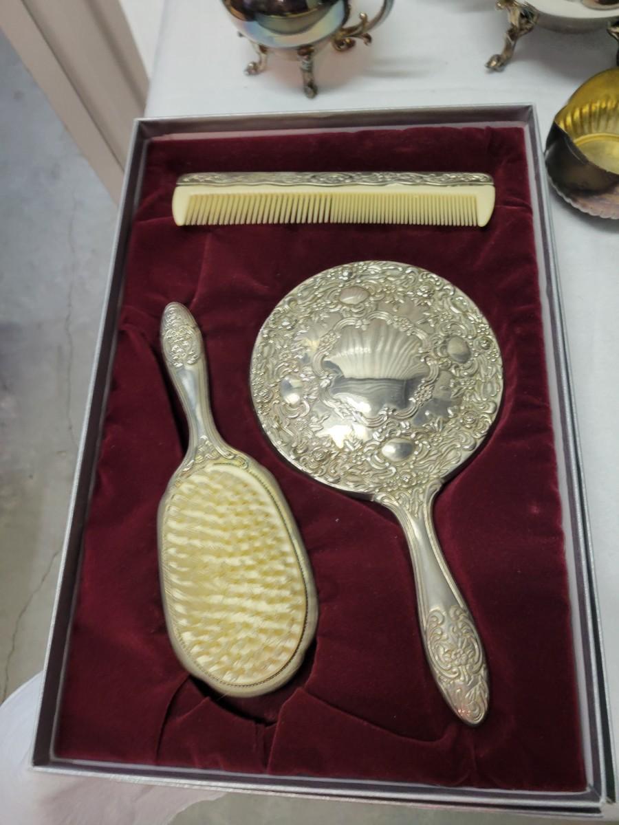 Brush, comb and mirror in original box.
