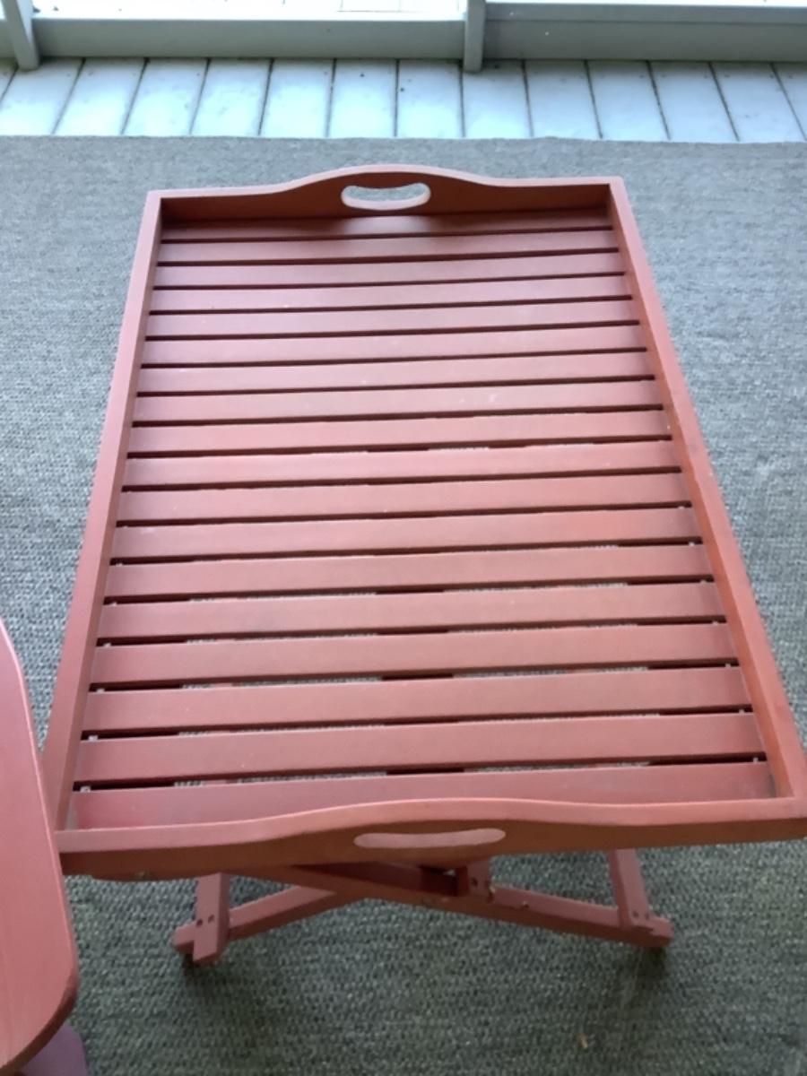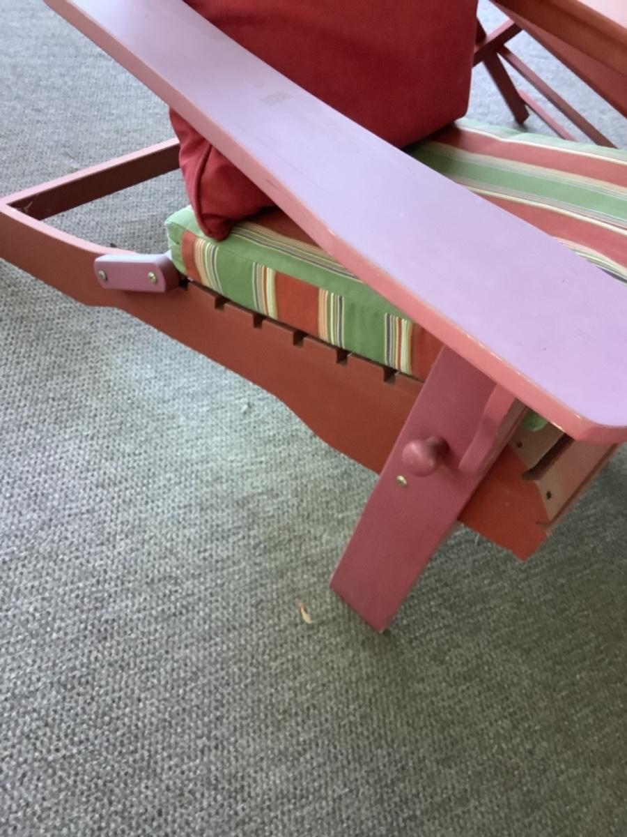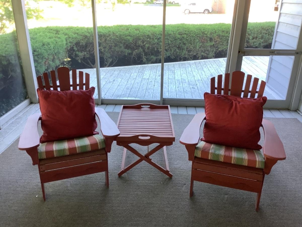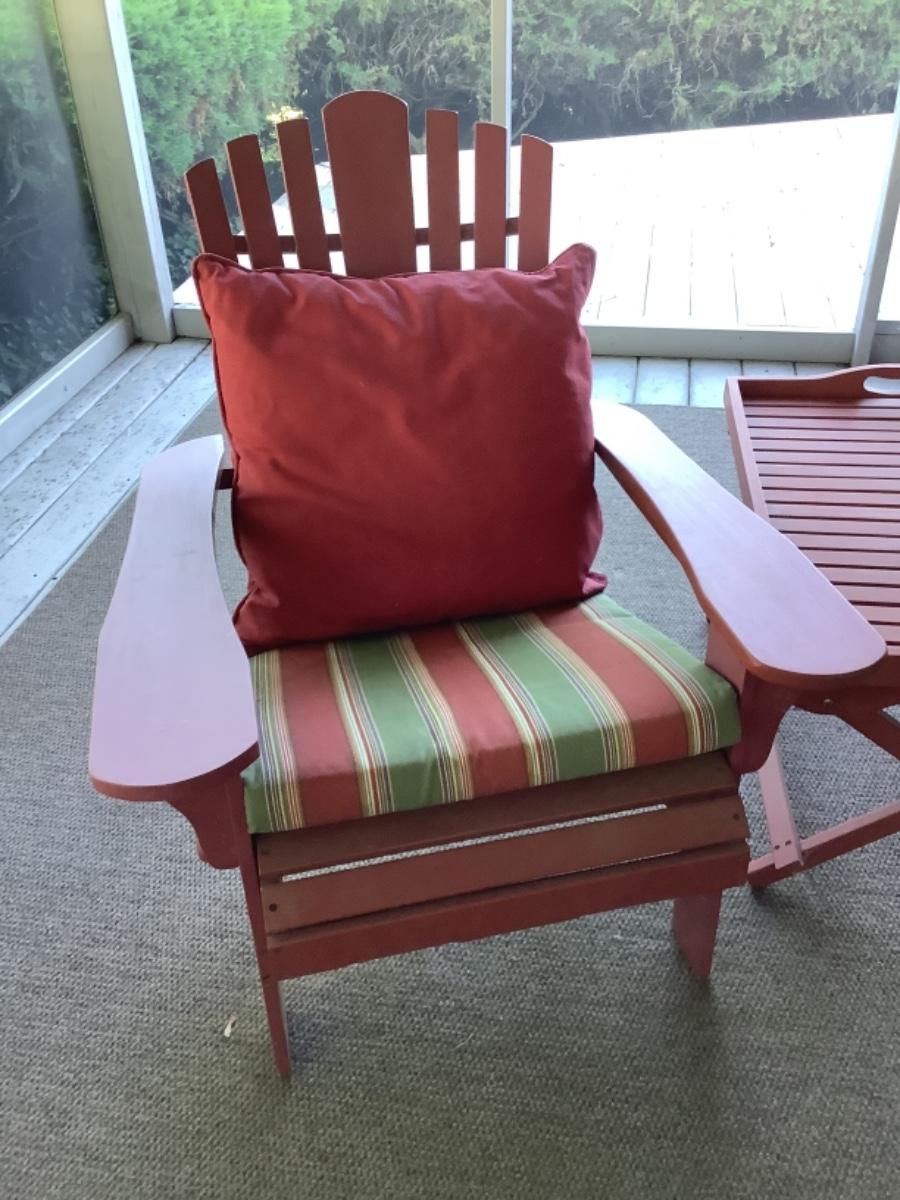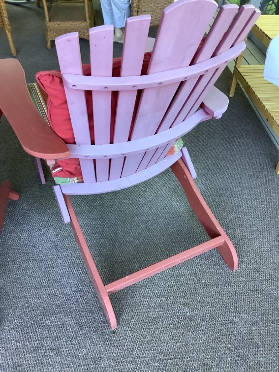2 folding Adirondack Chairs 30” Wide x 37” High (some fading), please see pics.