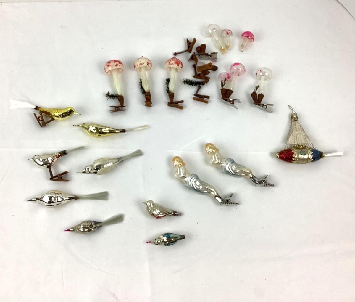 150 Antique Glass Clip On Ornaments Mushrooms Mermaids Zephyr