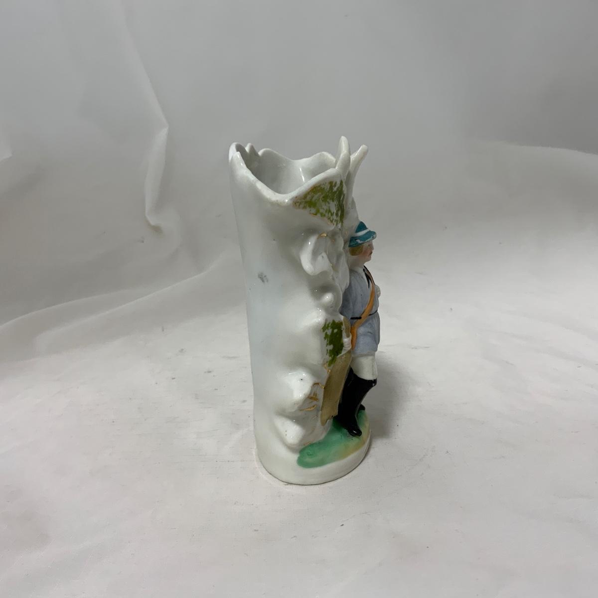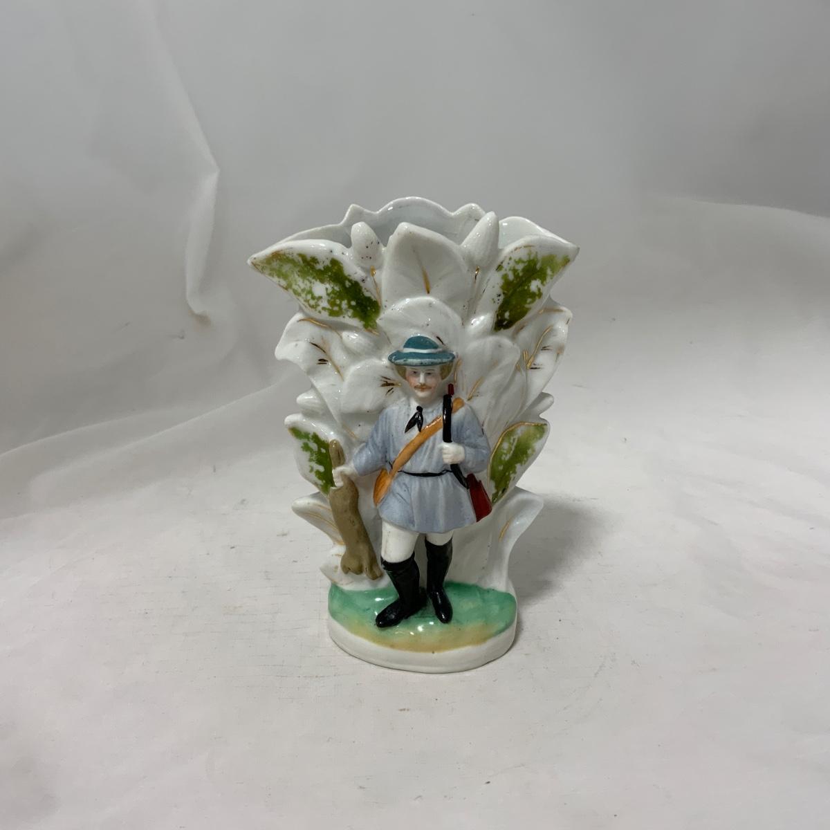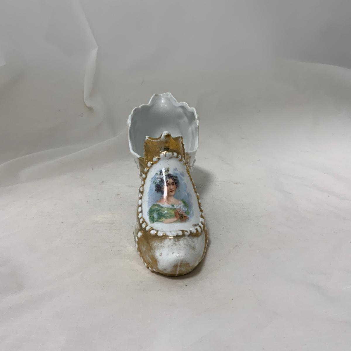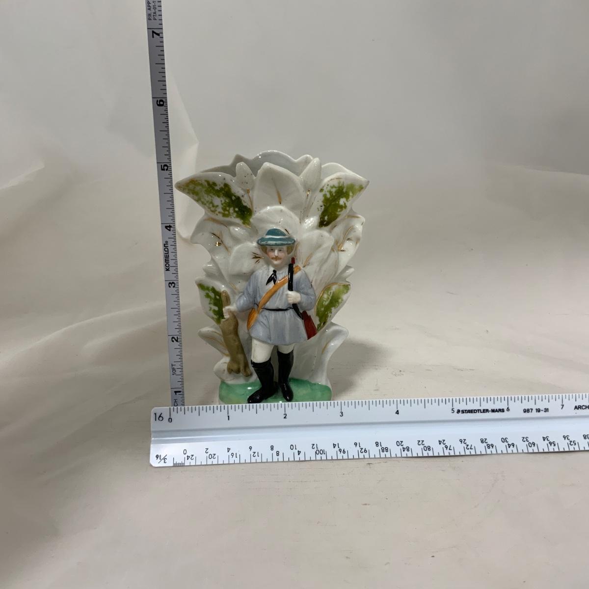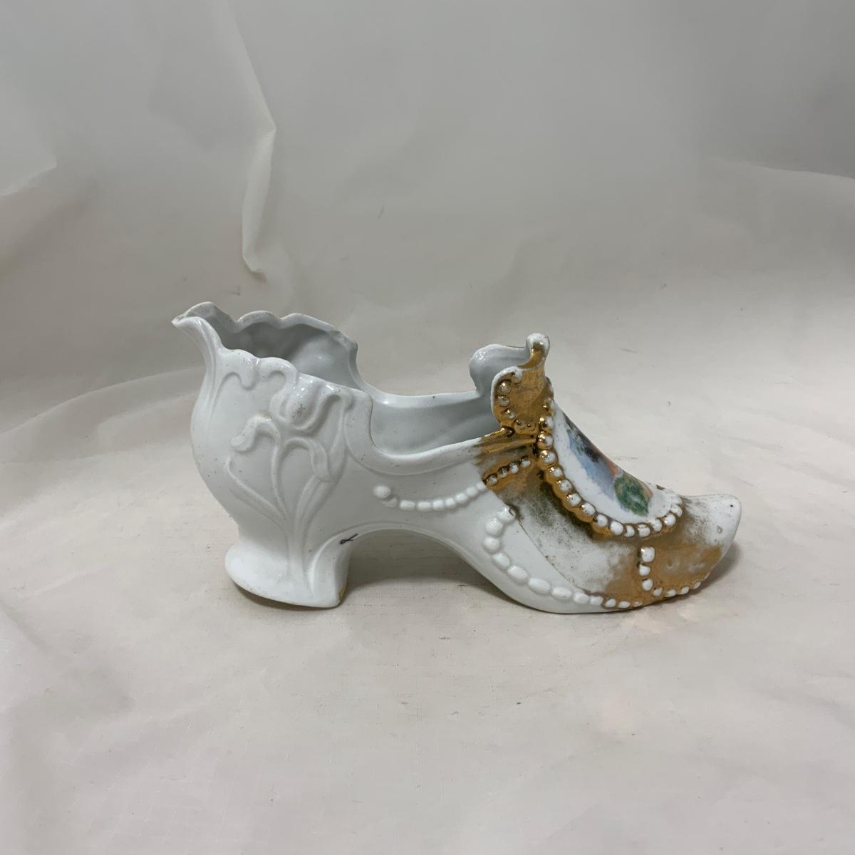Two fun pieces! The Character Vase shows someone very proud of hunting and the German Shoe is quite elegant. The vase is older than the shoe, circa 1860. The shoe is right before the turn of the century, 1890. Please see photos for details and condition. ::: Shipping is available on this lot. If you require shipping you must let us know at the close of the auction. We will coordinate with you after the item has been won. Shipping fees will include insurance up to or exceeding the value of all items being mailed. If you have any questions regarding this lot please contact the auctioneer either via this website, by direct email or by phone. PICK UP TIMES and other important information can be found in the TERMS and DESCRIPTION of the auction. Please take a look for pertinent information. Thanks!