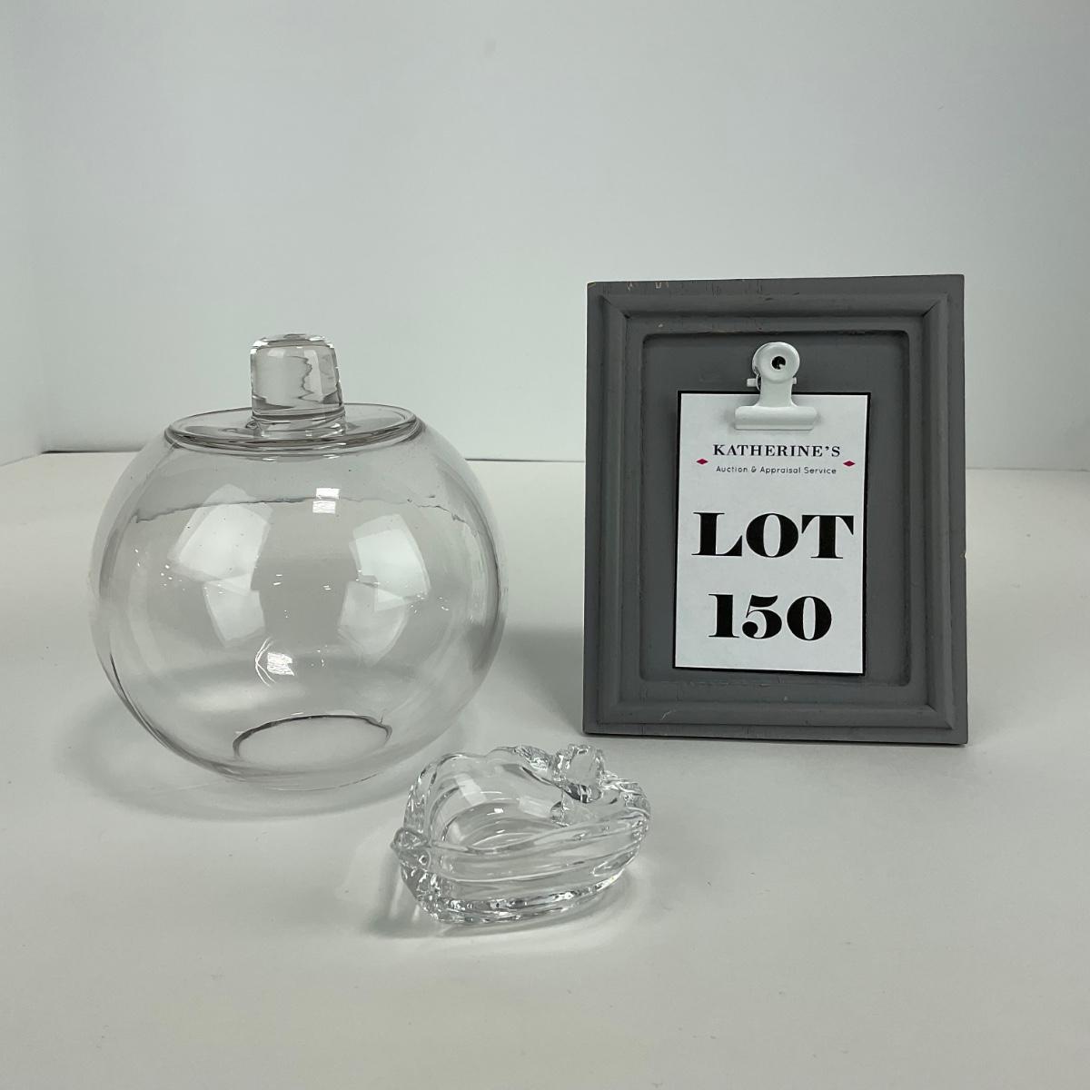 Two pieces of clear glass one handled dome and one clear glass salt cellar with some damage. Please see photos for details and condition. Any condition statement is given as a courtesy to a client, is an opinion, and should not be treated as a statement of fact. Reference to condition written, oral or within a condition report shall not be regarded as a full account of condition and may not include all defects, alterations, or restorations. Absence of a condition report does not imply a lot is flawless or lacking imperfections or damage. Katherine’s Auction & Appraisal Service shall have no responsibility for any error or omission. Returns shall not be accepted on the basis of condition. ::: Shipping is available on this lot. If you require shipping you must let us know at the close of the auction. We will coordinate with you after the item has been won. Shipping fees will include insurance up to or exceeding the value of all items being mailed. If you have any questions regarding this lot please contact the auctioneer either via this website, by direct email or by phone. PICK UP TIMES and other important information can be found in the TERMS and DESCRIPTION of the auction. Please take a look for pertinent information. Thanks!