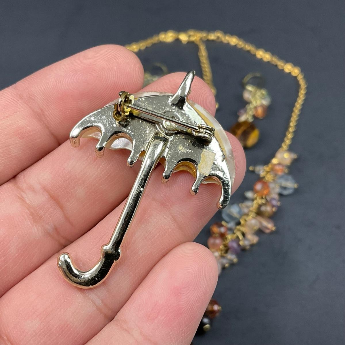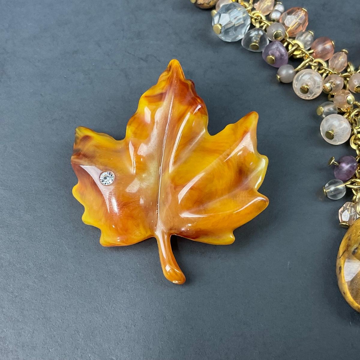 One vintage fall colored beaded necklace and matching earrings, one vintage fall leaf pin and one vintage umbrella pin. This piece does have some scuffs, scratches, marks, or slight damage, but otherwise appears to be in great shape. Please see photos for details and condition. Any condition statement is given as a courtesy to a client, is an opinion, and should not be treated as a statement of fact. Reference to condition written, oral or within a condition report shall not be regarded as a full account of condition and may not include all defects, alterations, or restorations. Absence of a condition report does not imply a lot is flawless or lacking imperfections or damage. Katherine’s Auction & Appraisal Service shall have no responsibility for any error or omission. Returns shall not be accepted on the basis of condition. ::: Shipping is available on this lot. If you require shipping you must let us know at the close of the auction. We will coordinate with you after the item has been won. Shipping fees will include insurance up to or exceeding the value of all items being mailed. If you have any questions regarding this lot please contact the auctioneer either via this website, by direct email or by phone. PICK UP TIMES and other important information can be found in the TERMS and DESCRIPTION of the auction. Please take a look for pertinent information. Thanks!