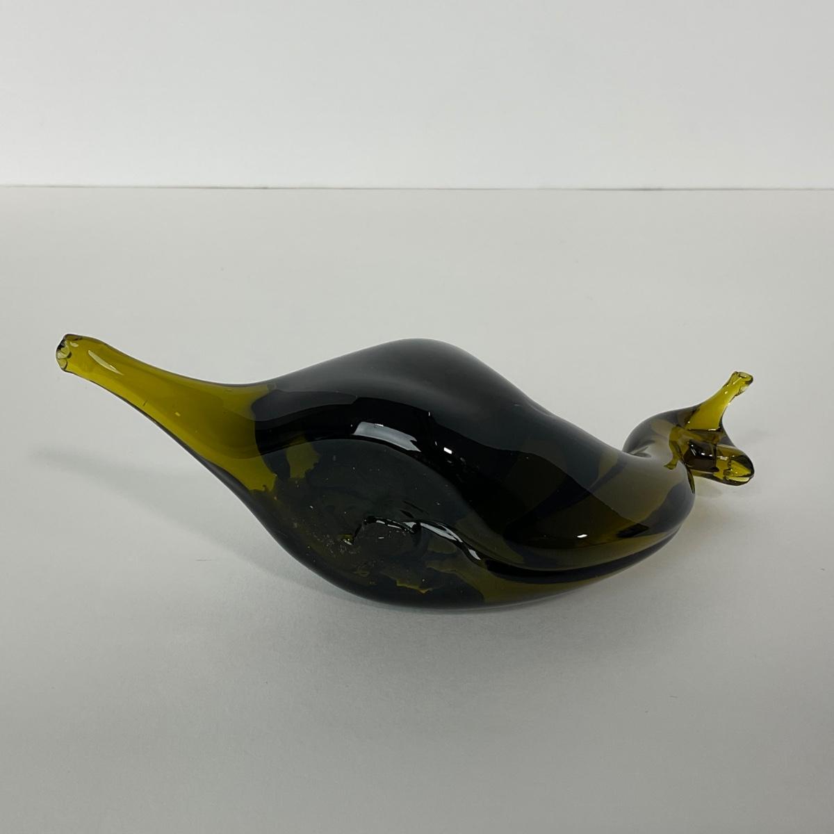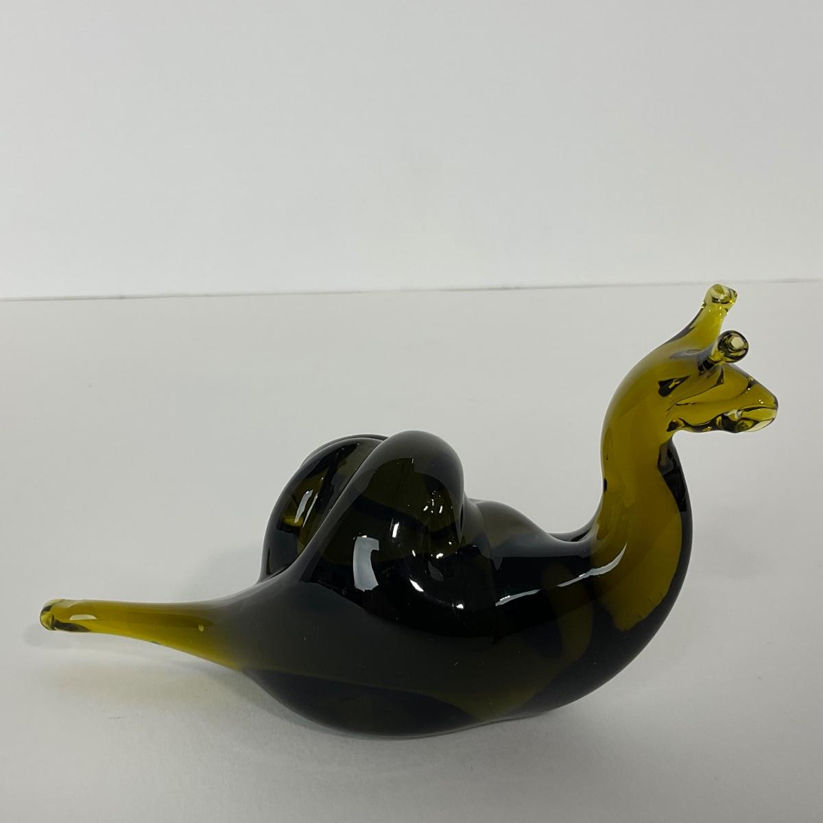 One Pilgrim green glass snail figure. This piece has no damage, and appears to be in great shape with no visable chips, cracks, or broken pieces. 3 1/4 inches tall by 6 inches long. Please see photos for details and condition. Any condition statement is given as a courtesy to a client, is an opinion, and should not be treated as a statement of fact. Reference to condition written, oral or within a condition report shall not be regarded as a full account of condition and may not include all defects, alterations, or restorations. Absence of a condition report does not imply a lot is flawless or lacking imperfections or damage. Katherine’s Auction & Appraisal Service shall have no responsibility for any error or omission. Returns shall not be accepted on the basis of condition. ::: Shipping is available on this lot. If you require shipping you must let us know at the close of the auction. We will coordinate with you after the item has been won. Shipping fees will include insurance up to or exceeding the value of all items being mailed. If you have any questions regarding this lot please contact the auctioneer either via this website, by direct email or by phone. PICK UP TIMES and other important information can be found in the TERMS and DESCRIPTION of the auction. Please take a look for pertinent information. Thanks!