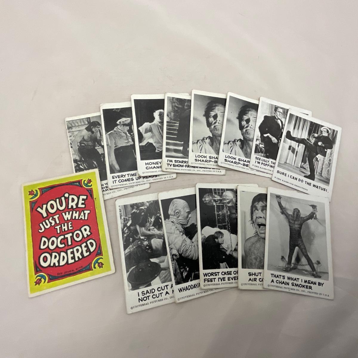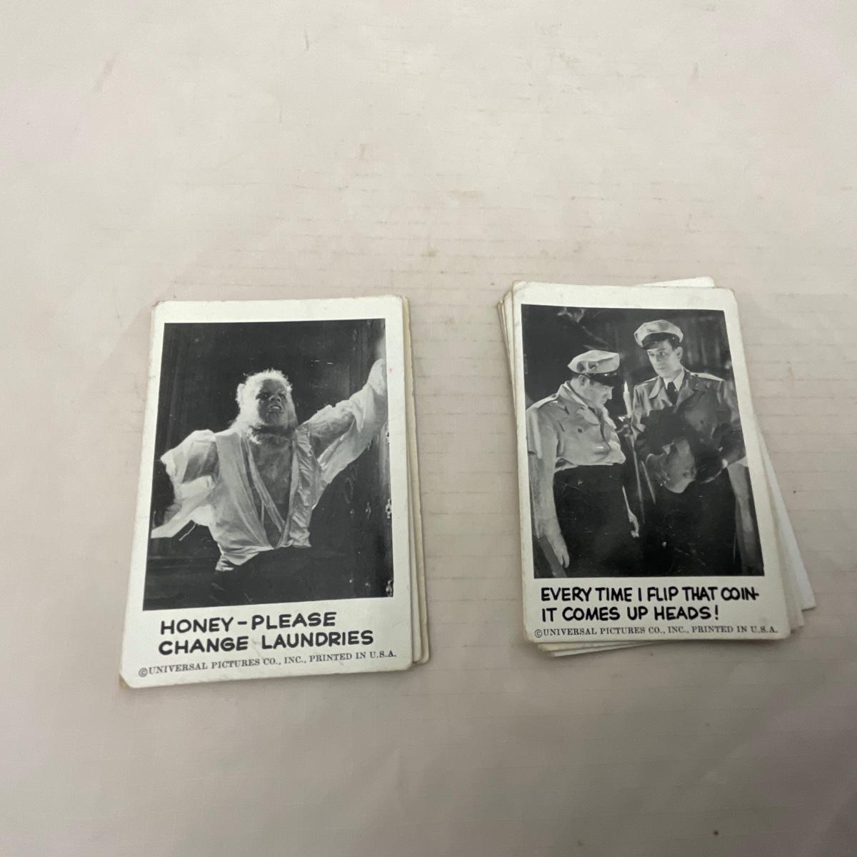 14 vintage Universal Studios monster cards. Please see photos for details and condition. ::: Shipping is available on this lot. If you require shipping you must let us know at the close of the auction. We will coordinate with you after the item has been won. Shipping fees will include insurance up to or exceeding the value of all items being mailed. If you have any questions regarding this lot please contact the auctioneer either via this website, by direct email or by phone. PICK UP TIMES and other important information can be found in the TERMS and DESCRIPTION of the auction. Please take a look for pertinent information. Thanks!