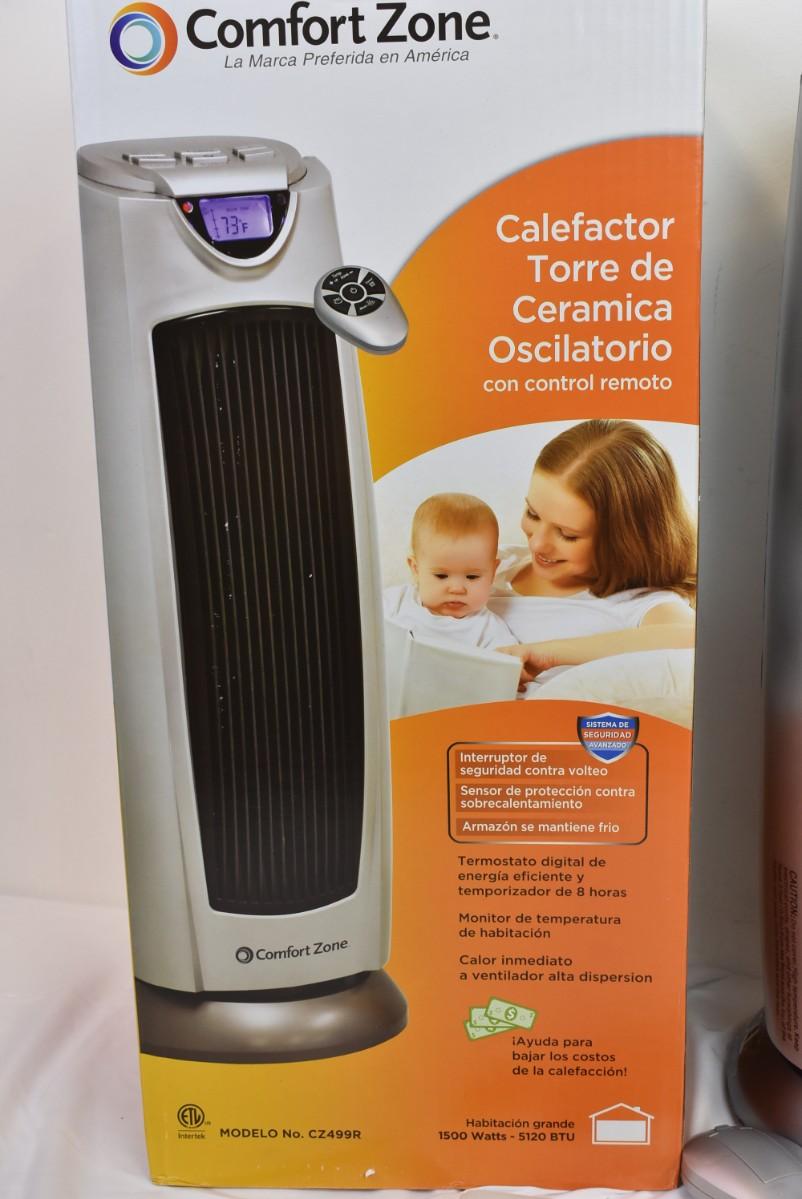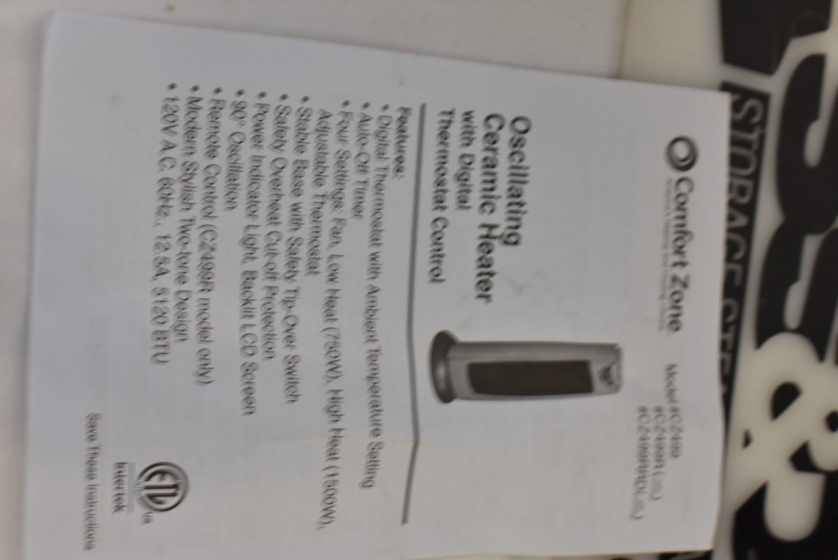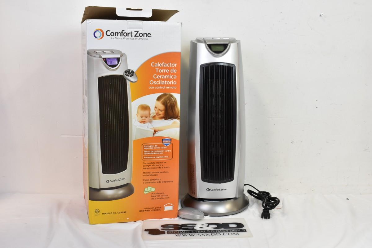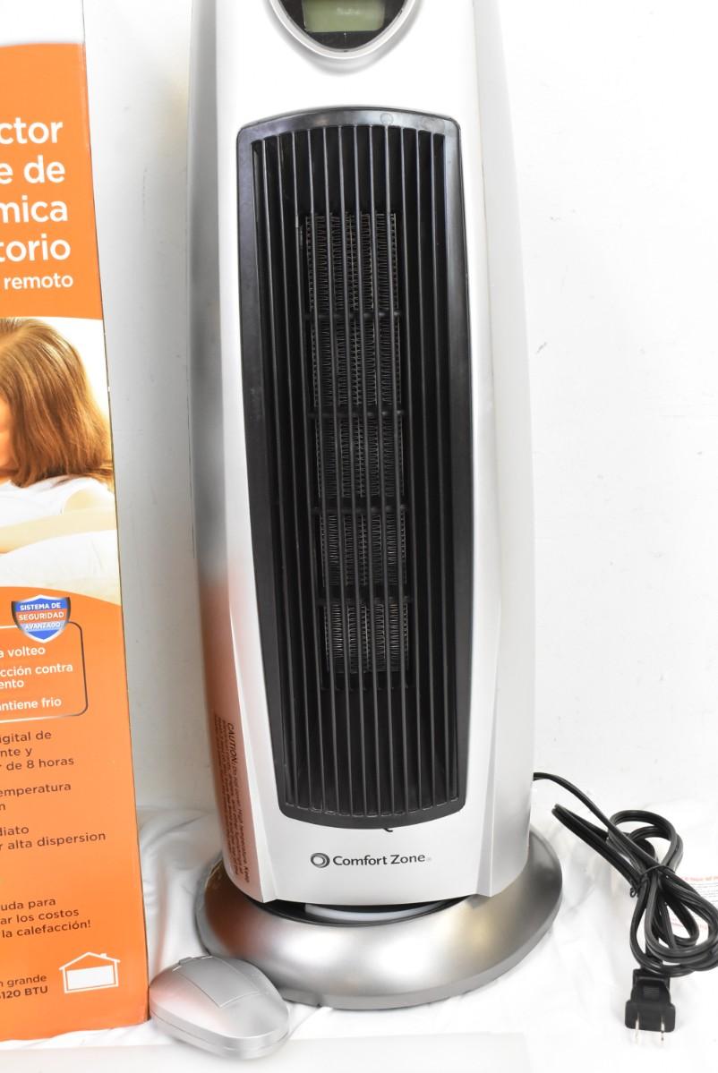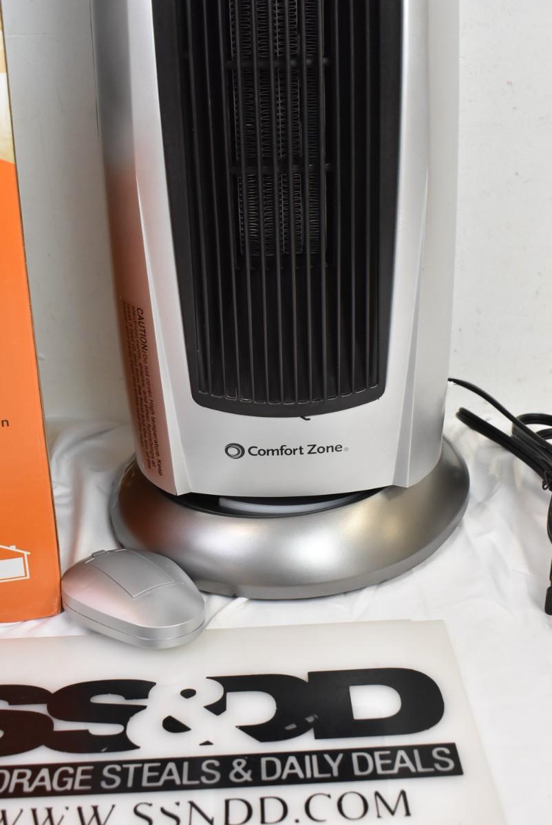 Comfort Zone 1500W Electric Ceramic Oscillating Digital Tower Heater with Remote, Silver, broken base, will not oscillate properly