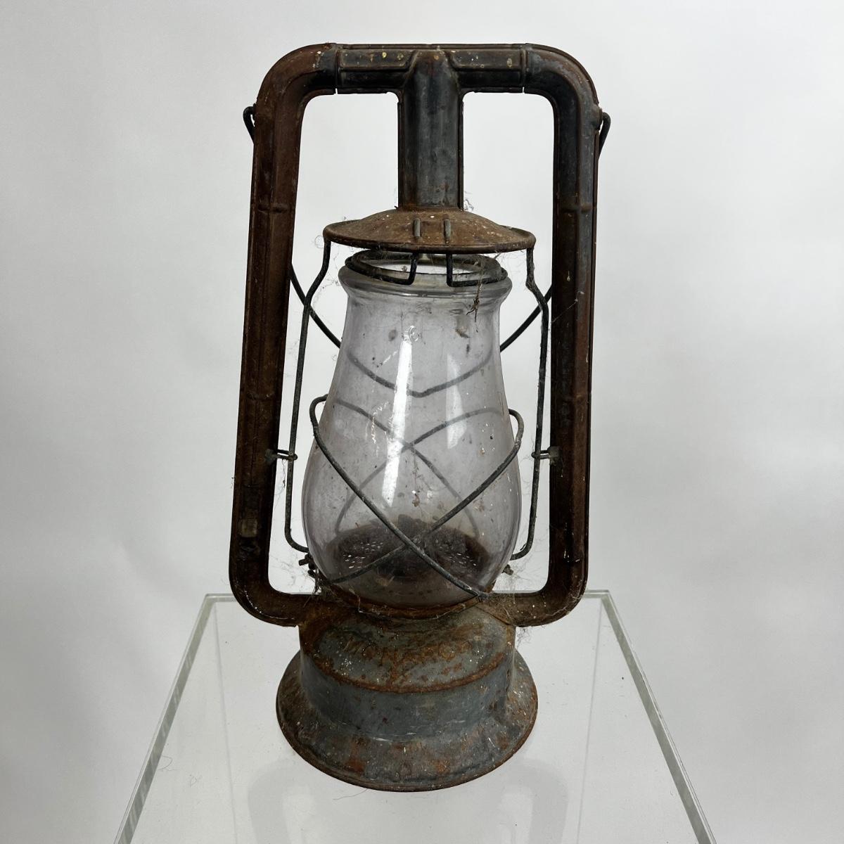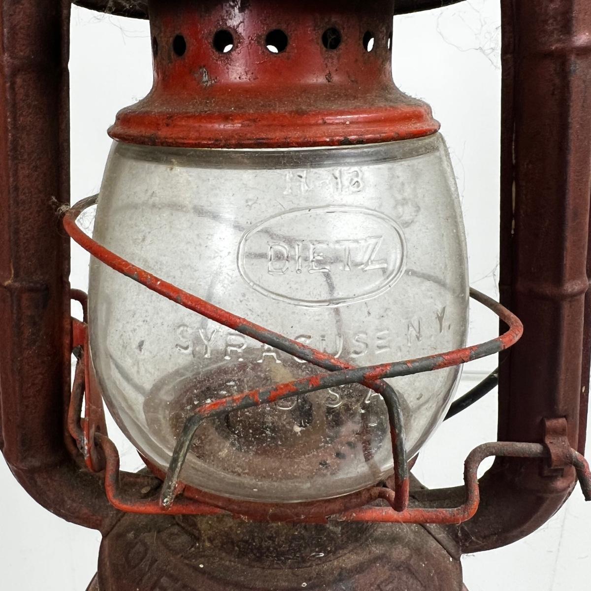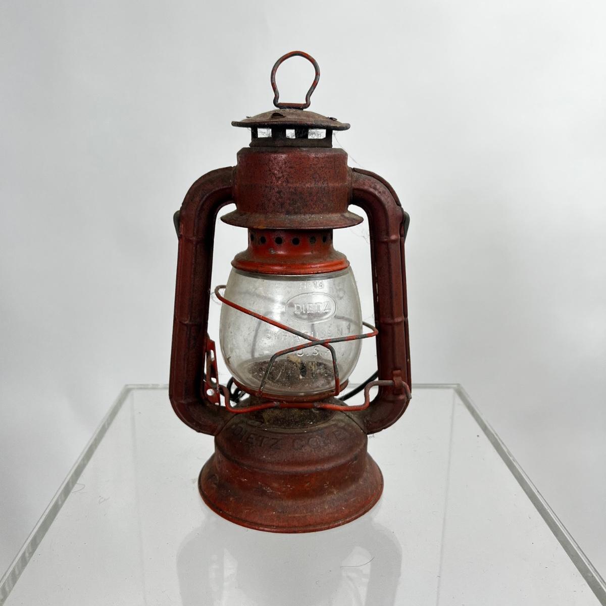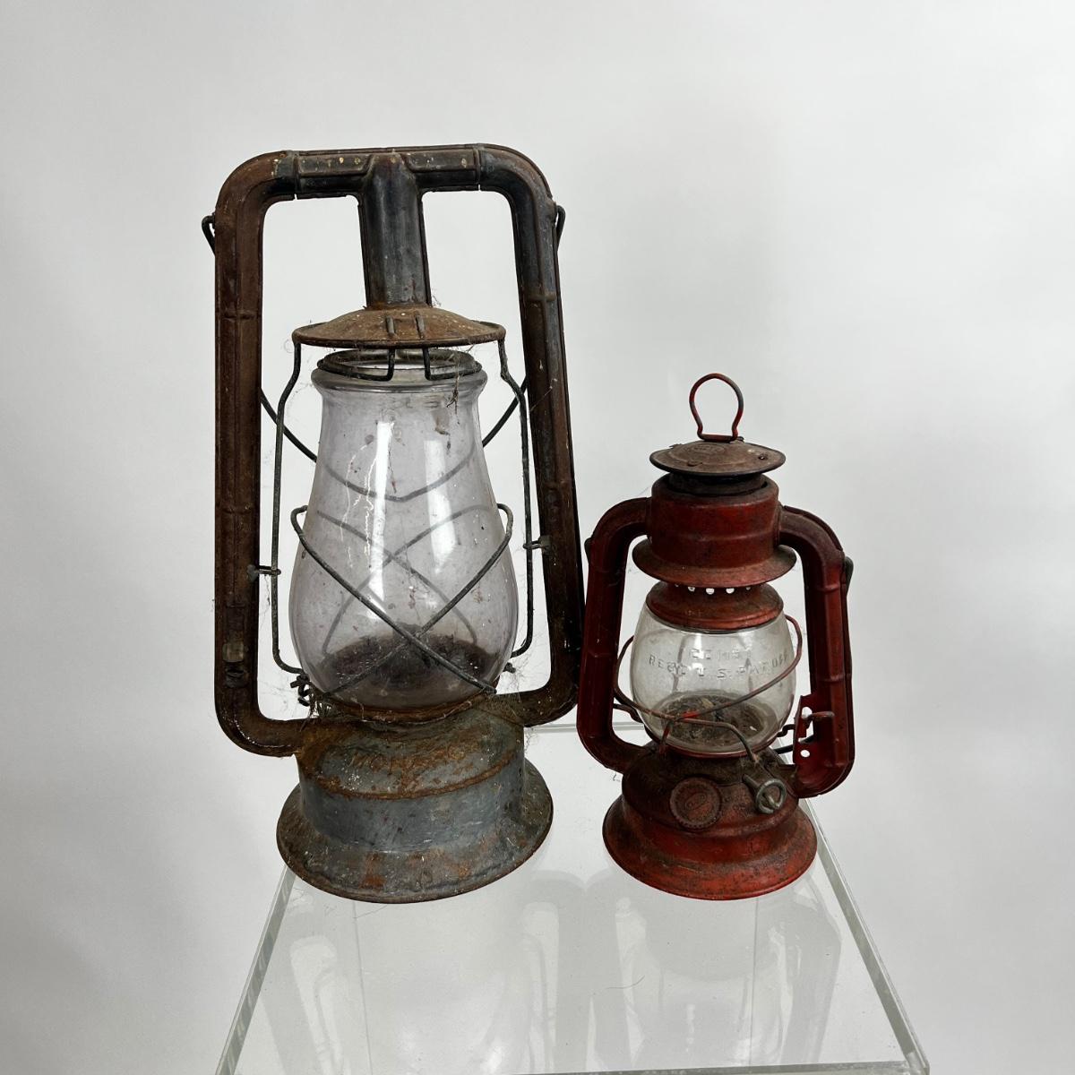 Two Antique Oil Lamps. Small red lamp is from Dietz.