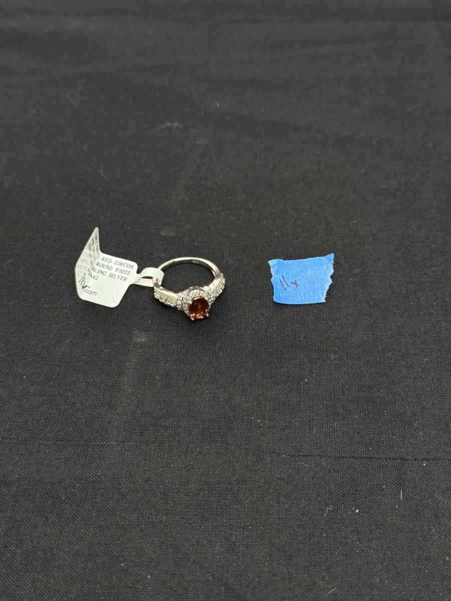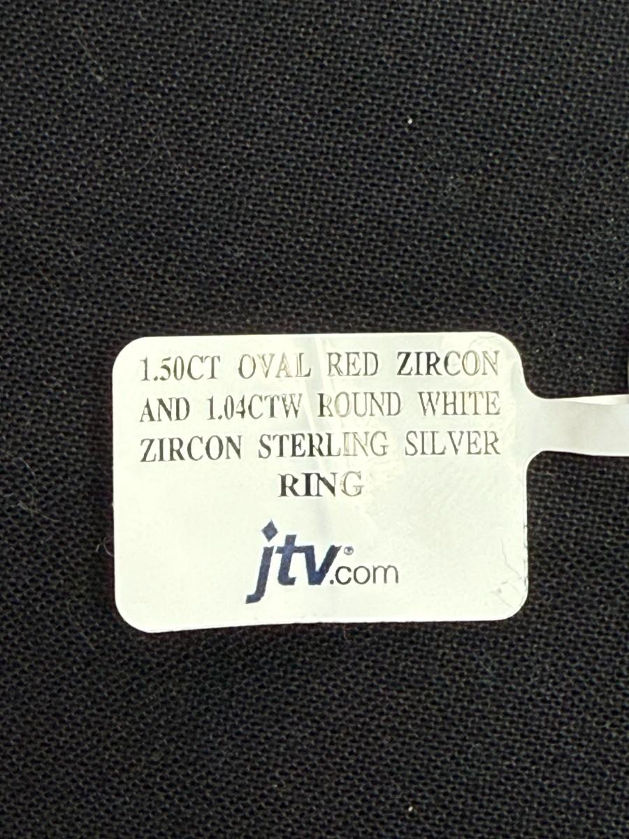 1.50CT Oval Red Ziron and 1.04CTW Round hite Zircon Sterling Silver