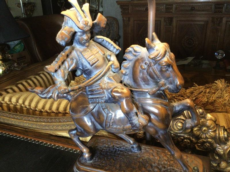 151 - Bronze Table Lamp of Samurai on Horseback by Frederic Cooper