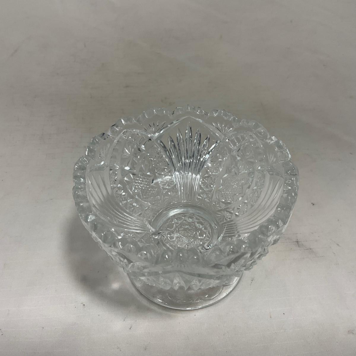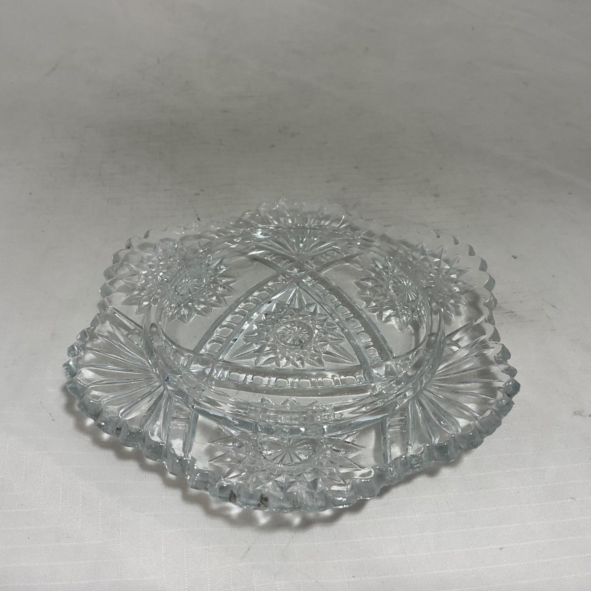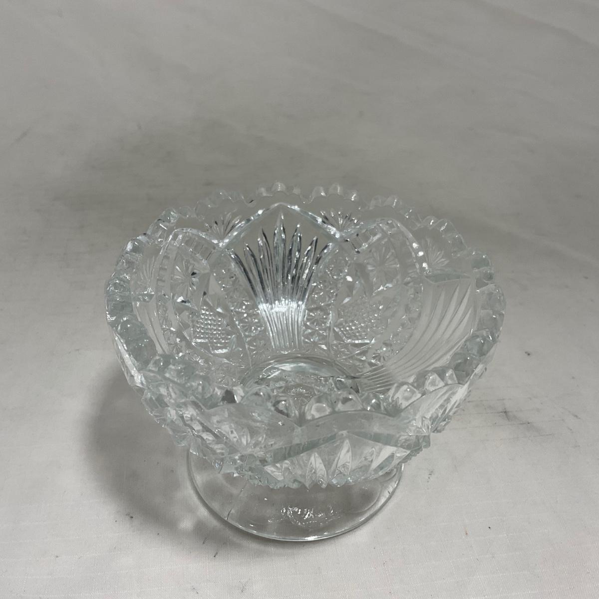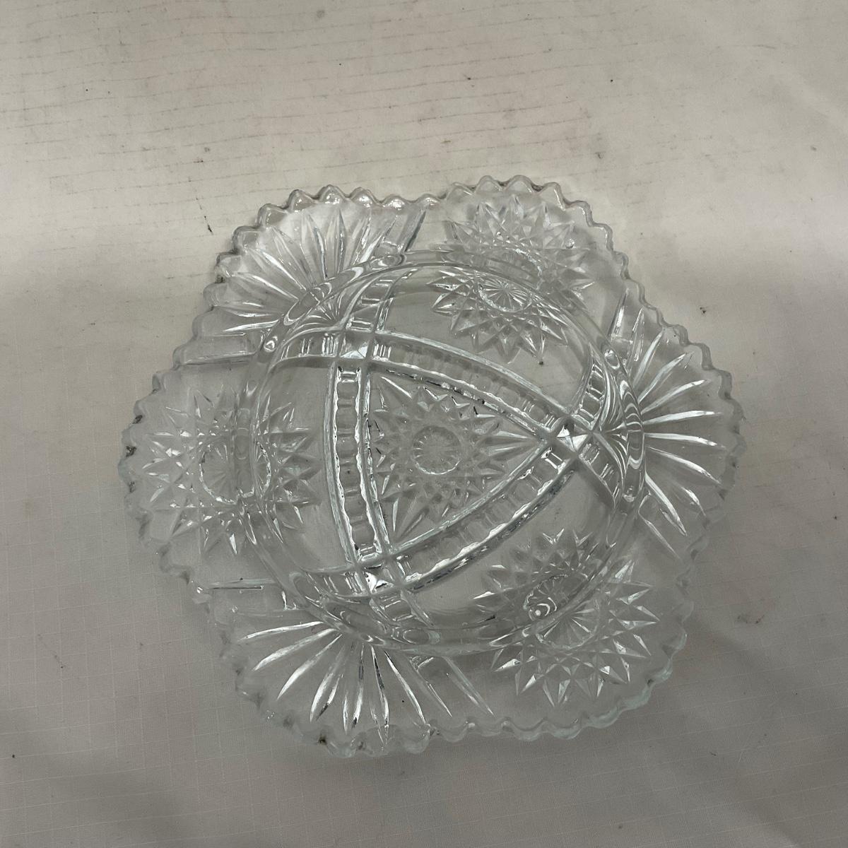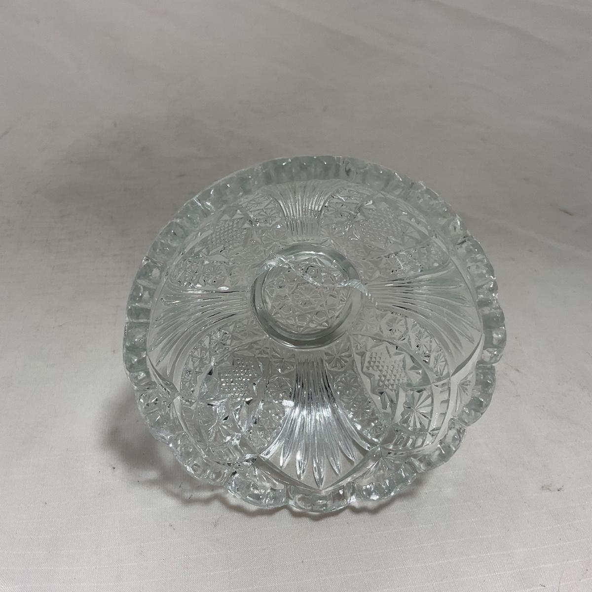 Small children's sized clear glass set. Set includes a small covered butter dish, a lidded jar, and sugar & creamer. All pieces are well loved and have some small chips and damage. Please see photos for details and condition. ::: Shipping is available on this lot. If you require shipping you must let us know at the close of the auction. We will coordinate with you after the item has been won. Shipping fees will include insurance up to or exceeding the value of all items being mailed. If you have any questions regarding this lot please contact the auctioneer either via this website, by direct email or by phone. PICK UP TIMES and other important information can be found in the TERMS and DESCRIPTION of the auction. Please take a look for pertinent information. Thanks!