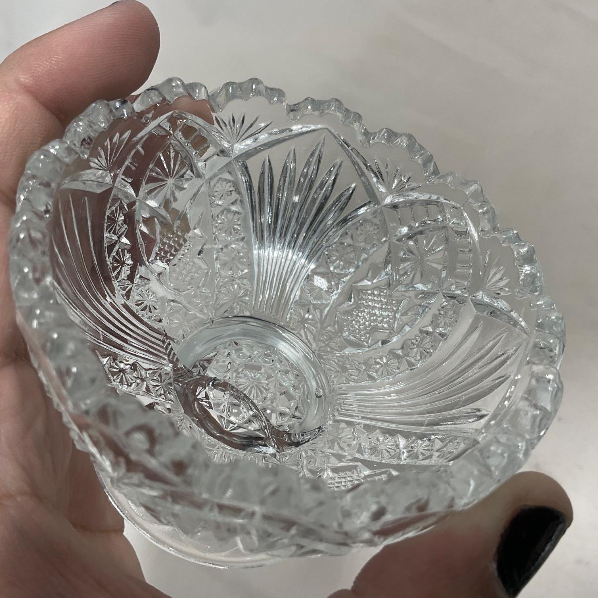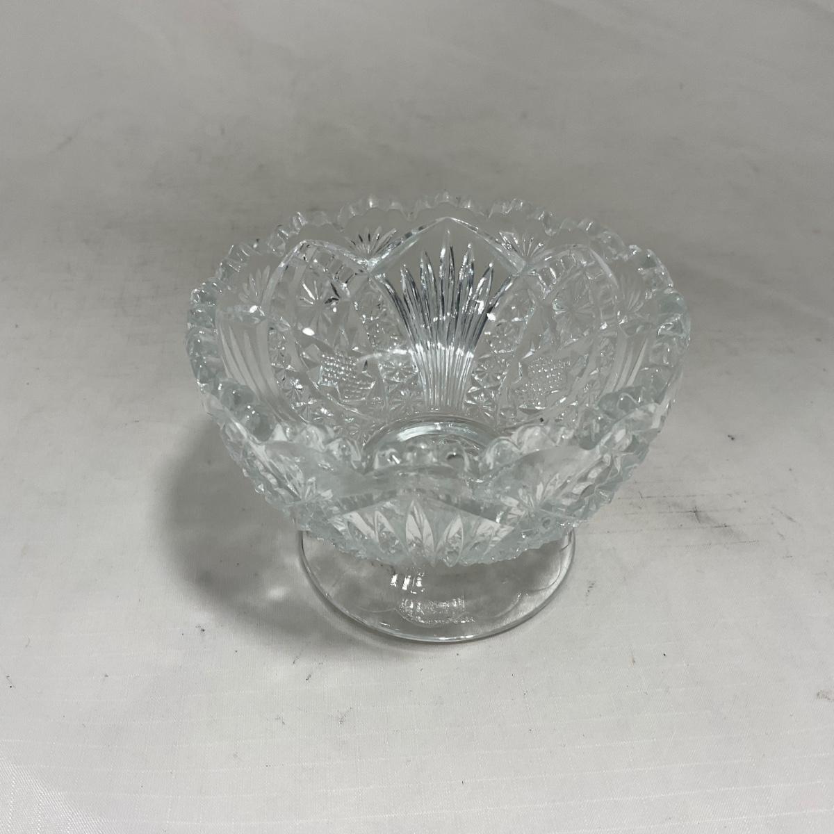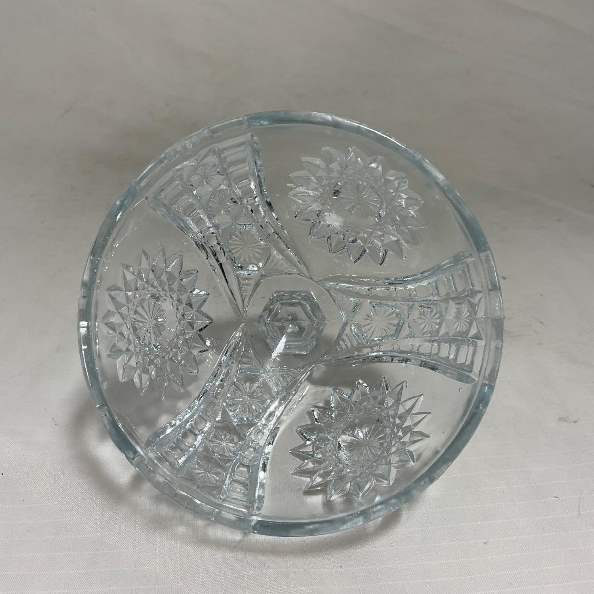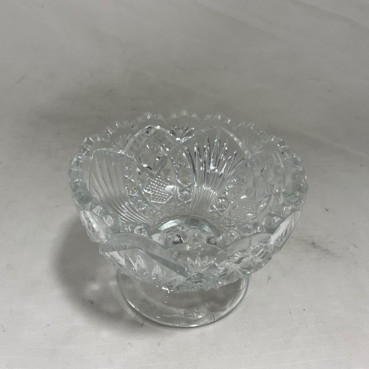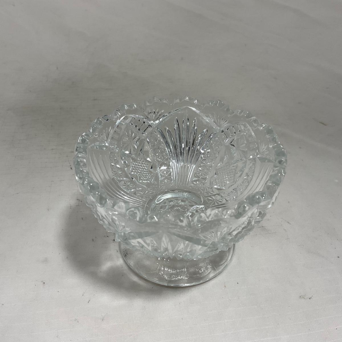 Small children's sized clear glass set. Set includes a small covered butter dish, a lidded jar, and sugar & creamer. All pieces are well loved and have some small chips and damage. Please see photos for details and condition. ::: Shipping is available on this lot. If you require shipping you must let us know at the close of the auction. We will coordinate with you after the item has been won. Shipping fees will include insurance up to or exceeding the value of all items being mailed. If you have any questions regarding this lot please contact the auctioneer either via this website, by direct email or by phone. PICK UP TIMES and other important information can be found in the TERMS and DESCRIPTION of the auction. Please take a look for pertinent information. Thanks!