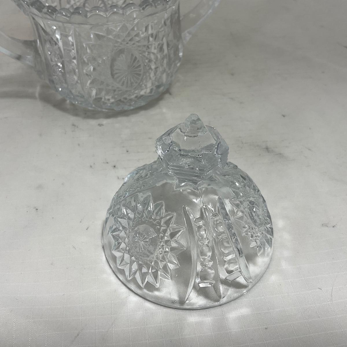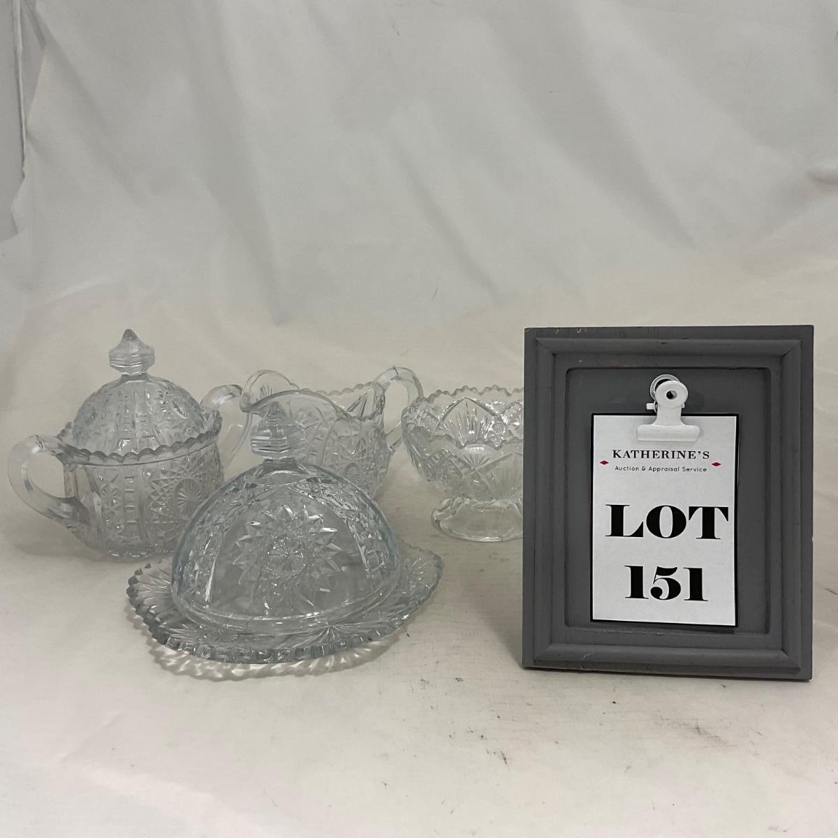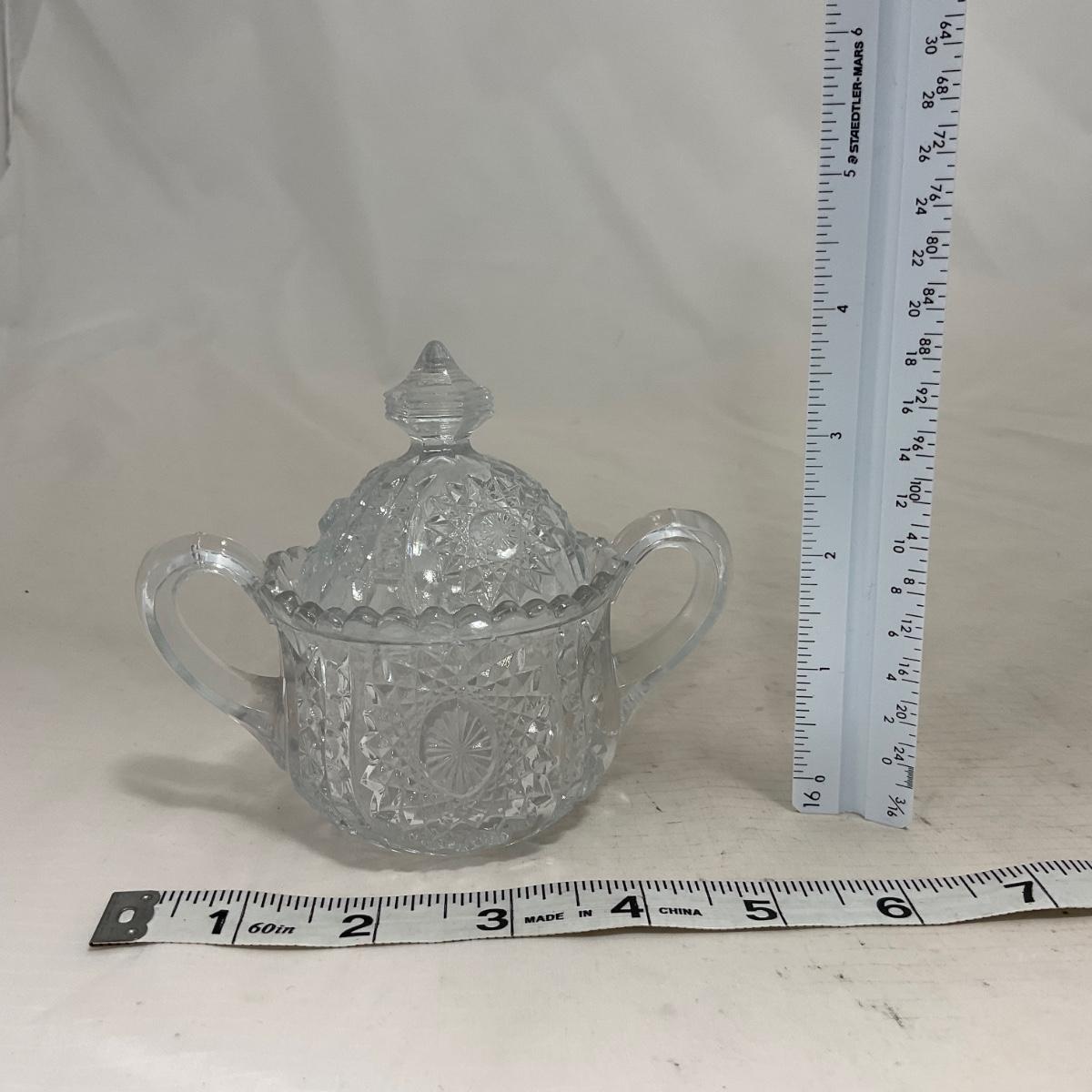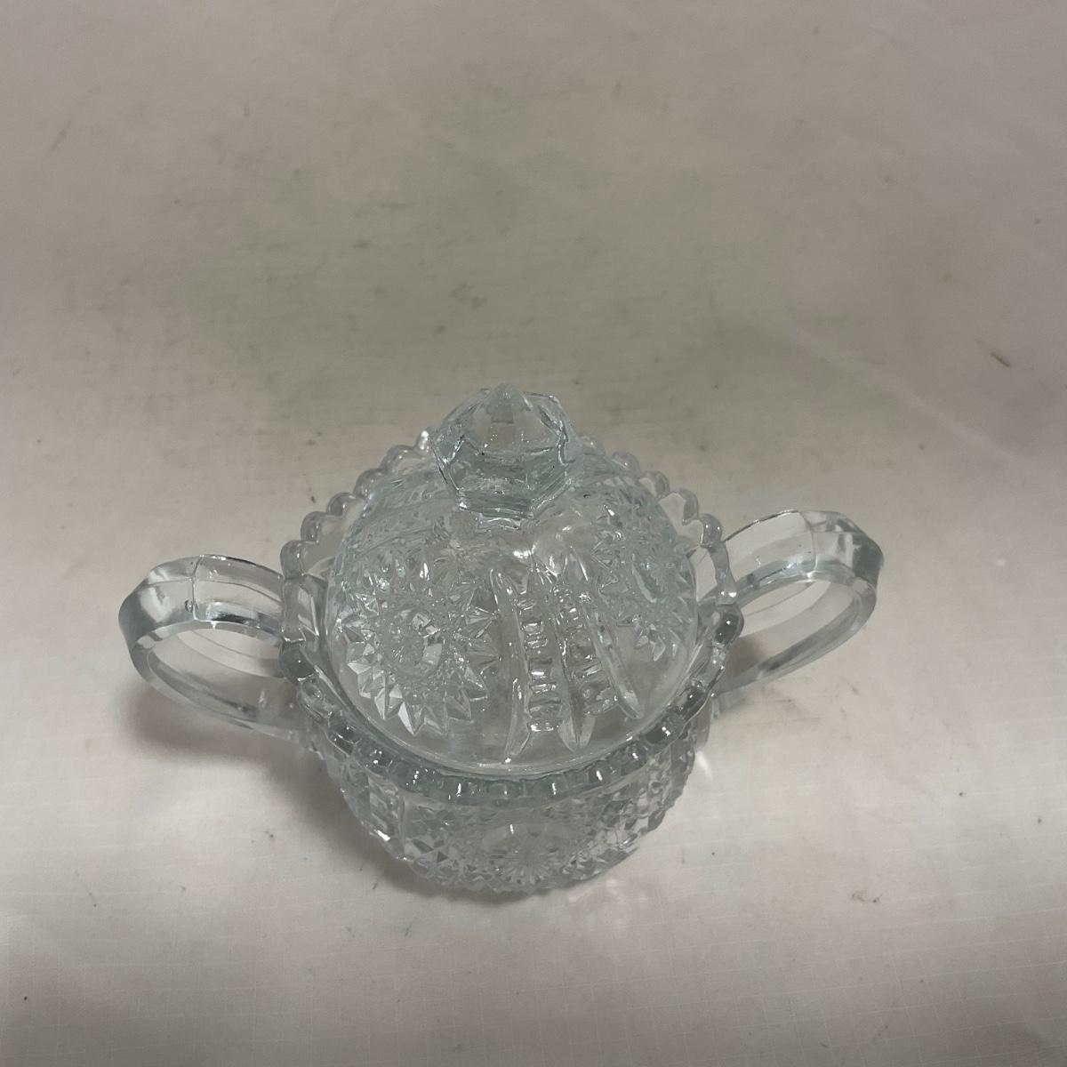 -151- Clear Glass | Children's Sized | Covered Butter Dish | Lidded Jar | Creamer & Sugar