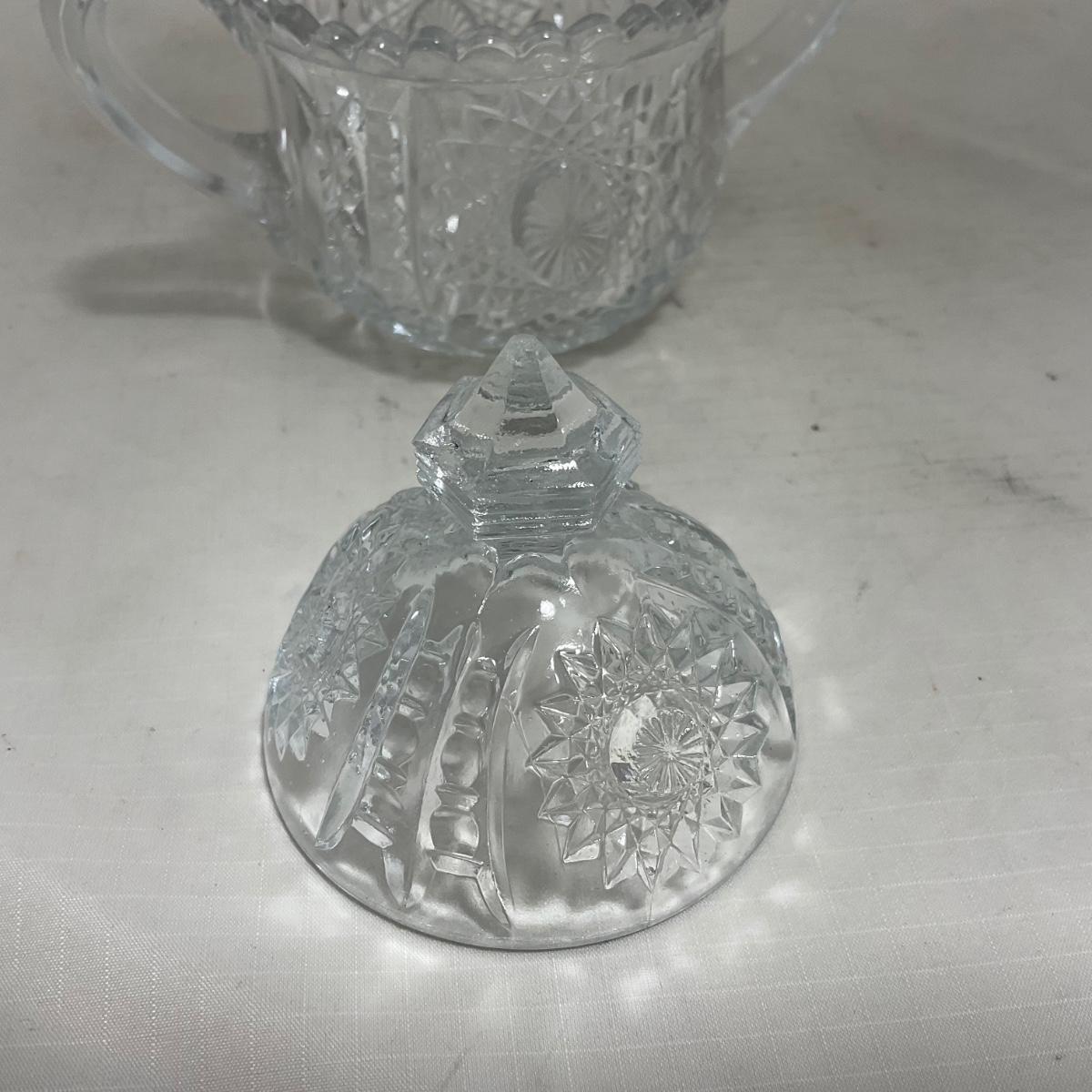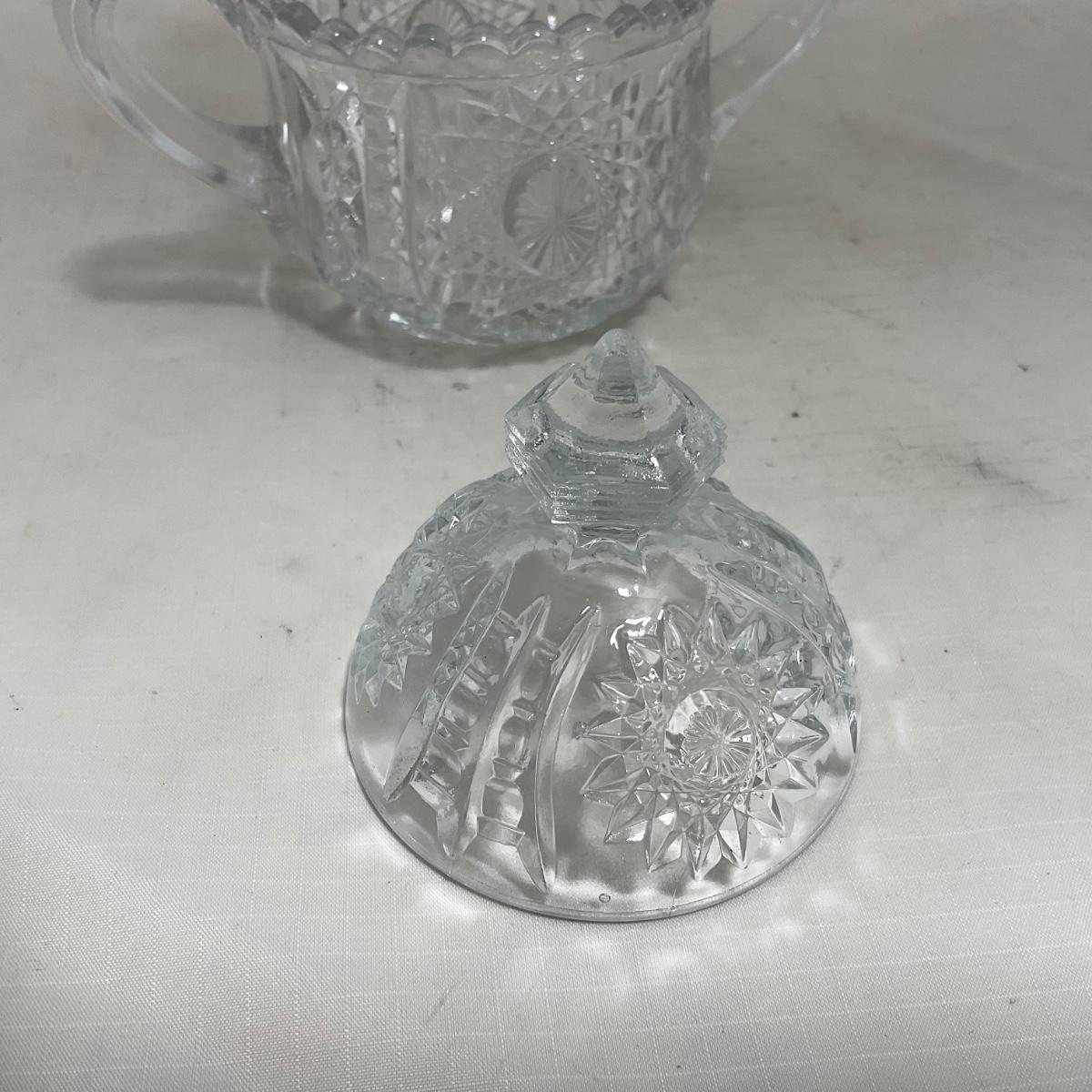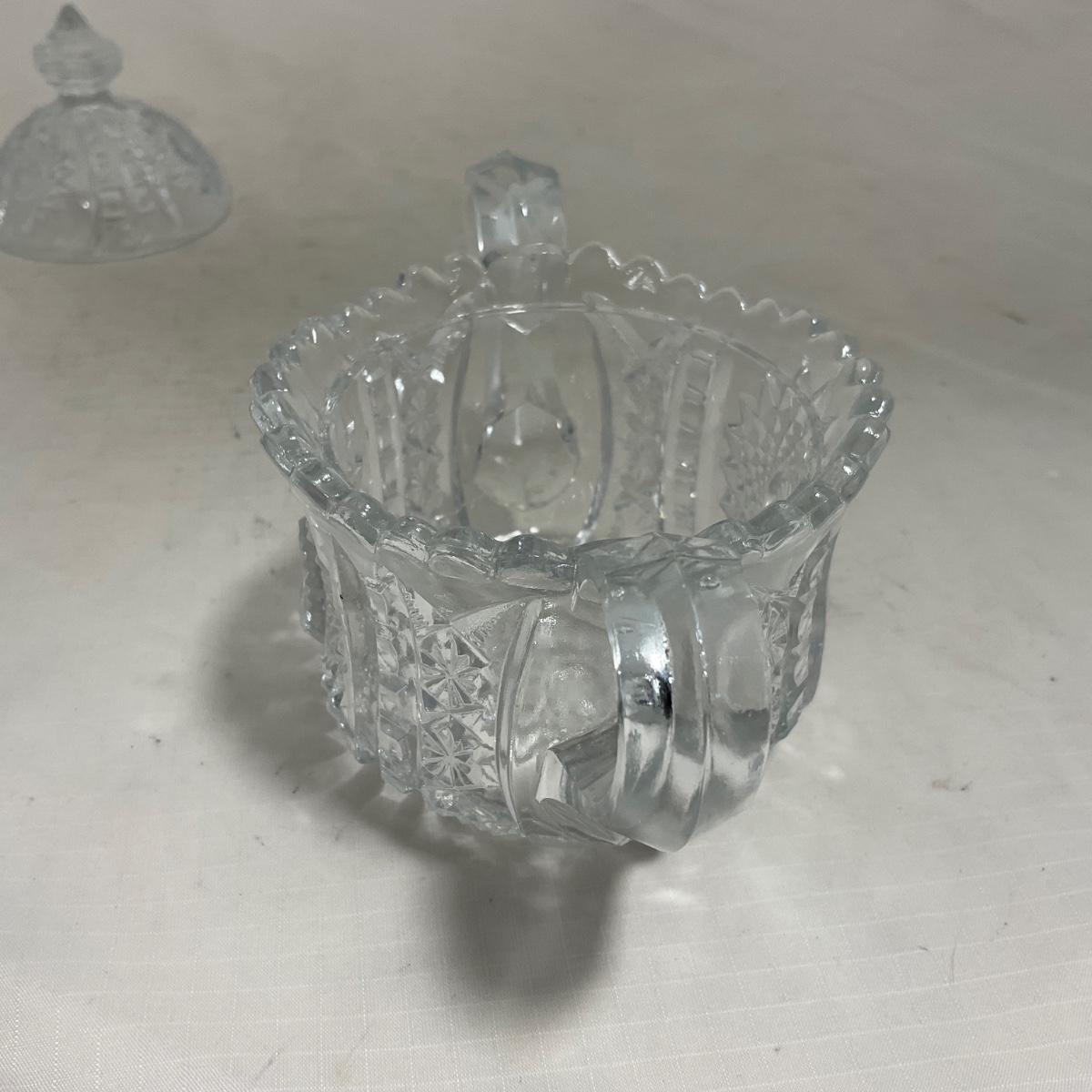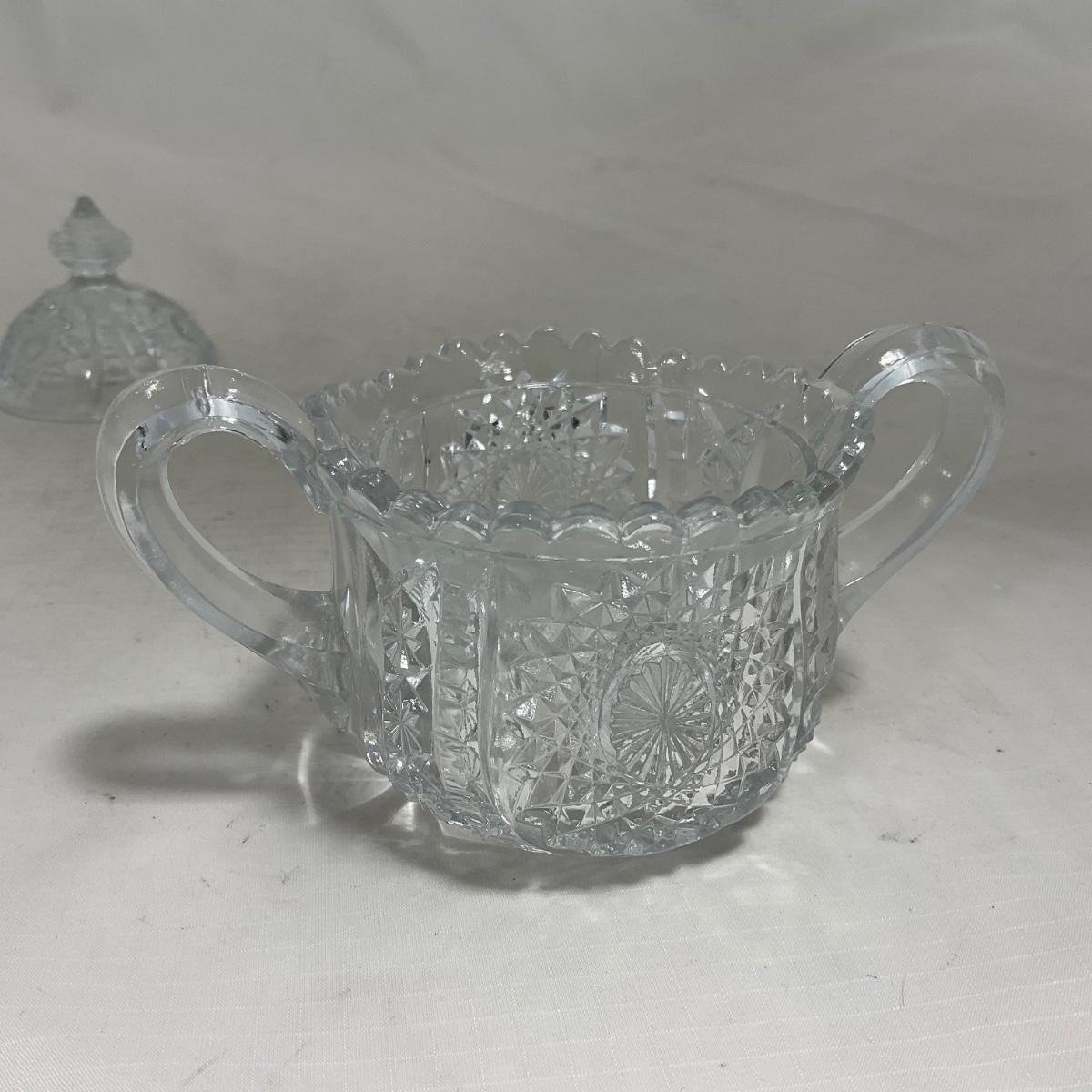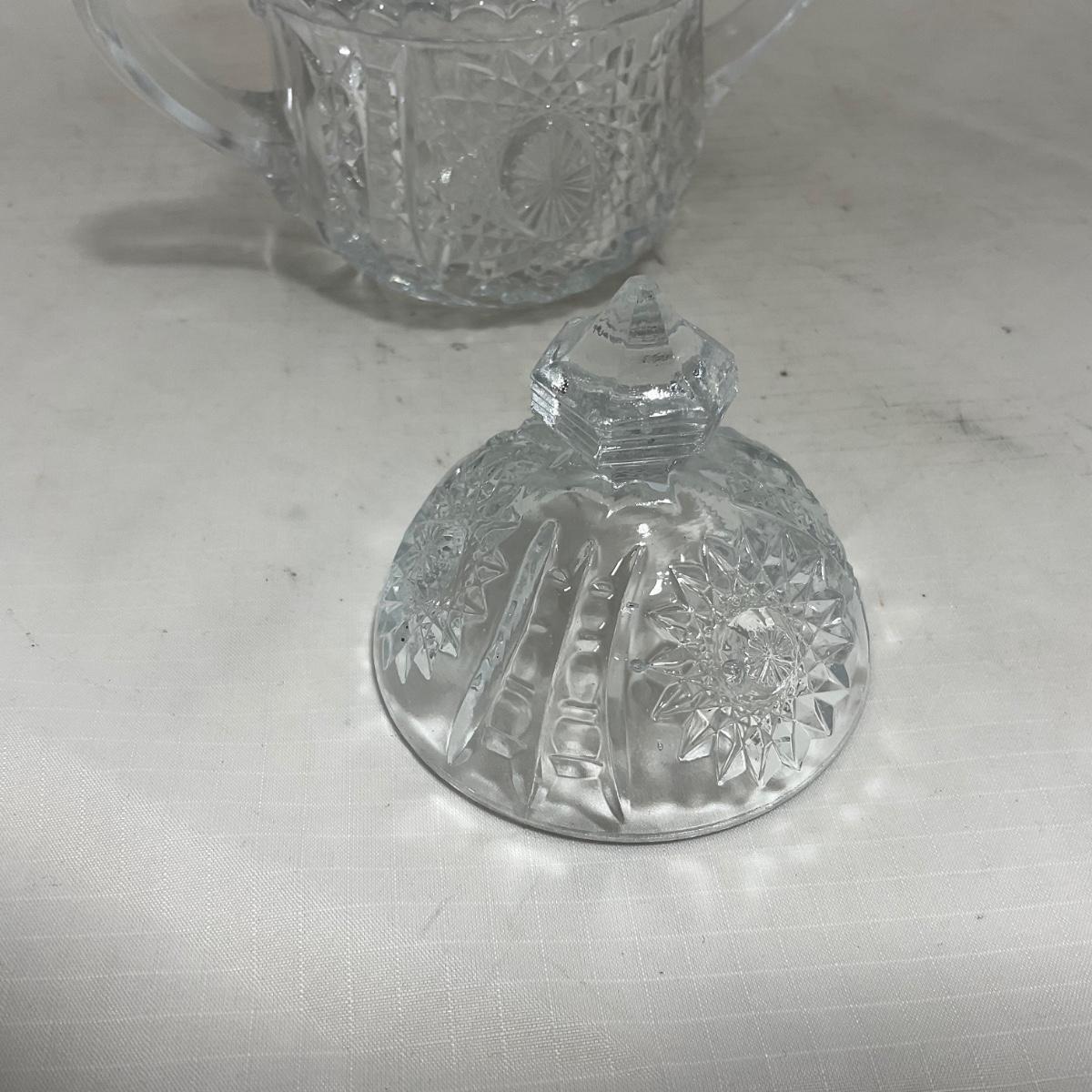 -151- Clear Glass | Children's Sized | Covered Butter Dish | Lidded Jar | Creamer & Sugar