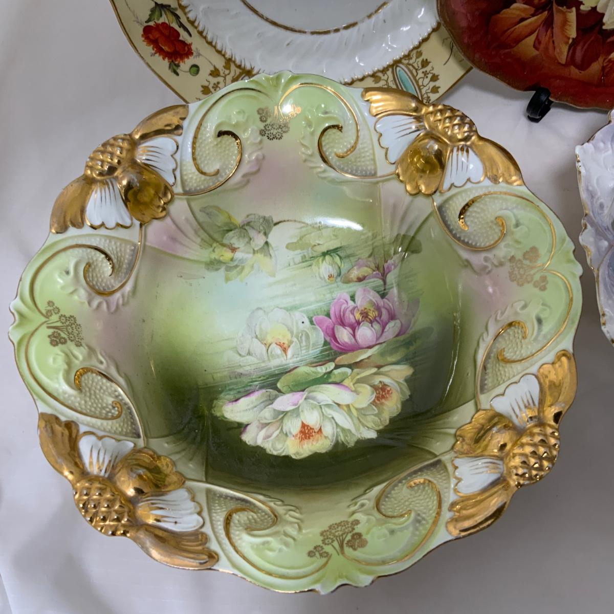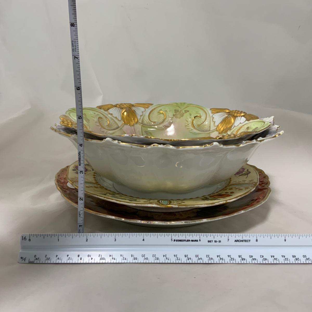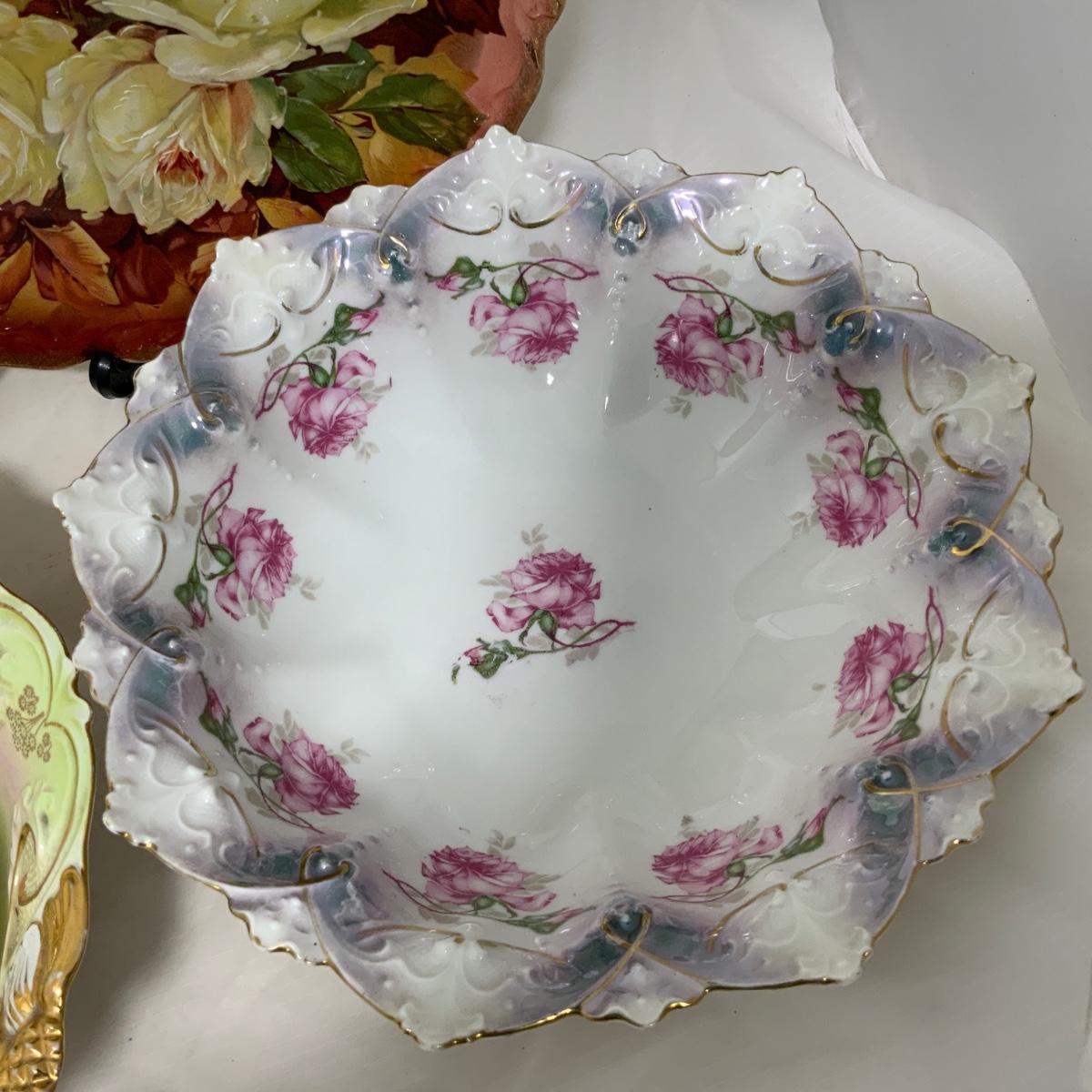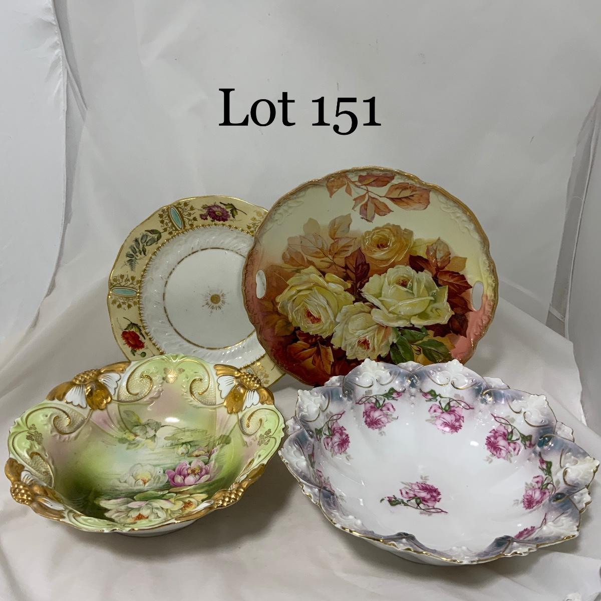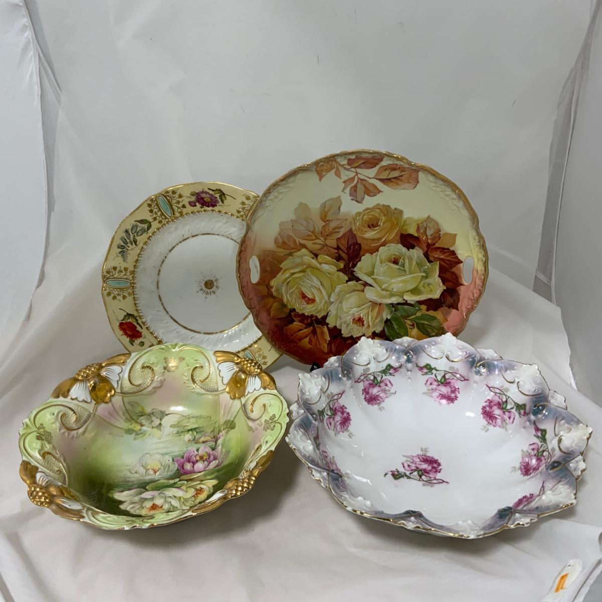 Four fine serving pieces that would also make lovely displays. Austrian Bowl in perfect condition, Antique German bowl with waterllies, some damage on the piece. Antique cake plate with hand painted roses, in excellent condition and lastly, an Early English hand painted soup bowl, circa 1830! The soup bowl is my favorite, personally. Please see photos for details and condition. ::: Shipping is NOT available on this lot. If you have any questions regarding this lot please contact the auctioneer either via this website, by direct email or by phone. PICK UP TIMES and other important information can be found in the TERMS and DESCRIPTION of the auction. Please take a look for pertinent information. Thanks!