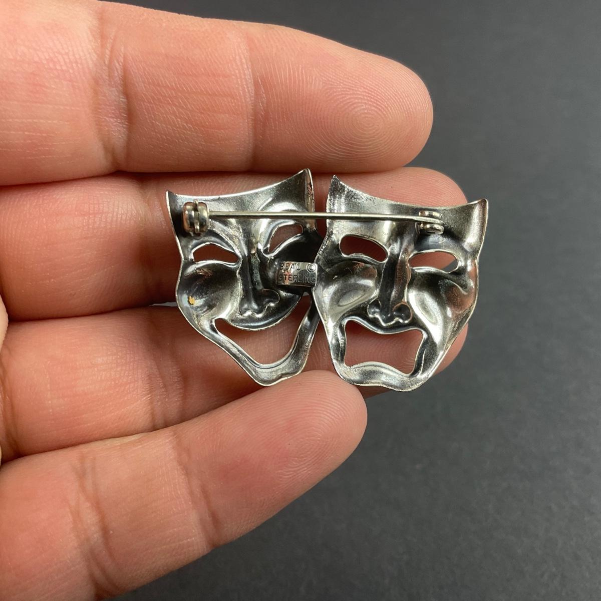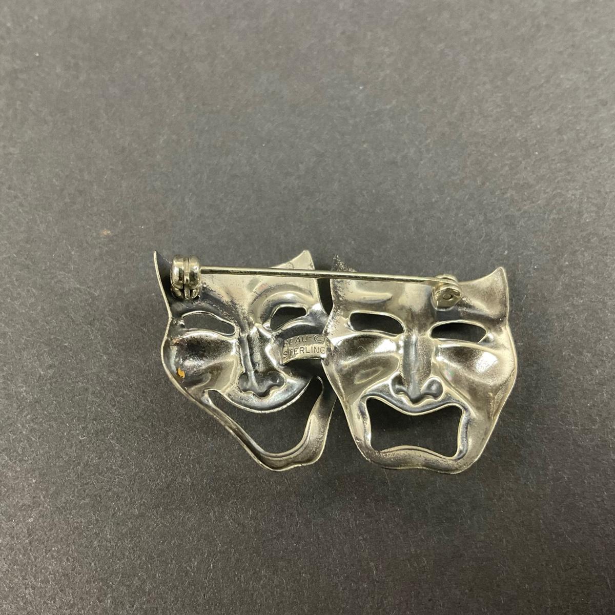 -151- SILVER | Sterling Beau Mask Brooch | Marked