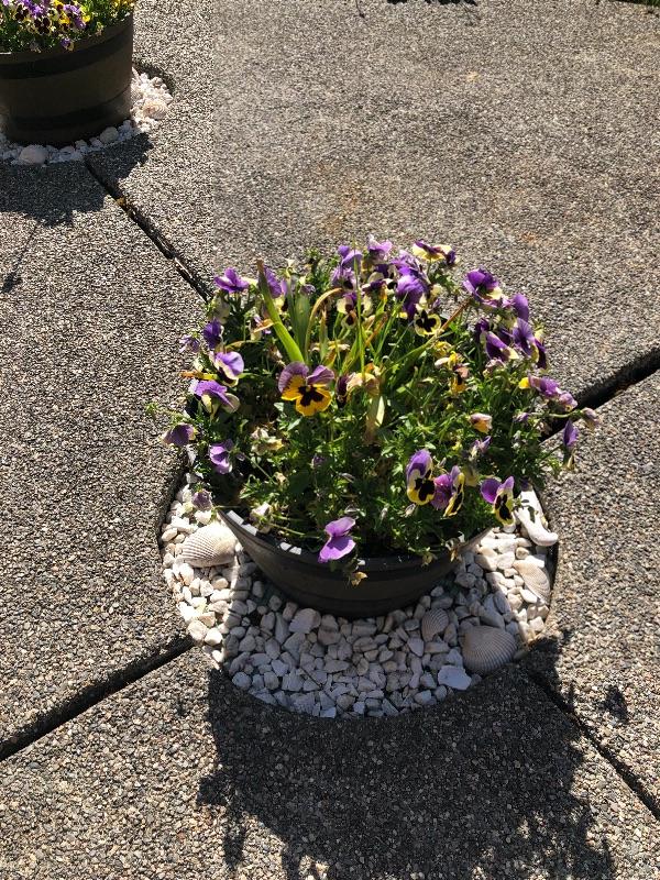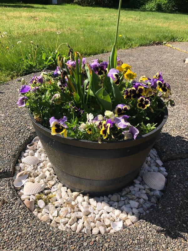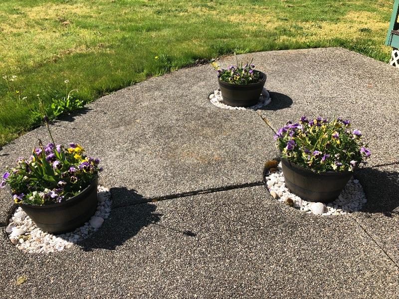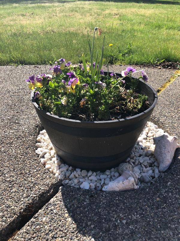 152:  Three Outdoor Resin Barrel Planters With Live Plants
