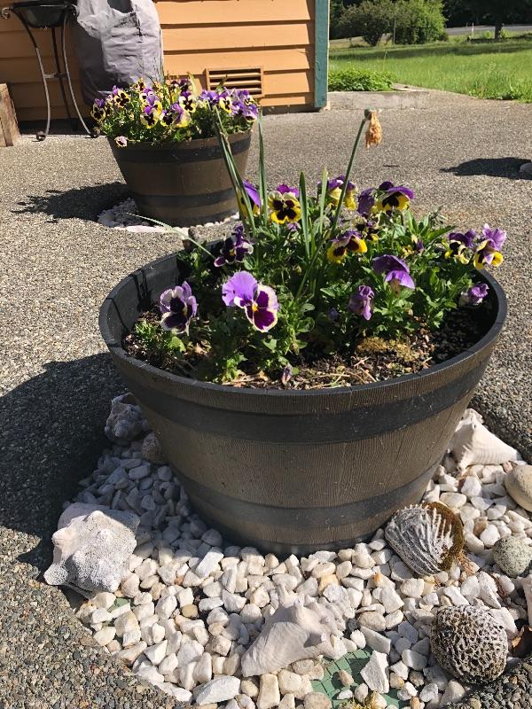 152: Three Outdoor Resin Barrel Planters With Live Plants