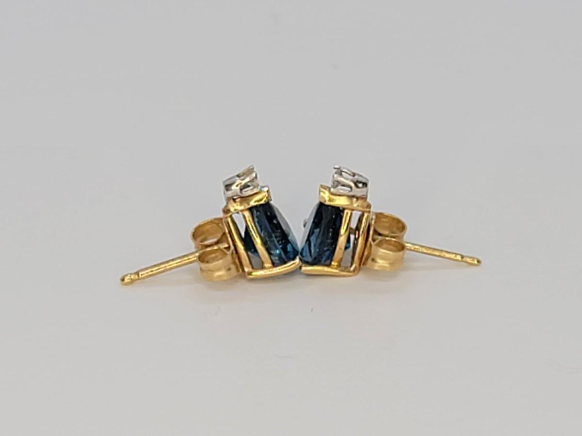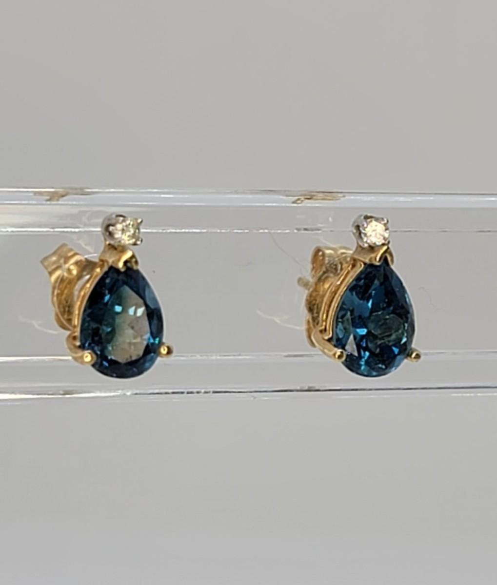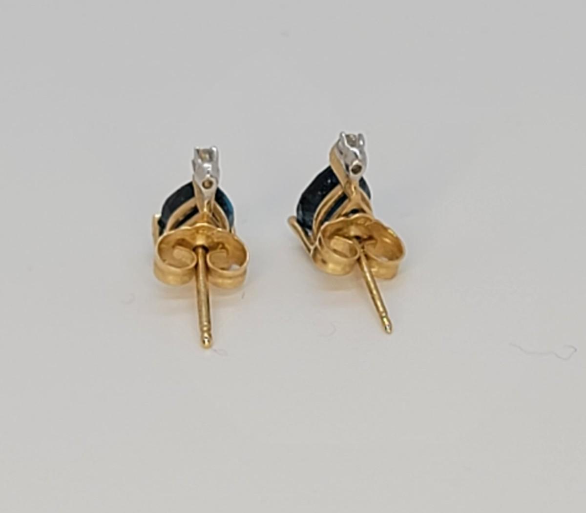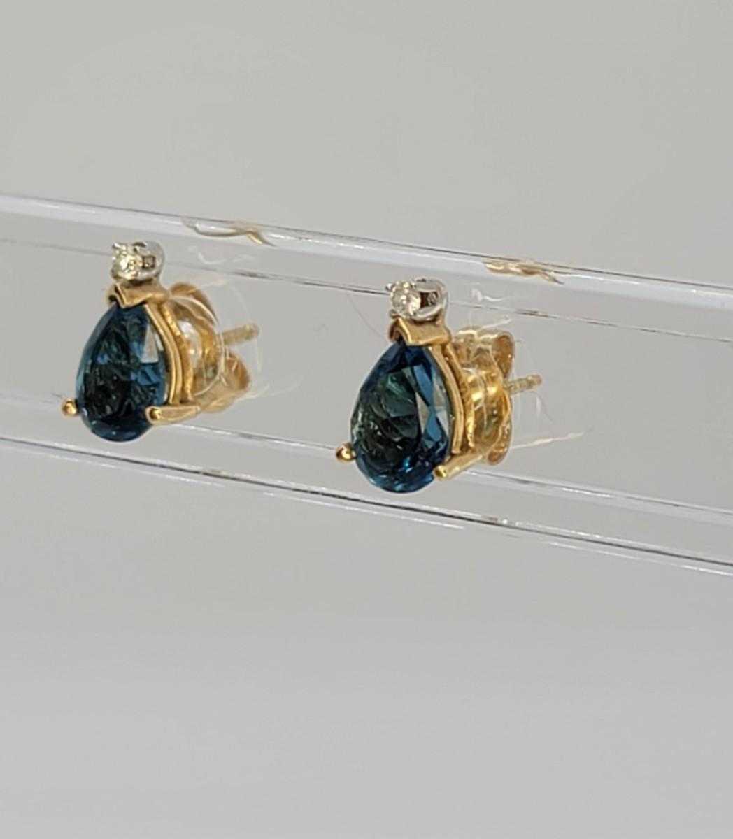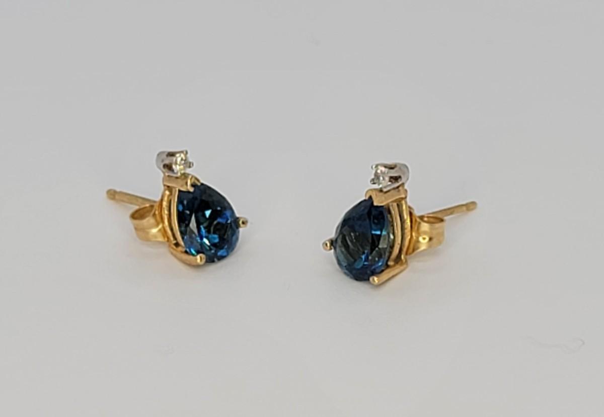 1.2g 14k yellow gold Montana teal blue Sapphire and Diamond chip pierced earrings