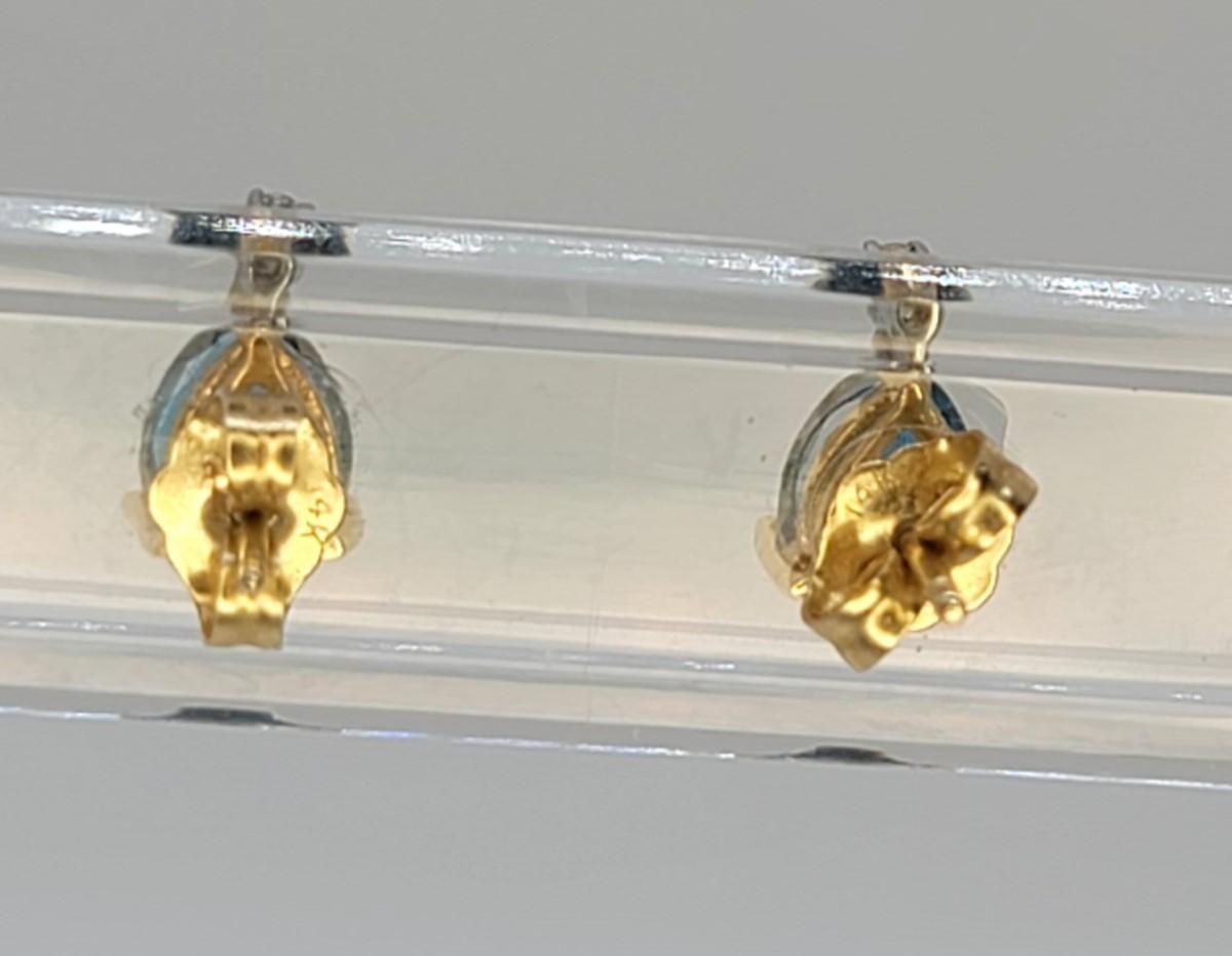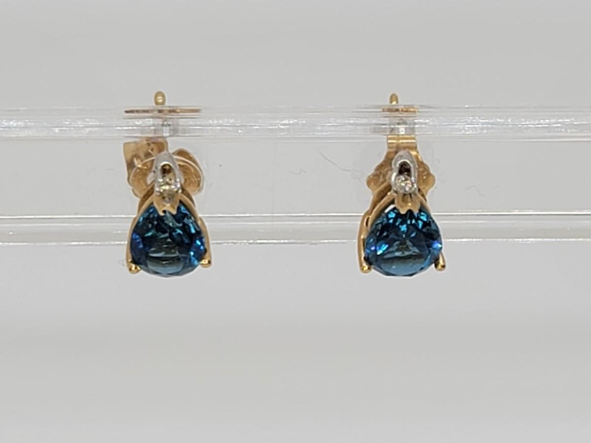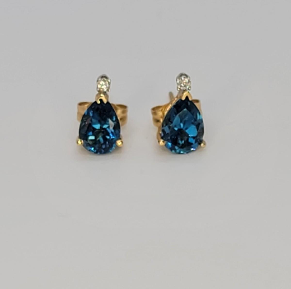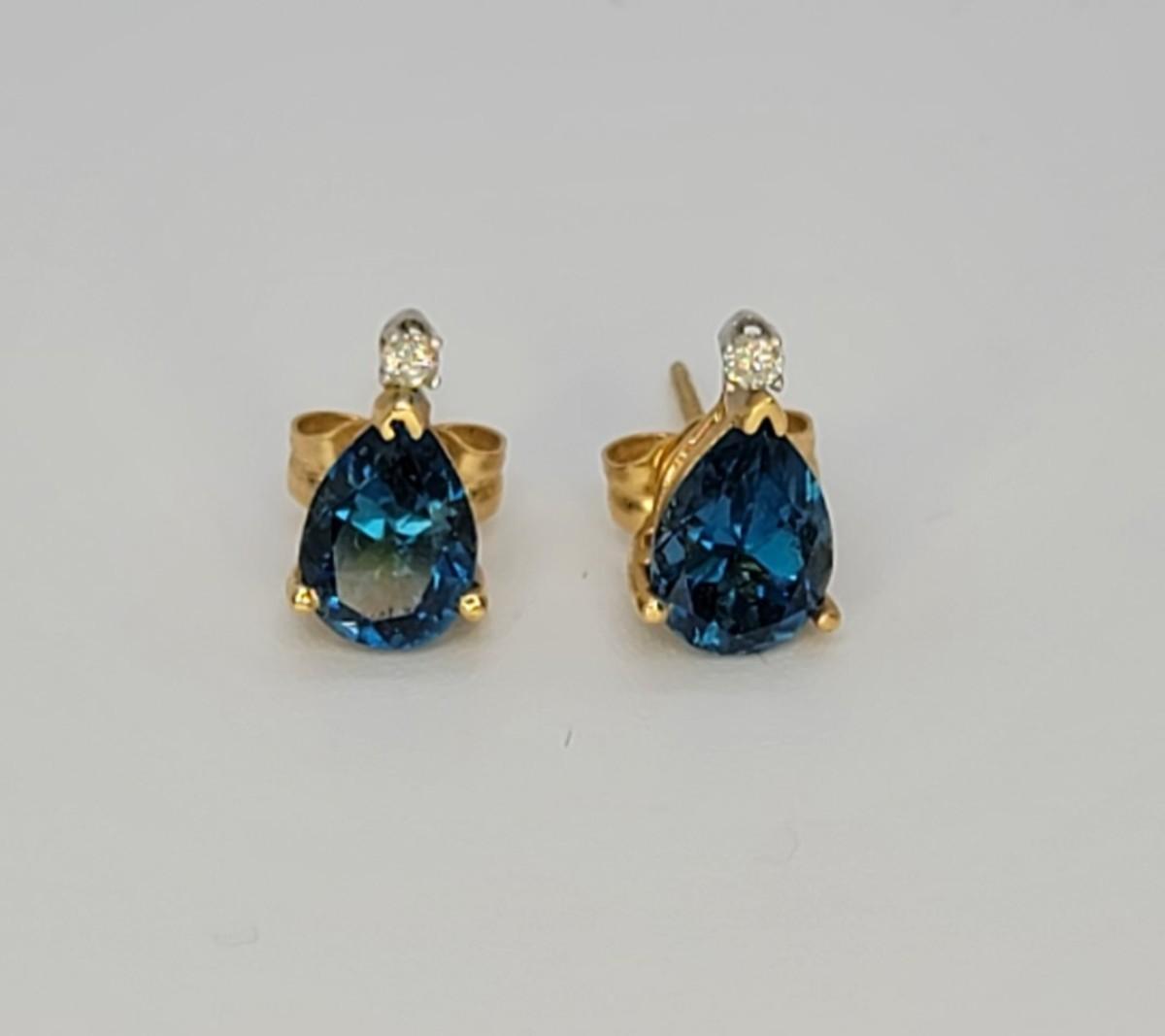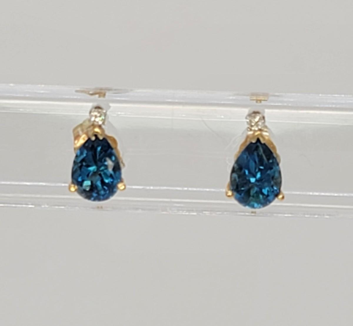 1.2g 14k yellow gold Montana teal blue Sapphire and Diamond chip pierced earrings