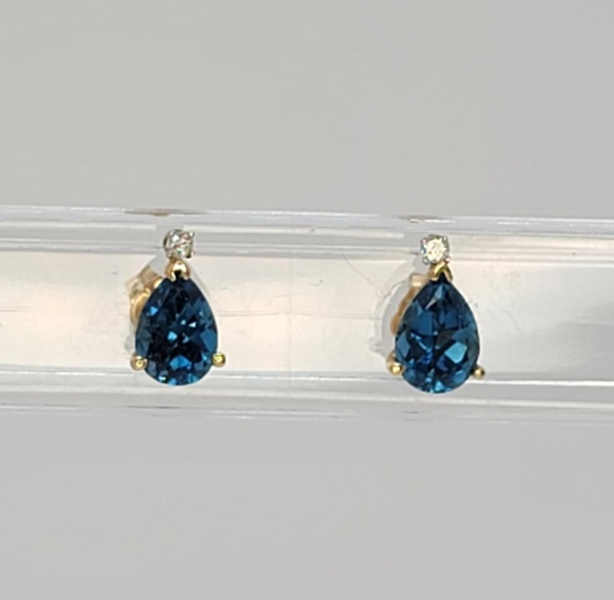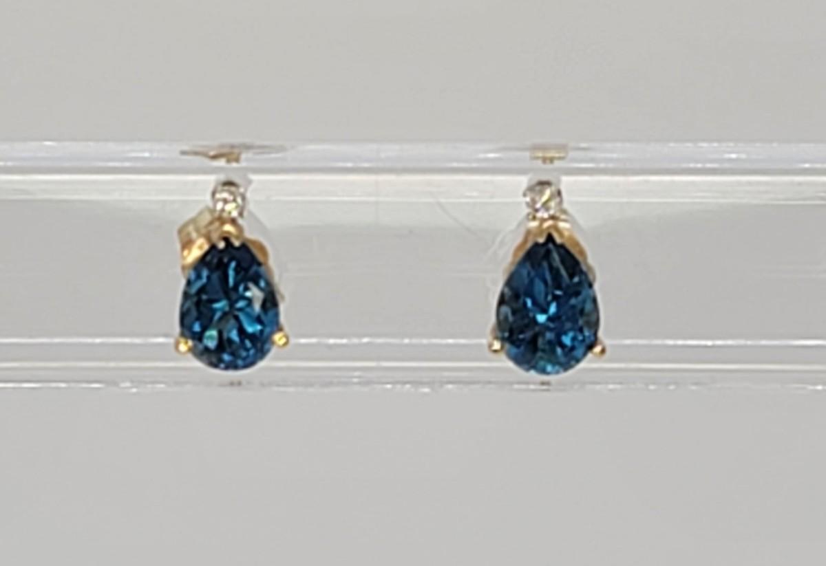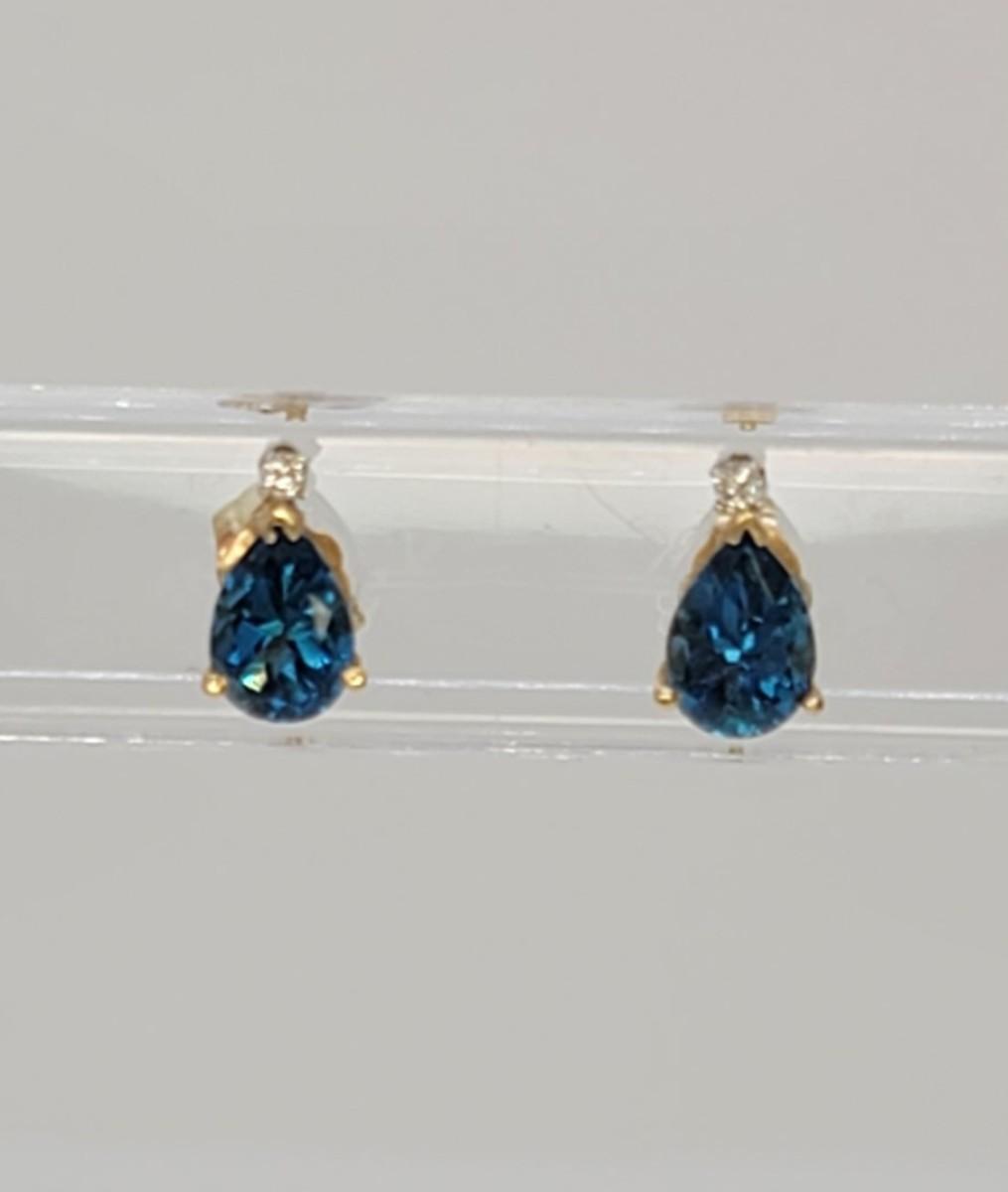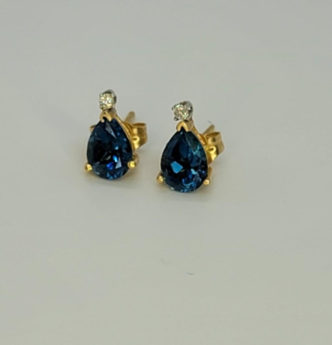 152: 1.2g 14k yellow gold Montana teal blue Sapphire and Diamond chip pierced earrings