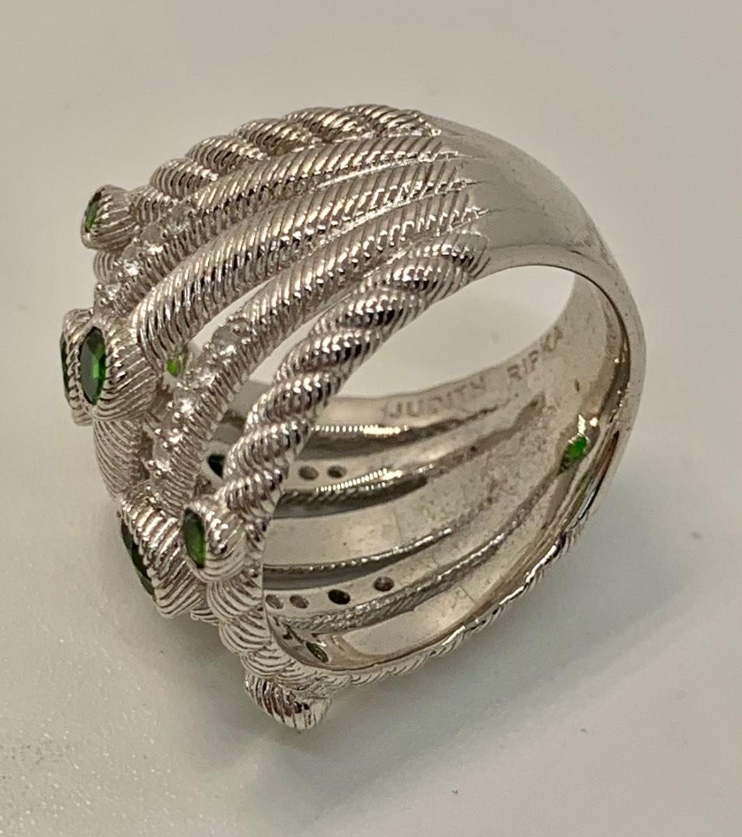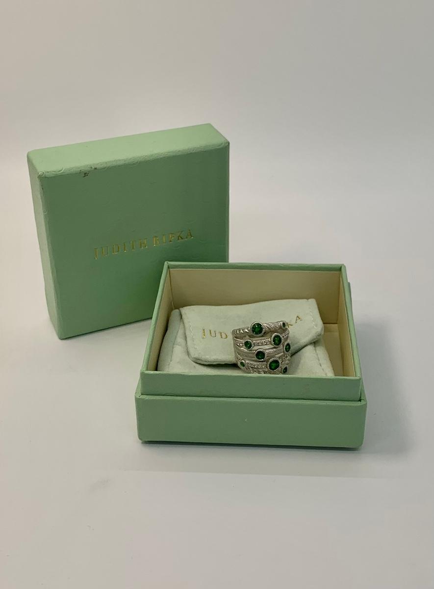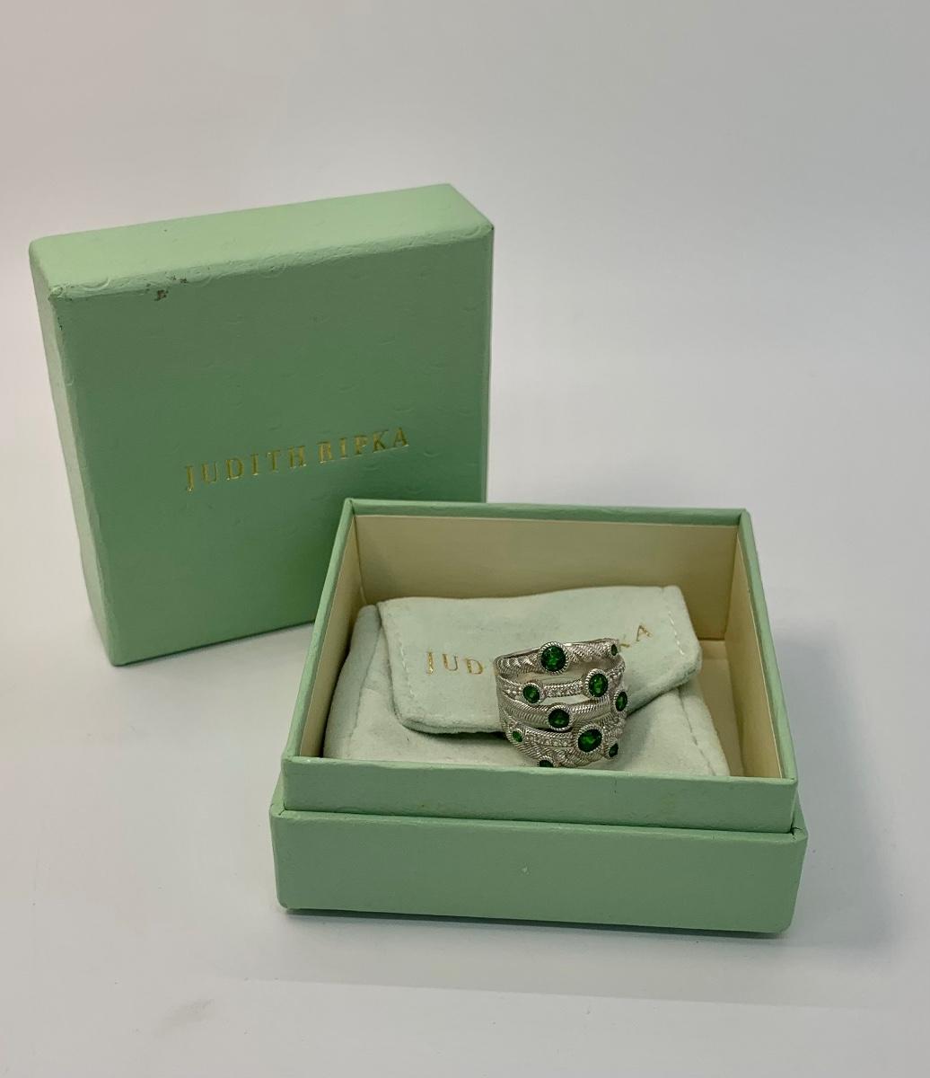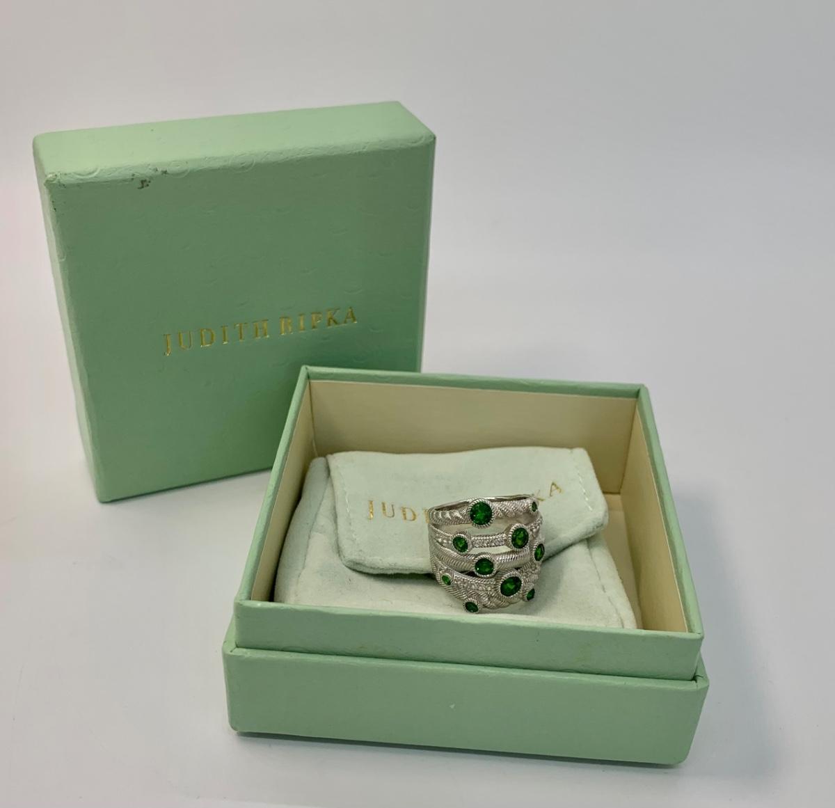 J152: New in Box Judith Ripka Sterling Green Chalcedony Ring sz. 5