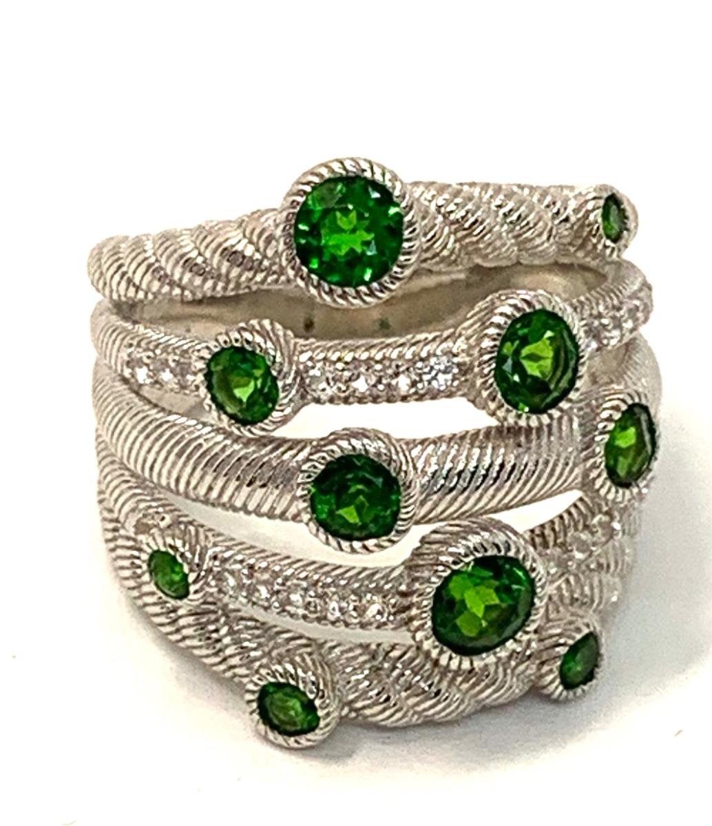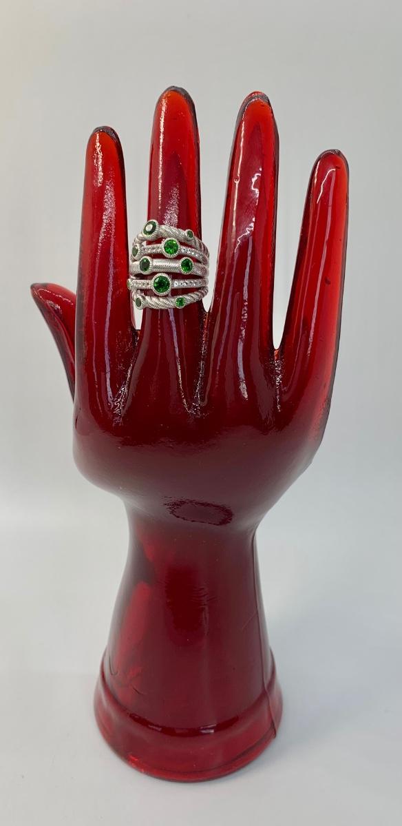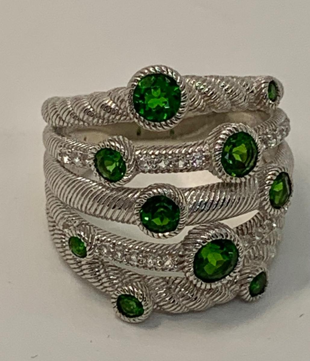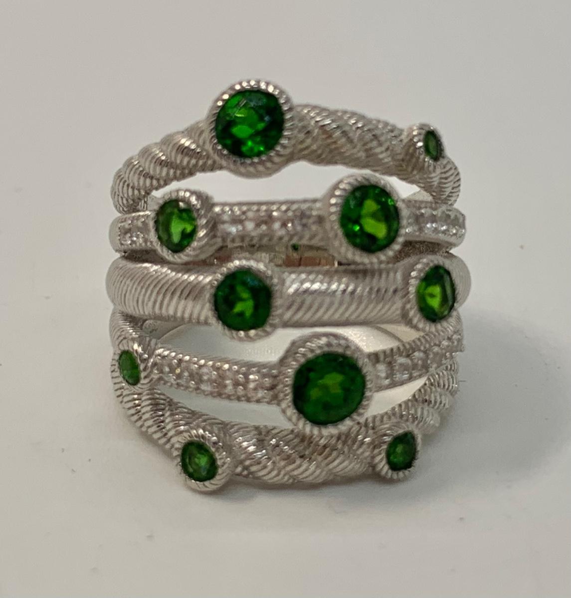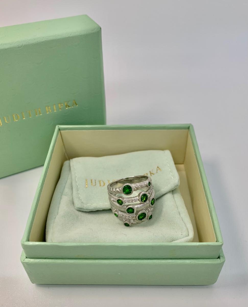 J152: New in Box Judith Ripka Sterling Green Chalcedony Ring sz. 5