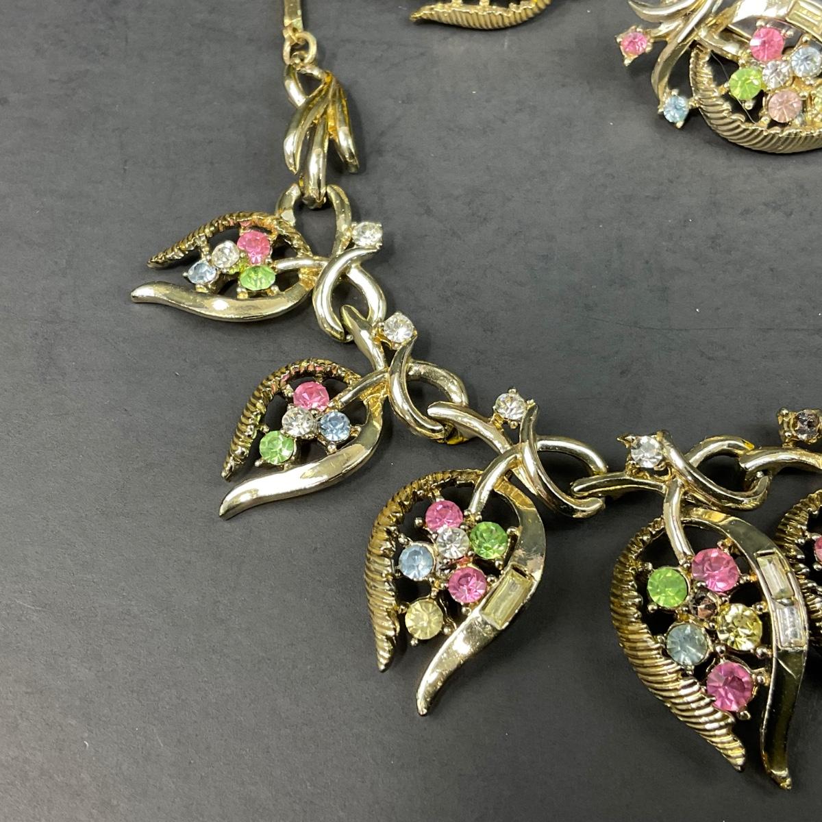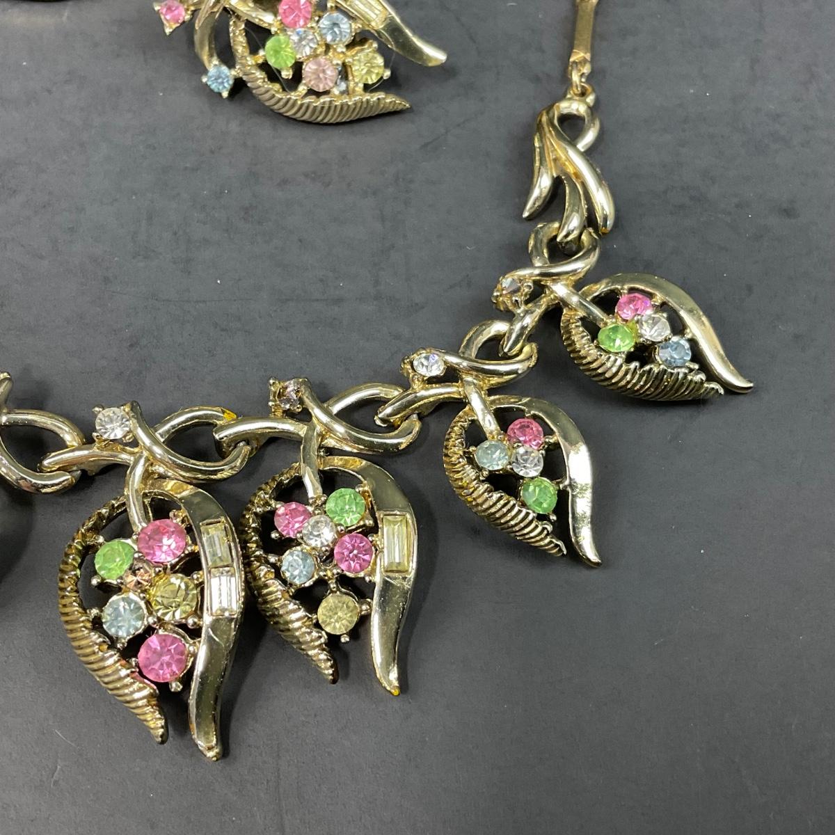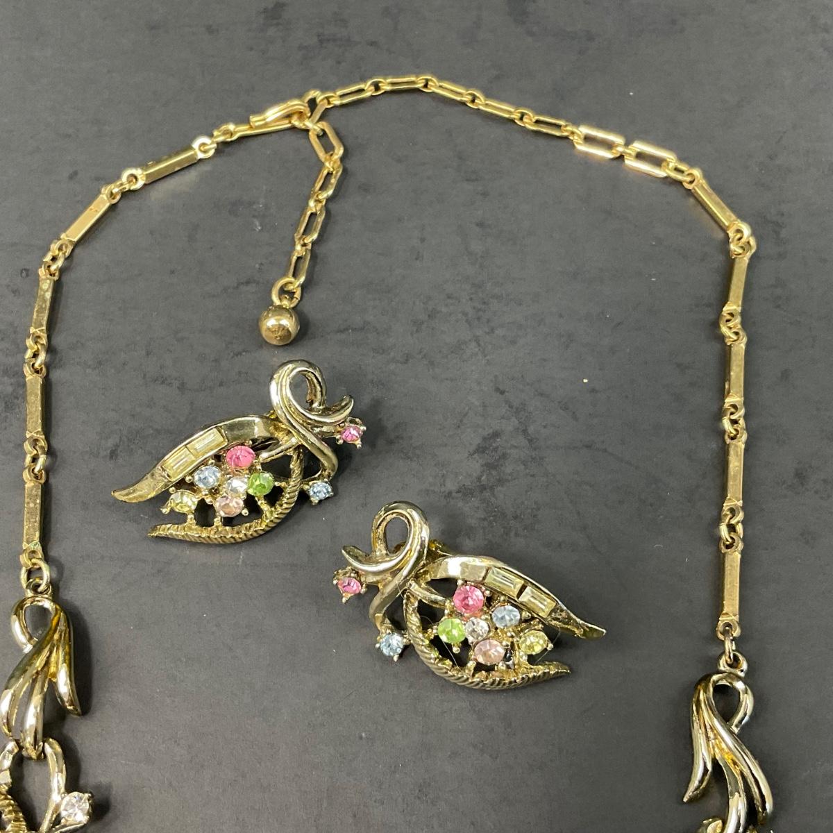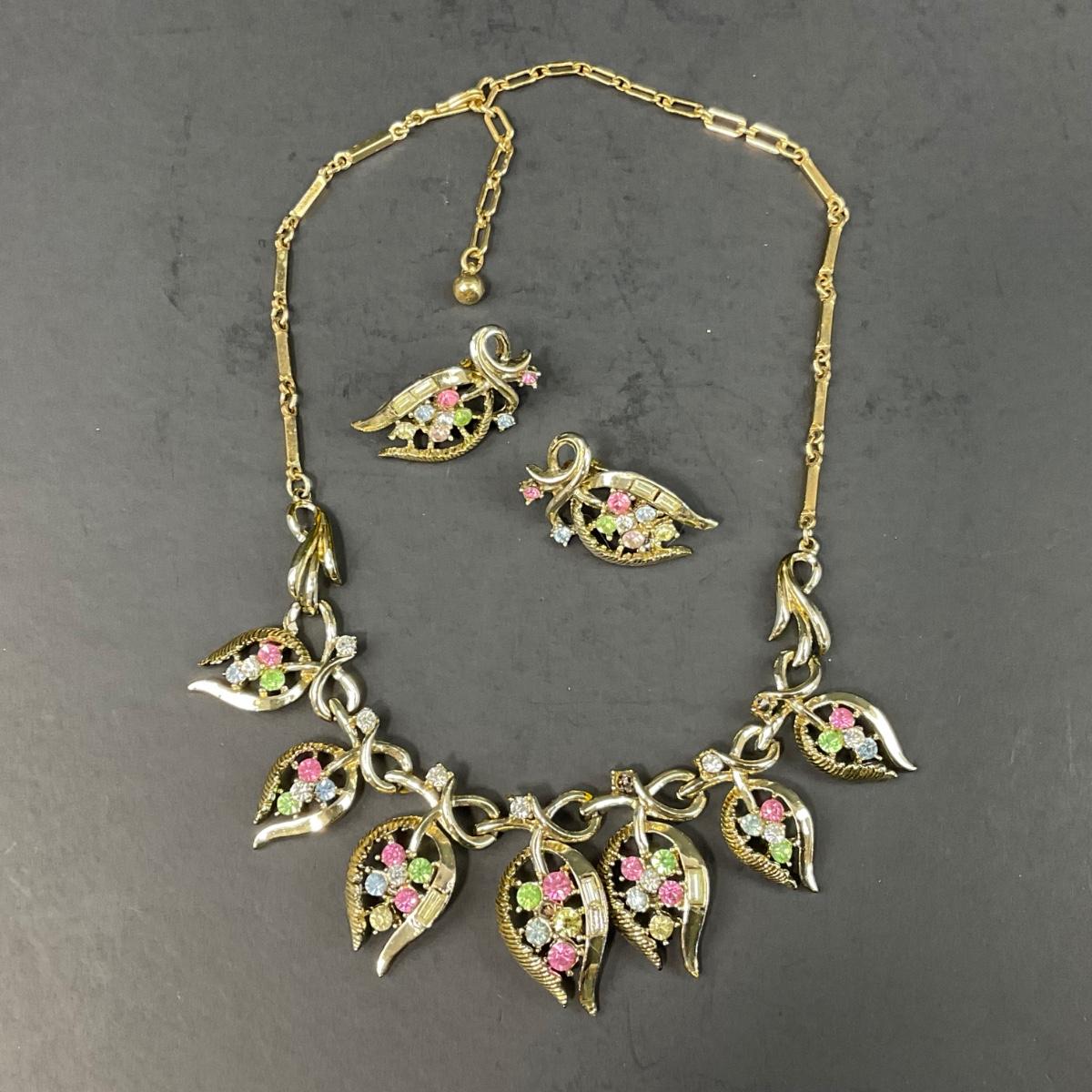 -152- COSTUME JEWELRY | 1960’s Coro Gold Tone With Pastel Stones | Necklace & Earrings