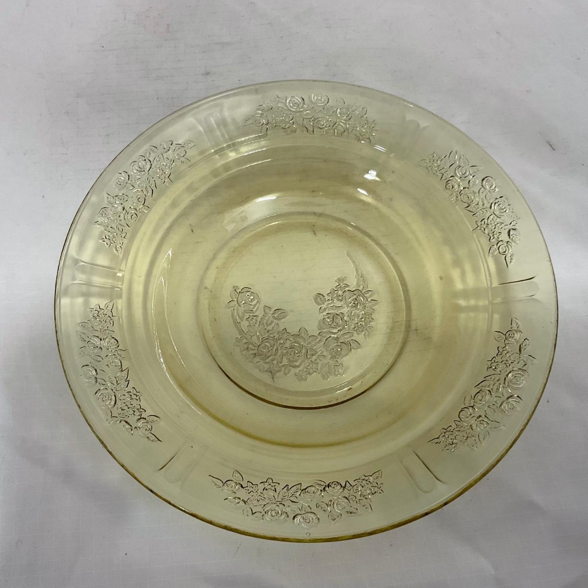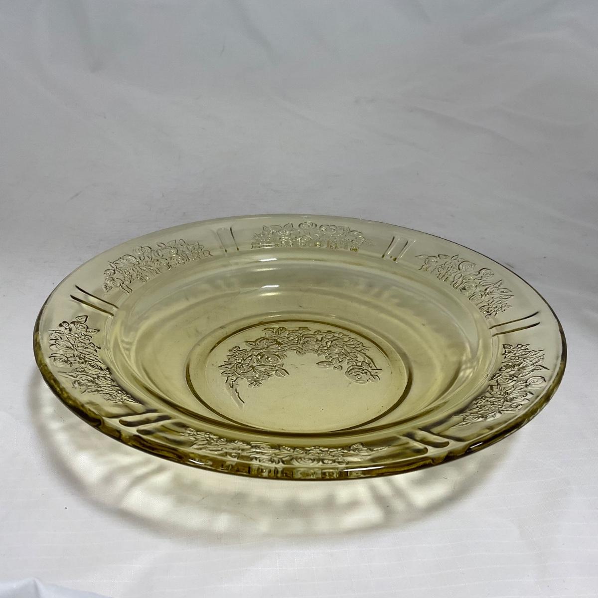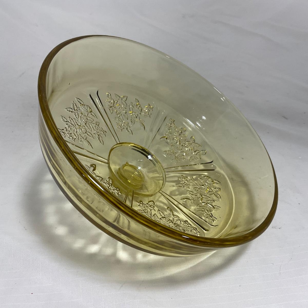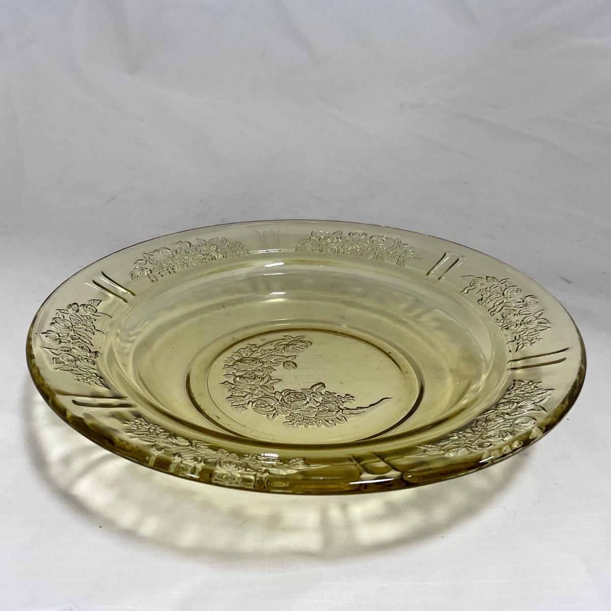 One dark yellow detailed covered butter dish. In beautiful shape and condition. Please see photos for details and condition. ::: Shipping is available on this lot. If you require shipping you must let us know at the close of the auction. We will coordinate with you after the item has been won. Shipping fees will include insurance up to or exceeding the value of all items being mailed. If you have any questions regarding this lot please contact the auctioneer either via this website, by direct email or by phone. PICK UP TIMES and other important information can be found in the TERMS and DESCRIPTION of the auction. Please take a look for pertinent information. Thanks!