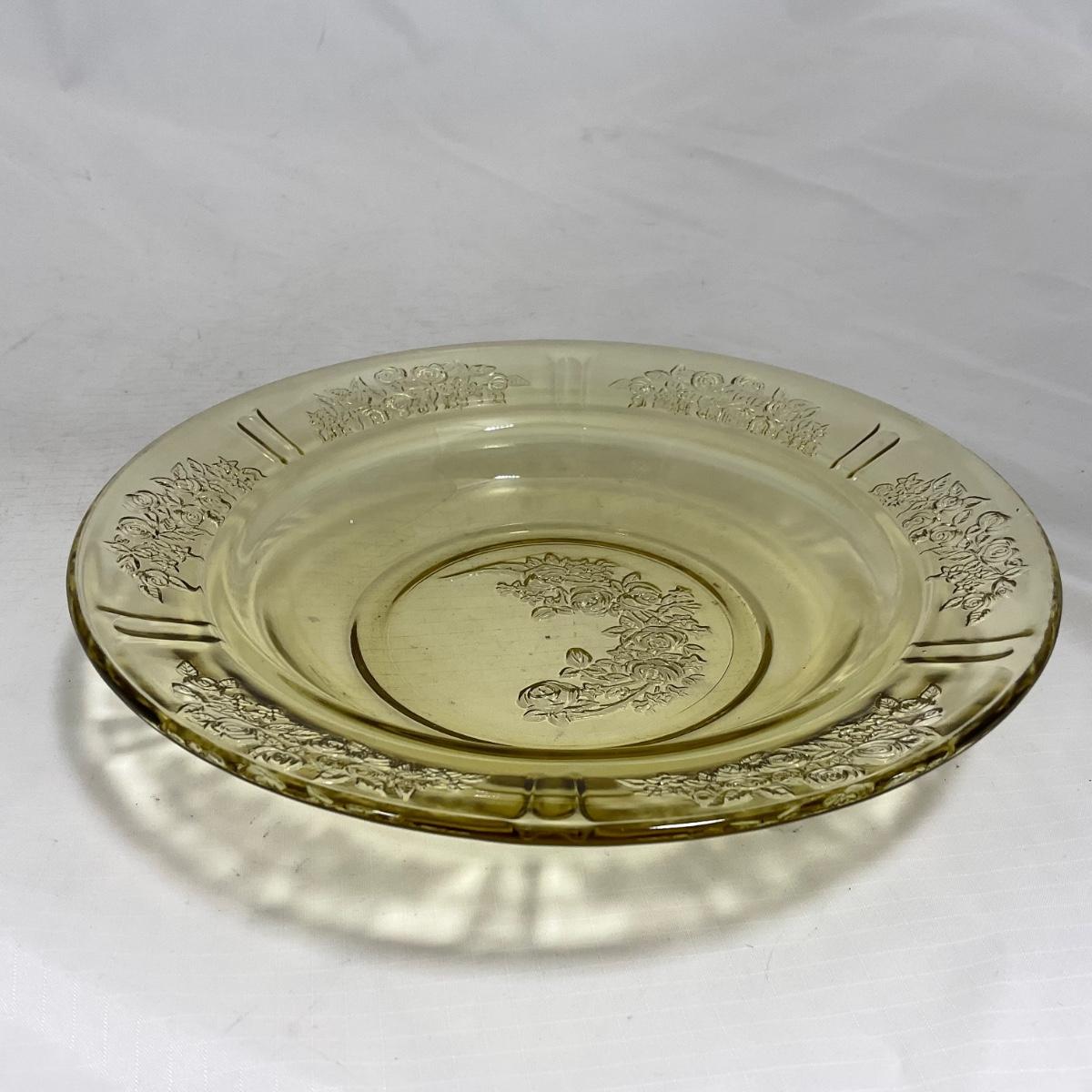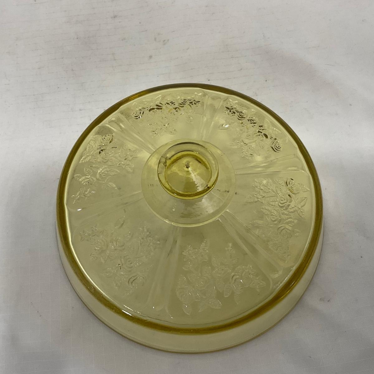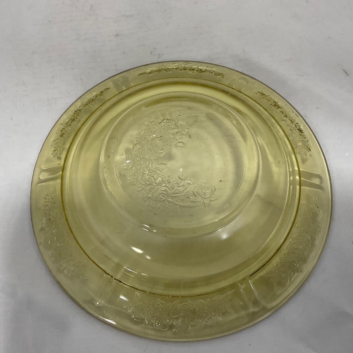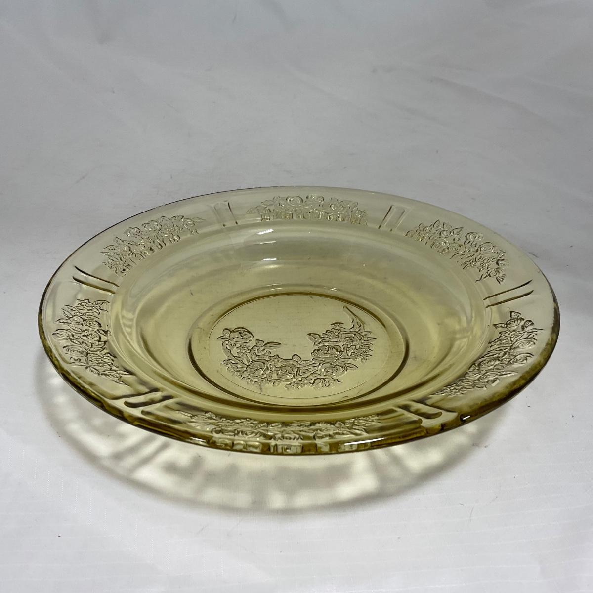 One dark yellow detailed covered butter dish. In beautiful shape and condition. Please see photos for details and condition. ::: Shipping is available on this lot. If you require shipping you must let us know at the close of the auction. We will coordinate with you after the item has been won. Shipping fees will include insurance up to or exceeding the value of all items being mailed. If you have any questions regarding this lot please contact the auctioneer either via this website, by direct email or by phone. PICK UP TIMES and other important information can be found in the TERMS and DESCRIPTION of the auction. Please take a look for pertinent information. Thanks!