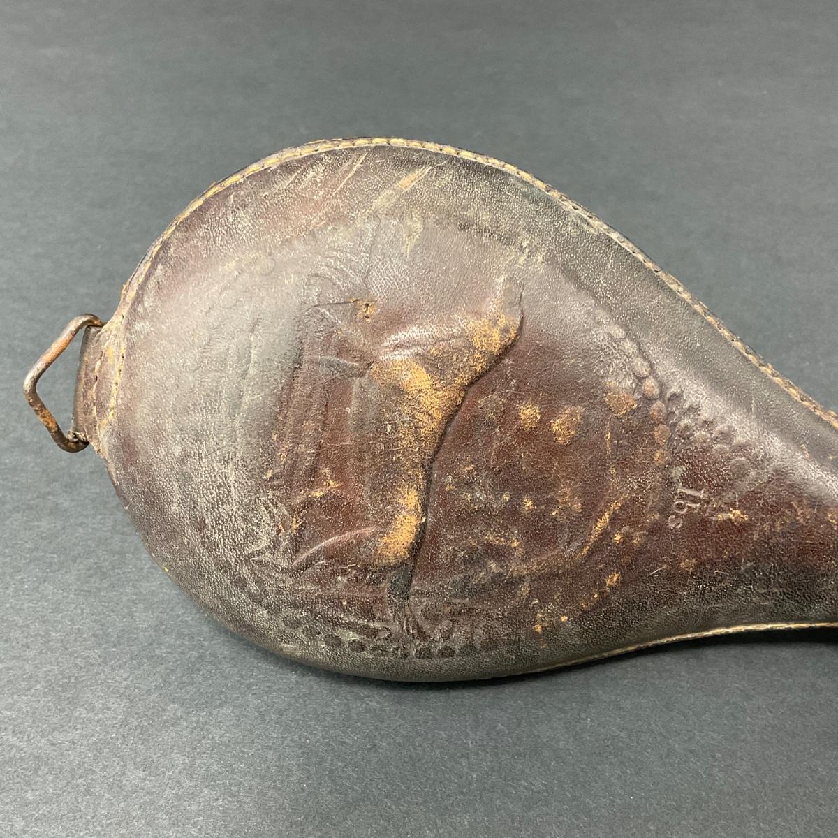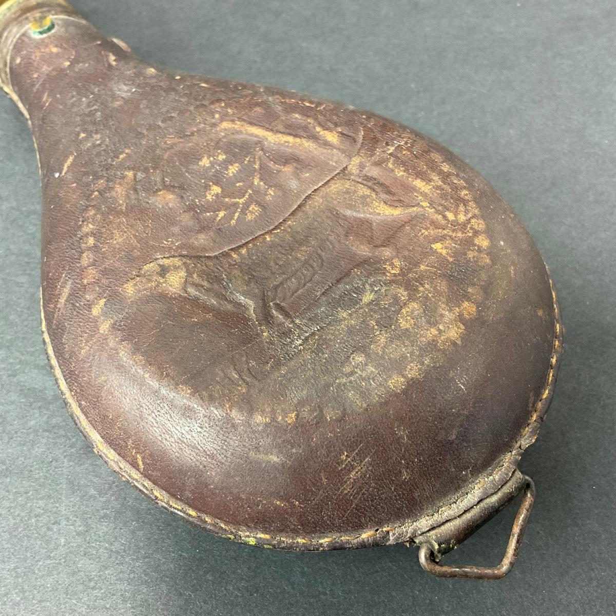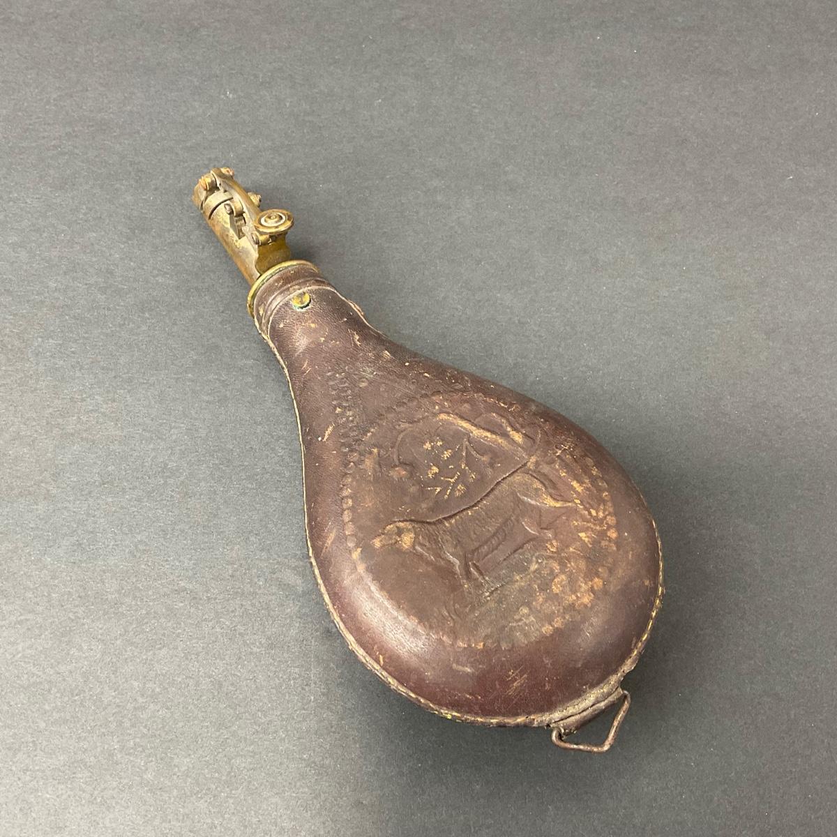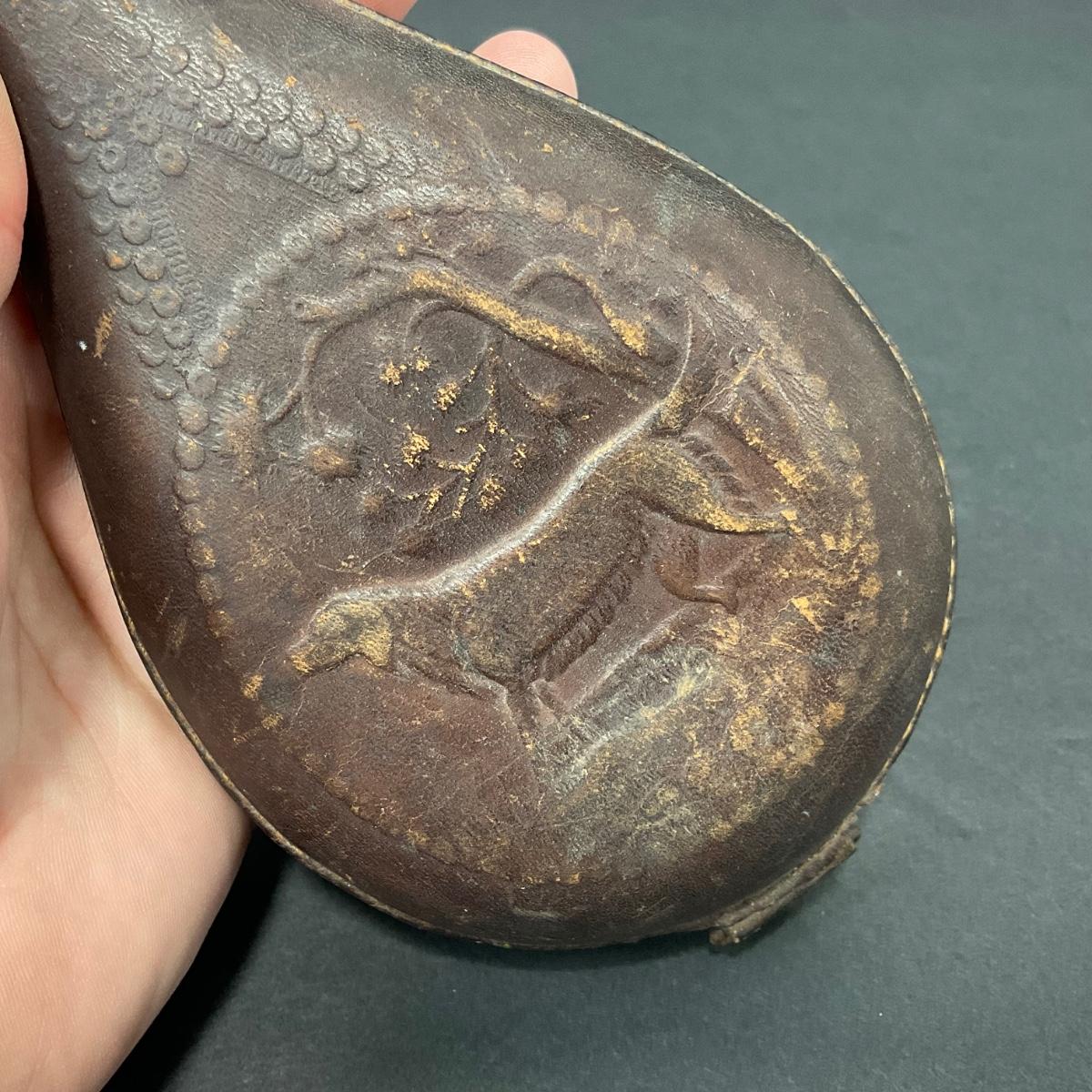 -152- LEATHER | Gun Powder Flask | Hunting Dog Design