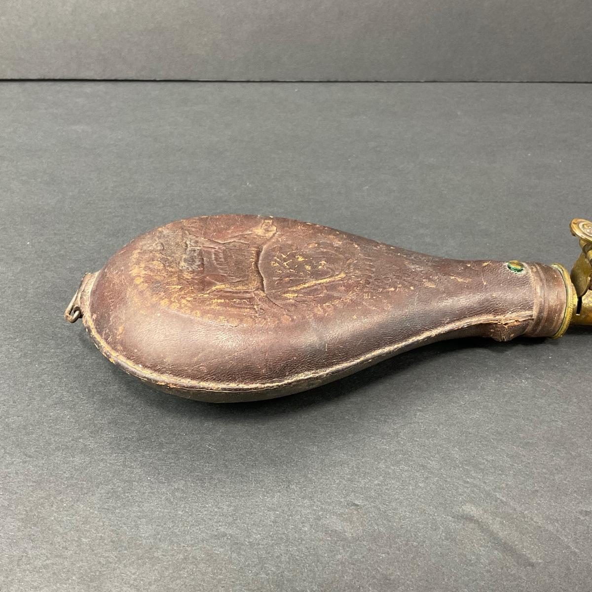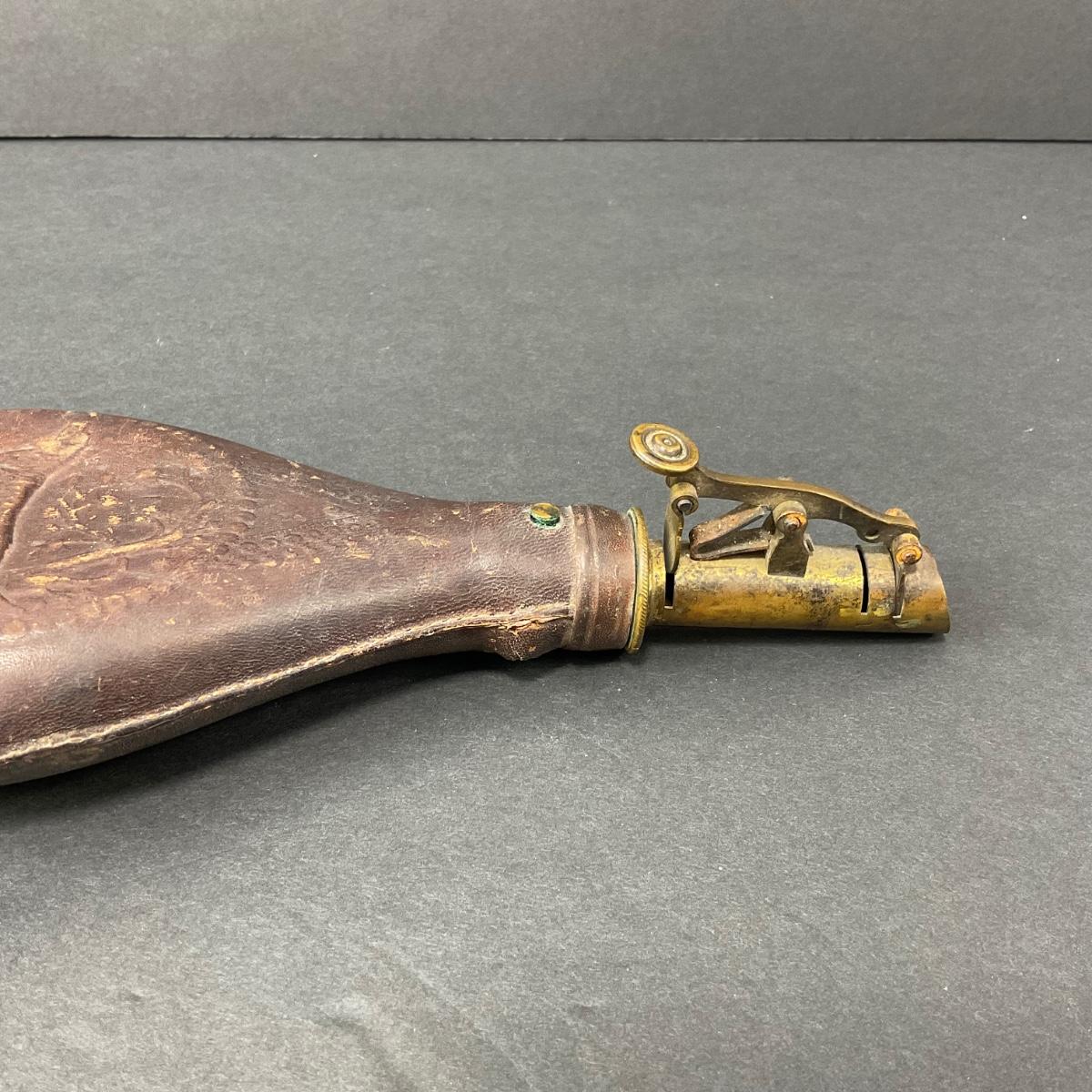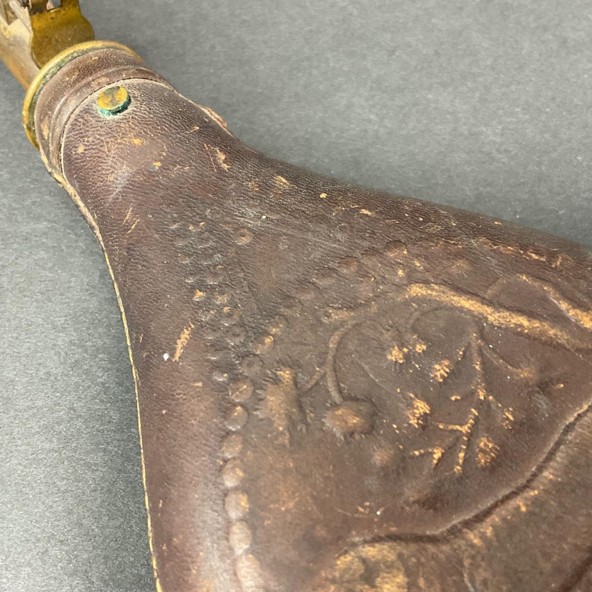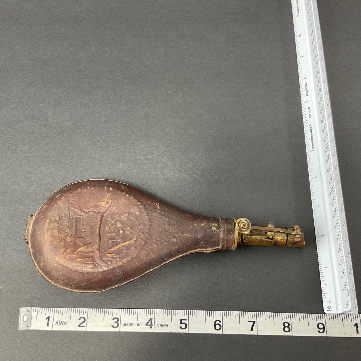 -152- LEATHER | Gun Powder Flask | Hunting Dog Design