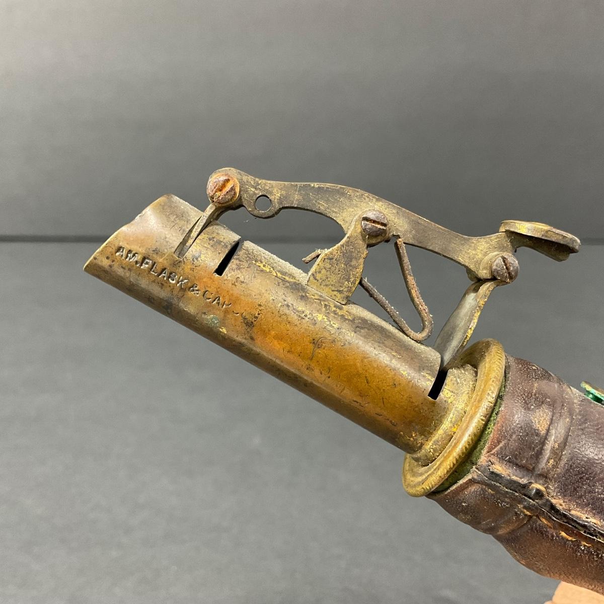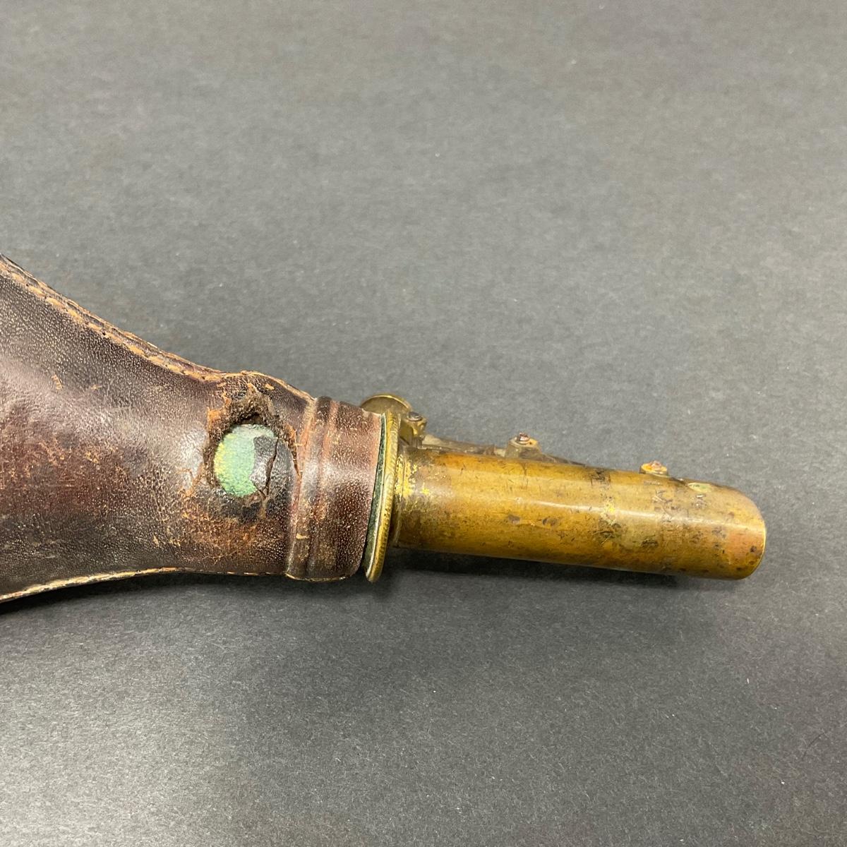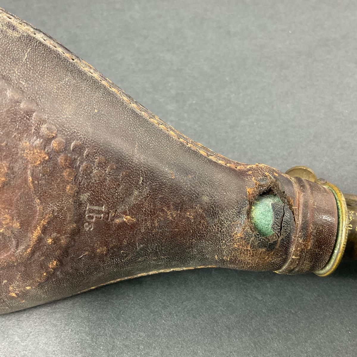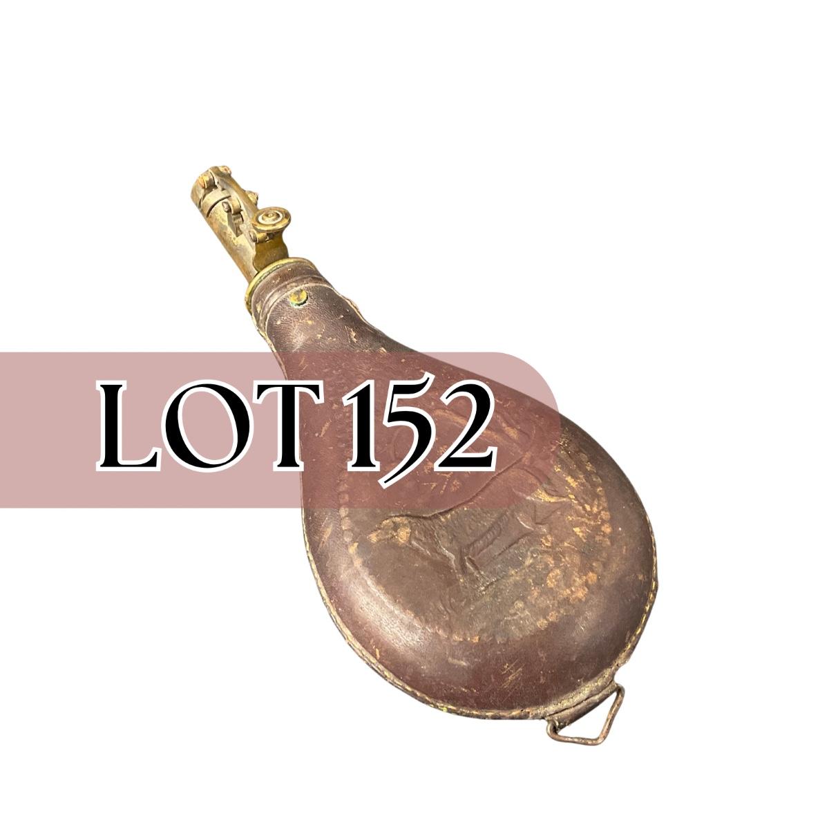 -152- LEATHER | Gun Powder Flask | Hunting Dog Design