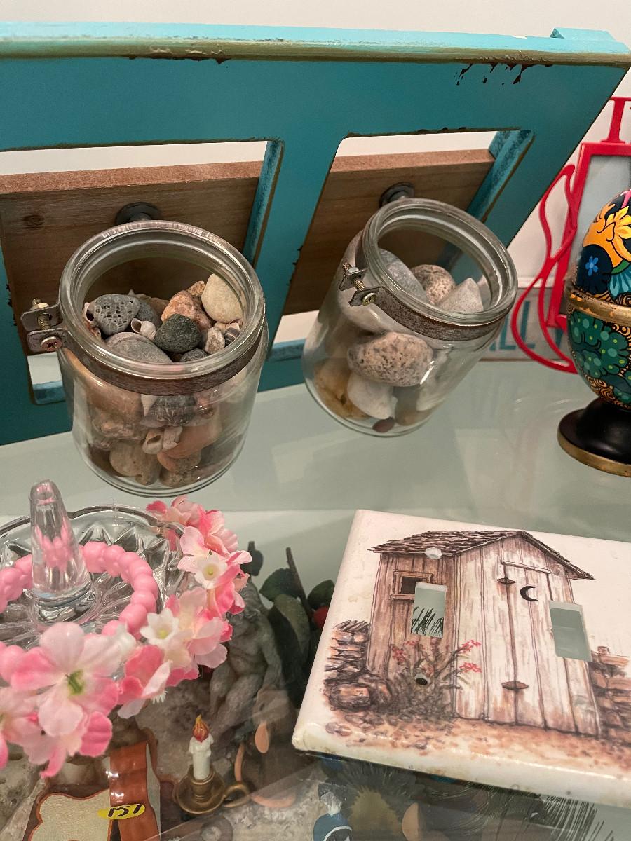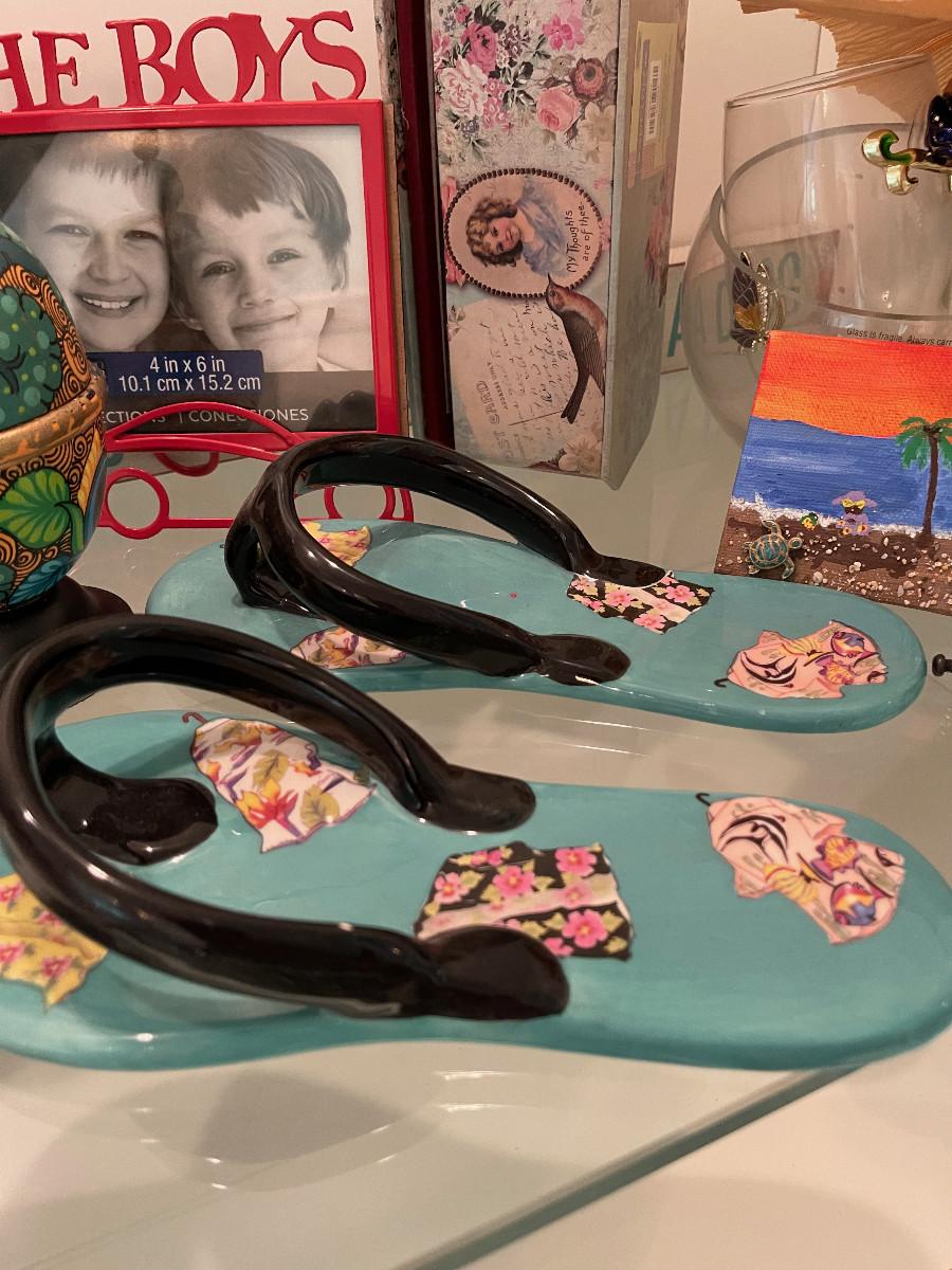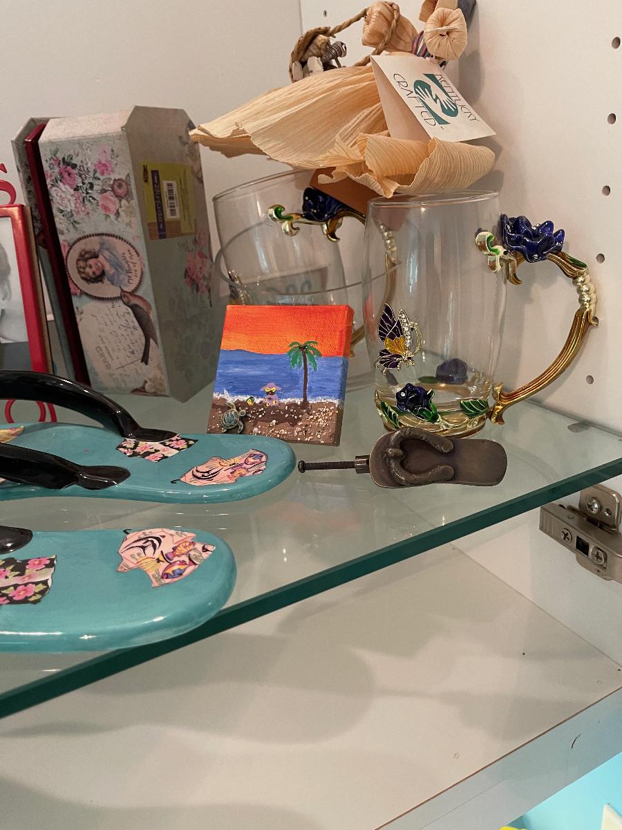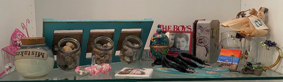 #152 Shelf full of Decorative Items: Flip Flops, Bugs and Frames décor'