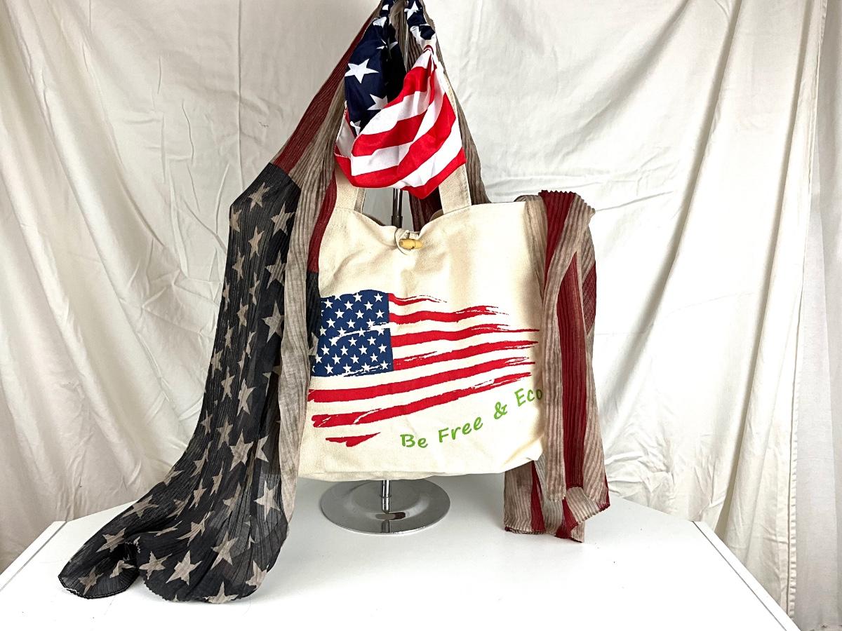 153 American Flag Canvas Bag with Scarf and Head Wrap