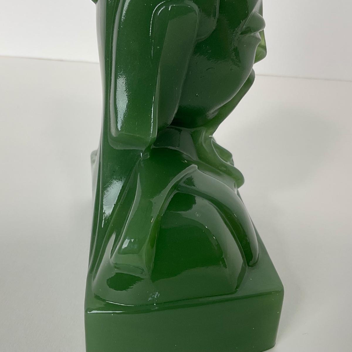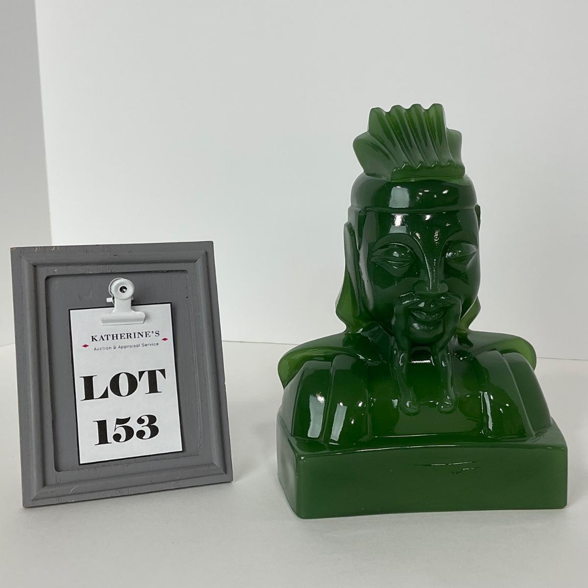 One Imperial Dynasty jade Lu Tang bookend. 5 inches wide by 7 1/2 inches tall. This piece has no damage, and appears to be in great shape with no visable chips, cracks, or broken pieces. Please see photos for details and condition. Any condition statement is given as a courtesy to a client, is an opinion, and should not be treated as a statement of fact. Reference to condition written, oral or within a condition report shall not be regarded as a full account of condition and may not include all defects, alterations, or restorations. Absence of a condition report does not imply a lot is flawless or lacking imperfections or damage. Katherine’s Auction & Appraisal Service shall have no responsibility for any error or omission. Returns shall not be accepted on the basis of condition. ::: Shipping is available on this lot. If you require shipping you must let us know at the close of the auction. We will coordinate with you after the item has been won. Shipping fees will include insurance up to or exceeding the value of all items being mailed. If you have any questions regarding this lot please contact the auctioneer either via this website, by direct email or by phone. PICK UP TIMES and other important information can be found in the TERMS and DESCRIPTION of the auction. Please take a look for pertinent information. Thanks!