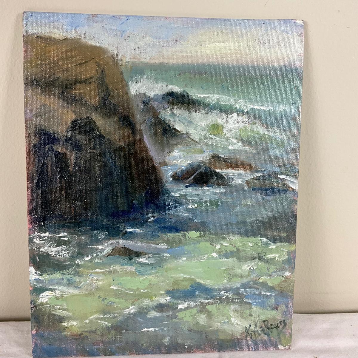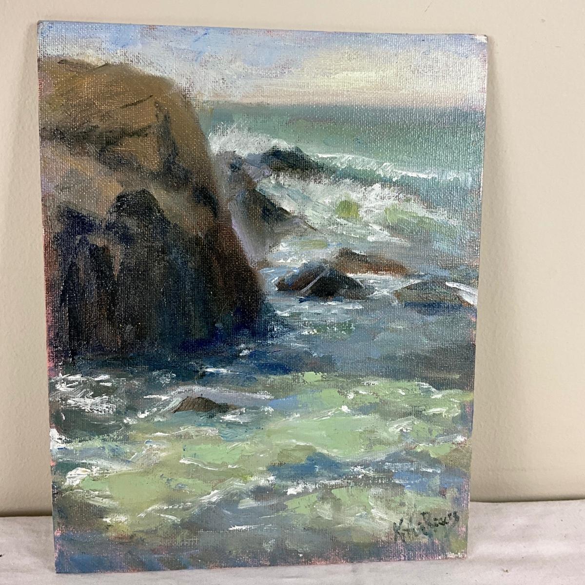 153 Original Oil Painting Seascape with Rocks by Kathie Rogers