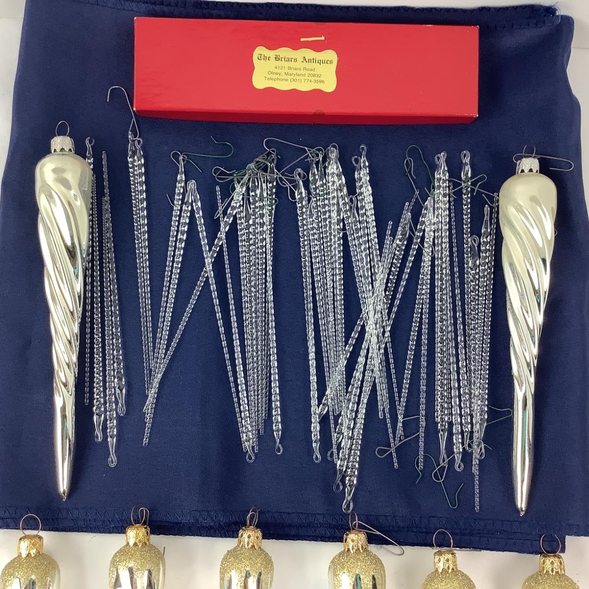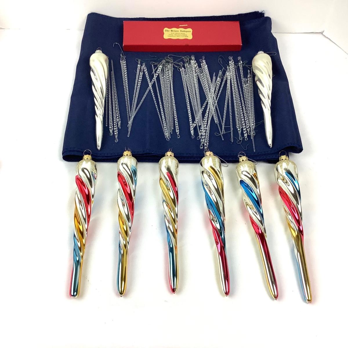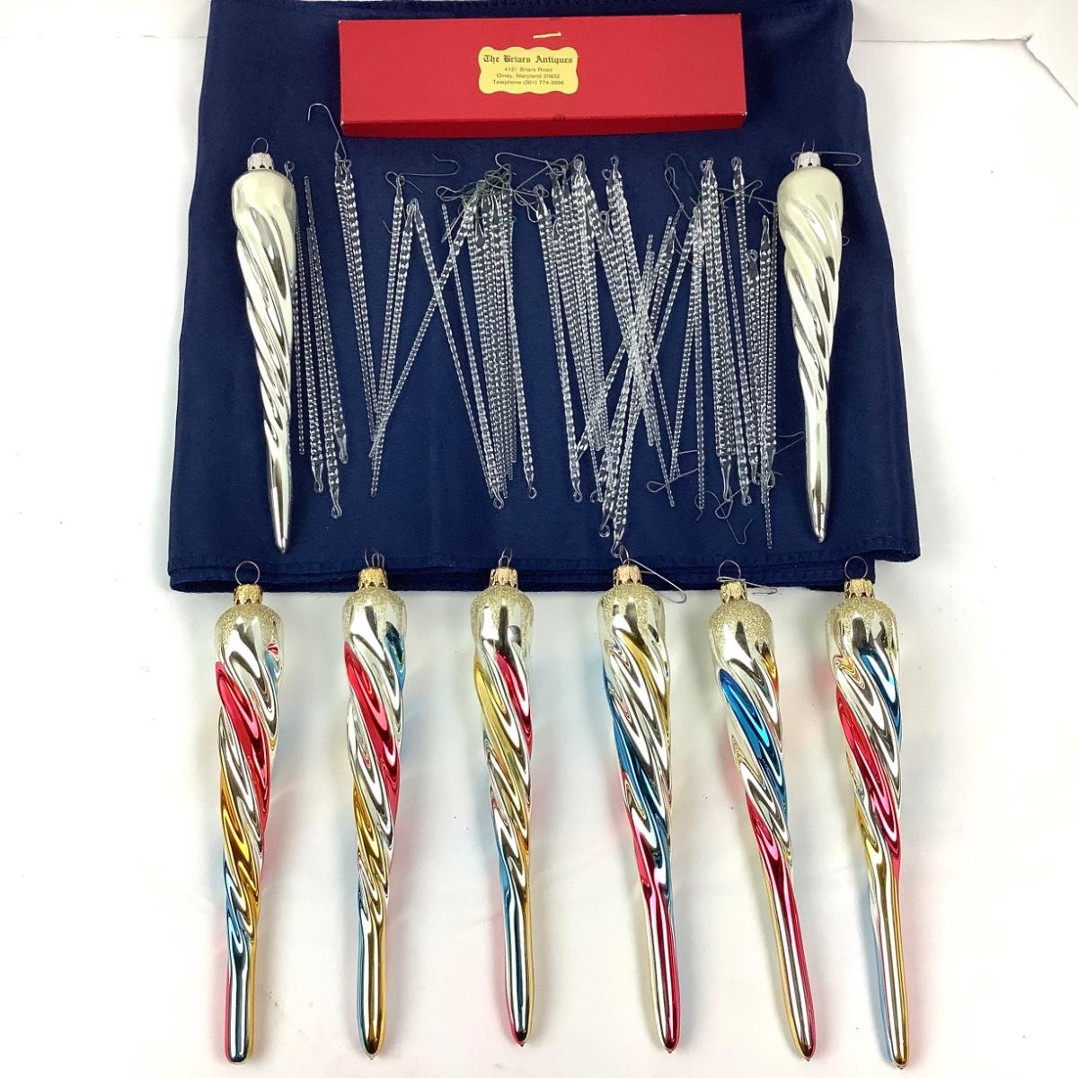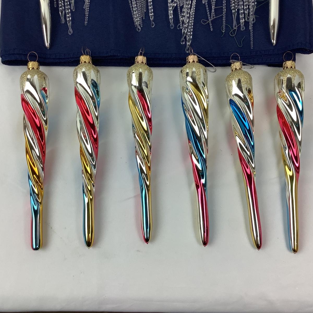 There are several assorted icicles, clear glass and colorful glass. They are approximately 8” in lenght.