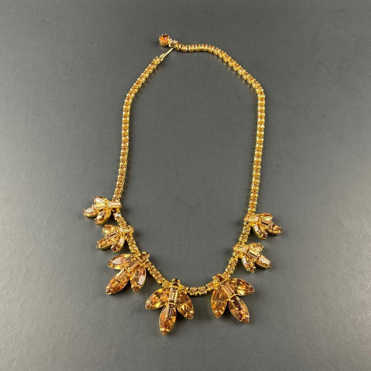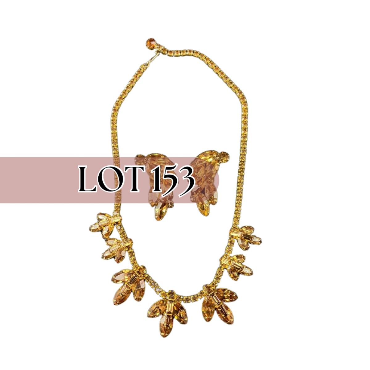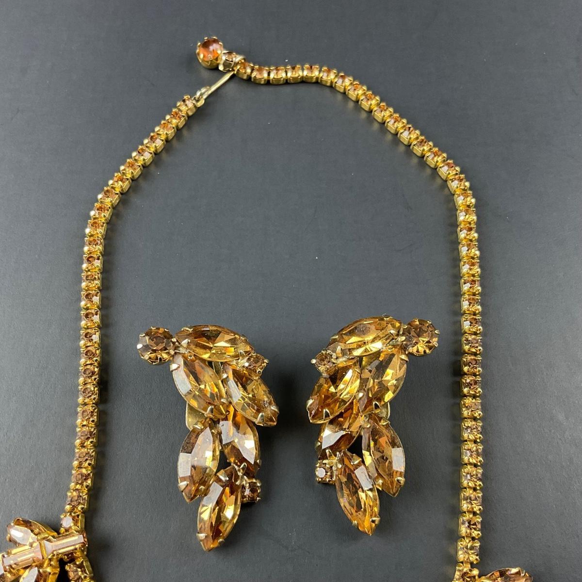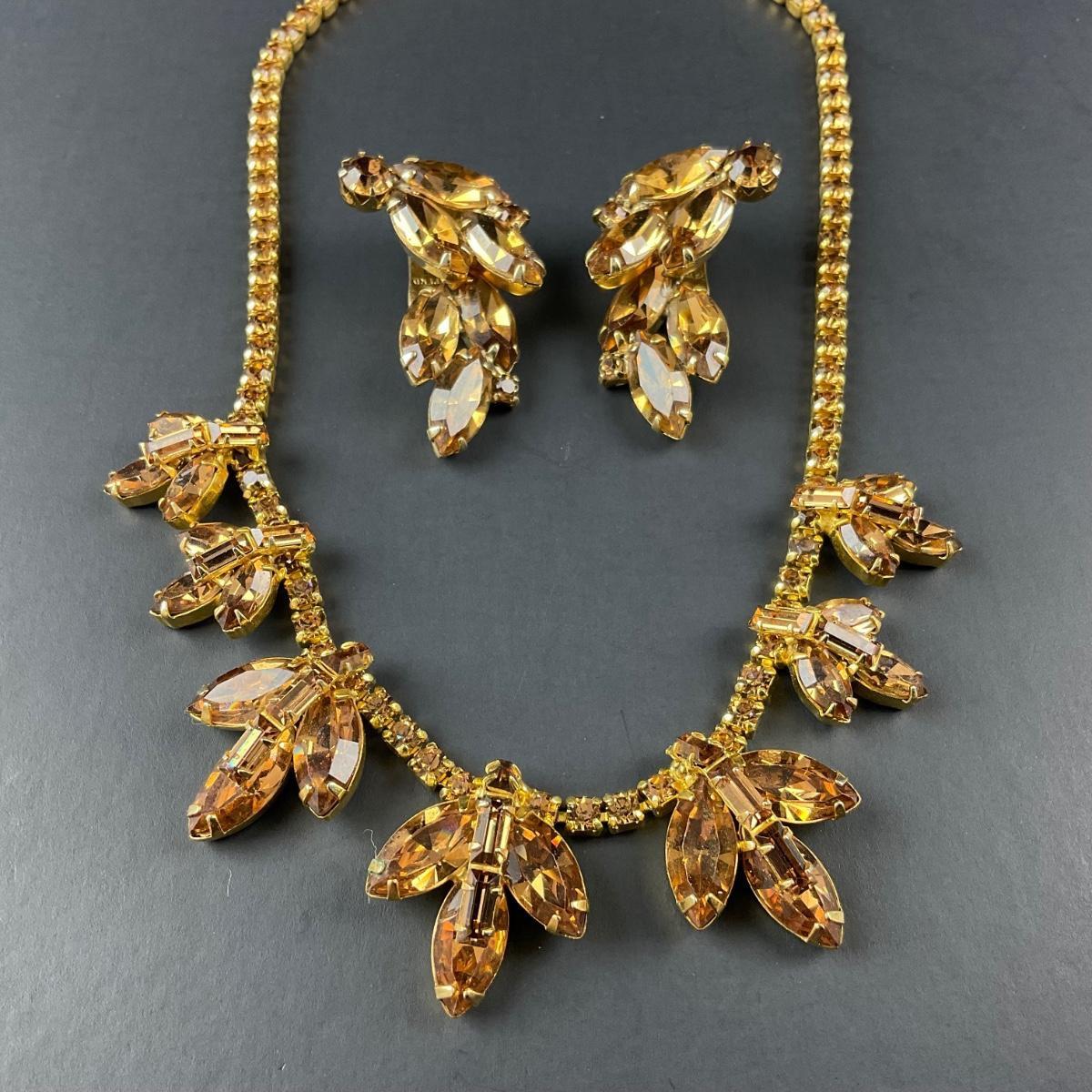 -153- WEISS | Rhinestone Amber Necklace & Earrings | Marked