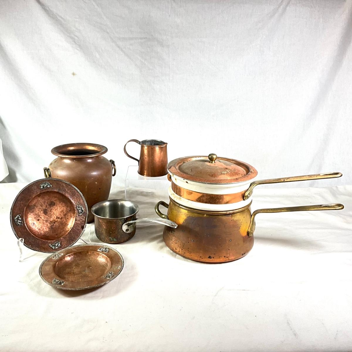 1537 Vintage Copper & Porcelain Double Boiler, Copper Plates and more