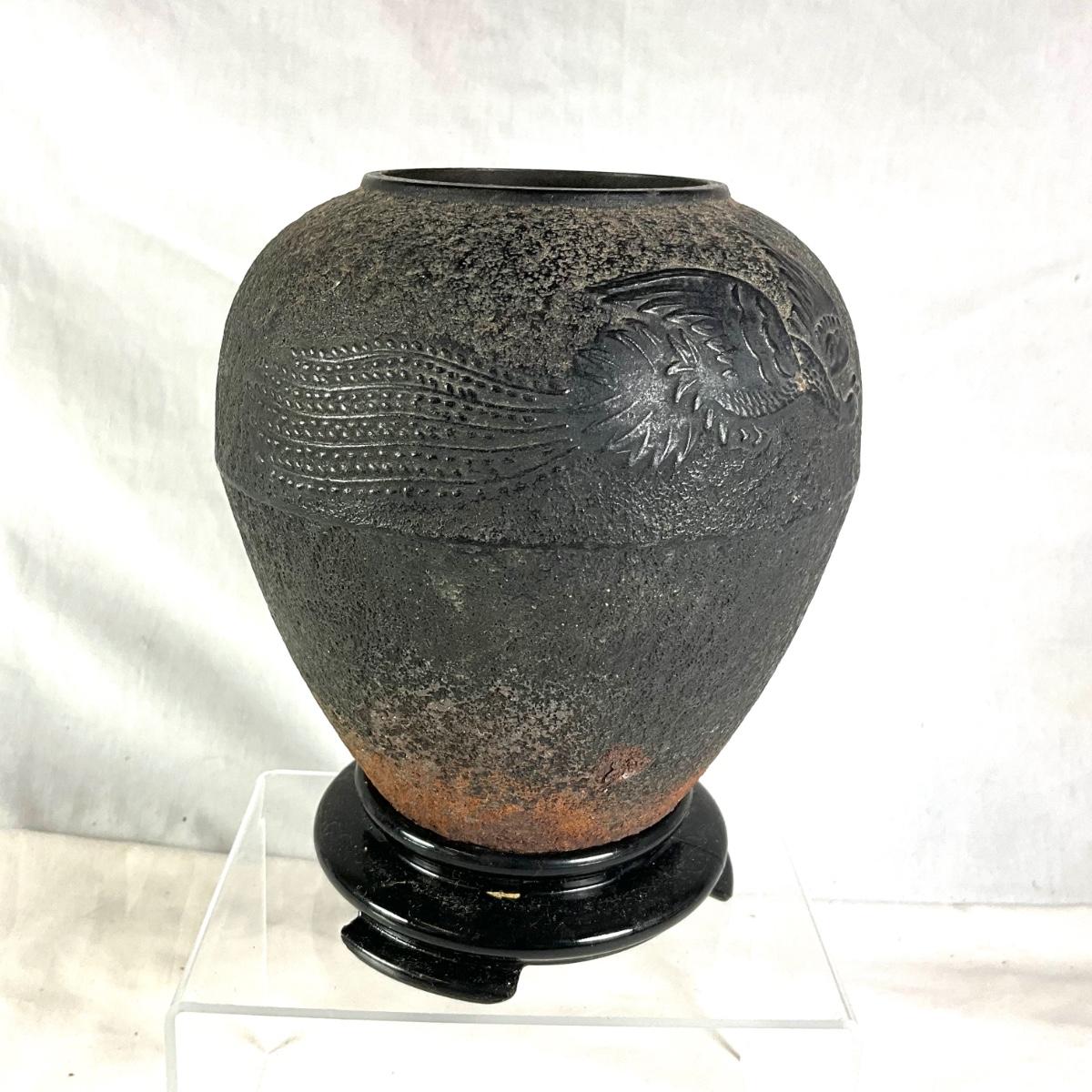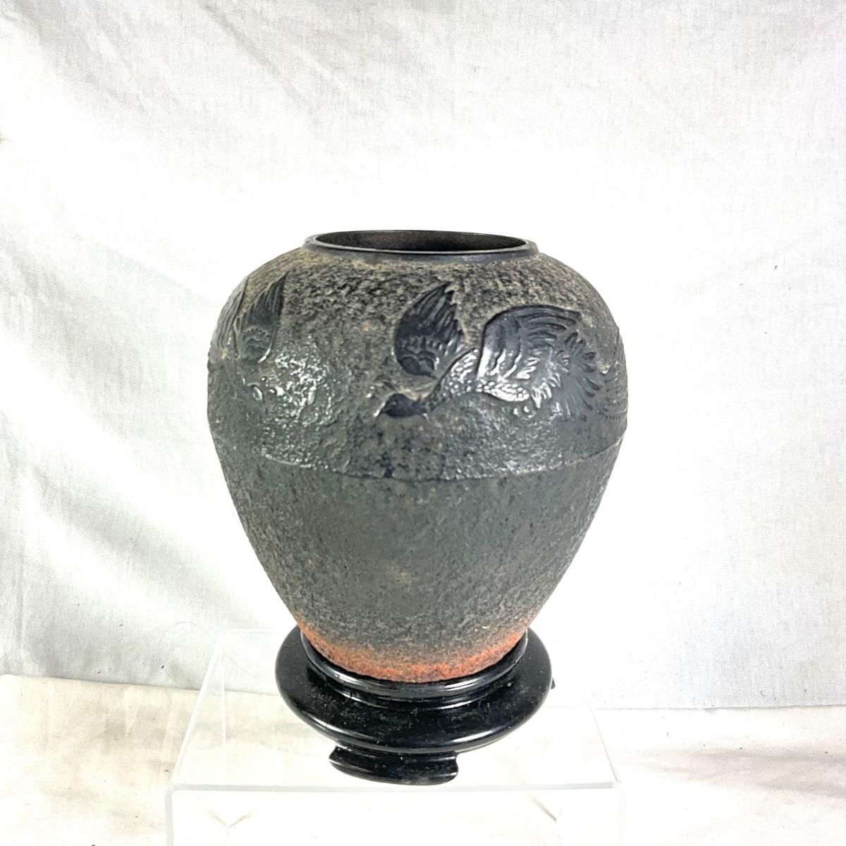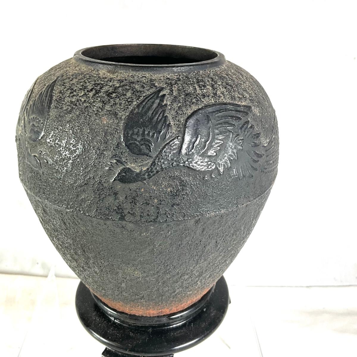1538 Vintage Japanese Tetsubin Cast Iron Vase with Bird Design