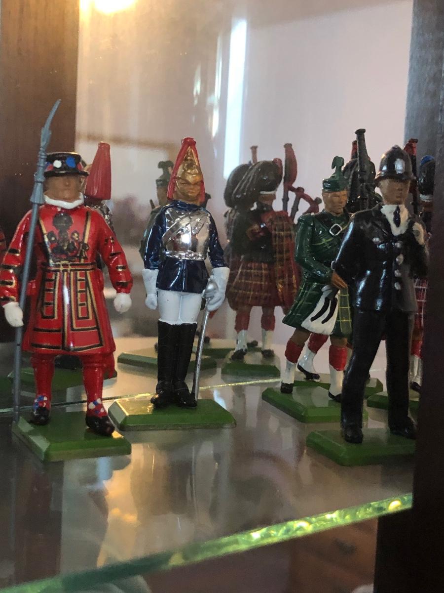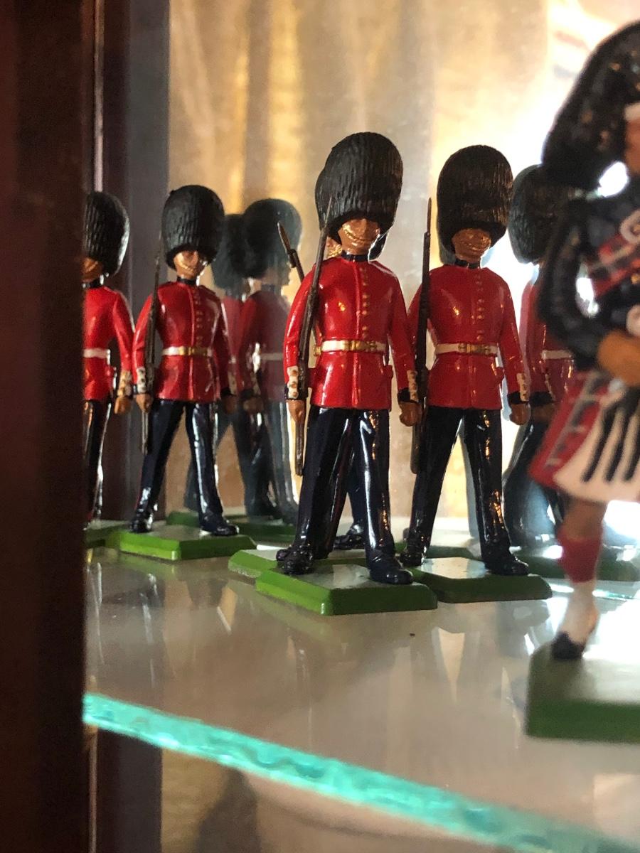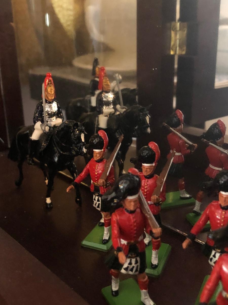 LOT153M: Britains Hand Painted British Regiments & Metal Models w/ mirrored Cabinet