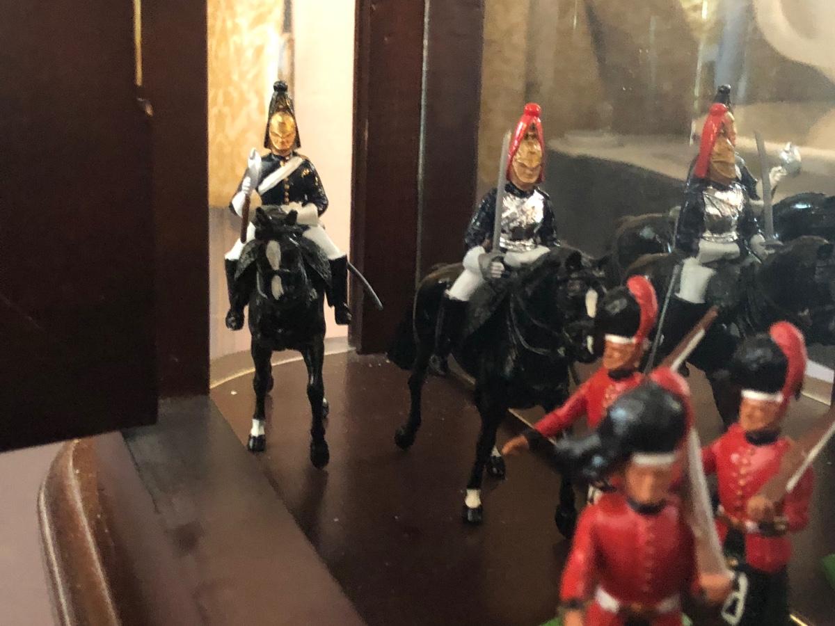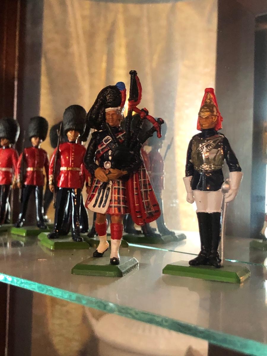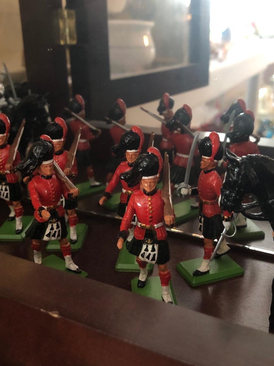 LOT153M: Britains Hand Painted British Regiments & Metal Models w/ mirrored Cabinet