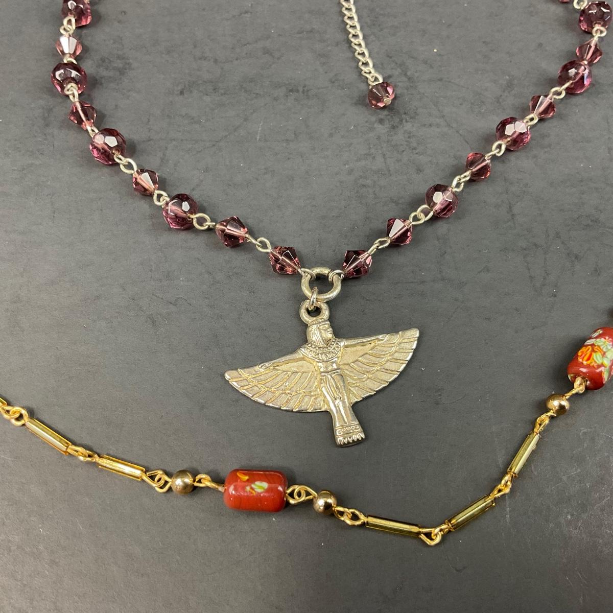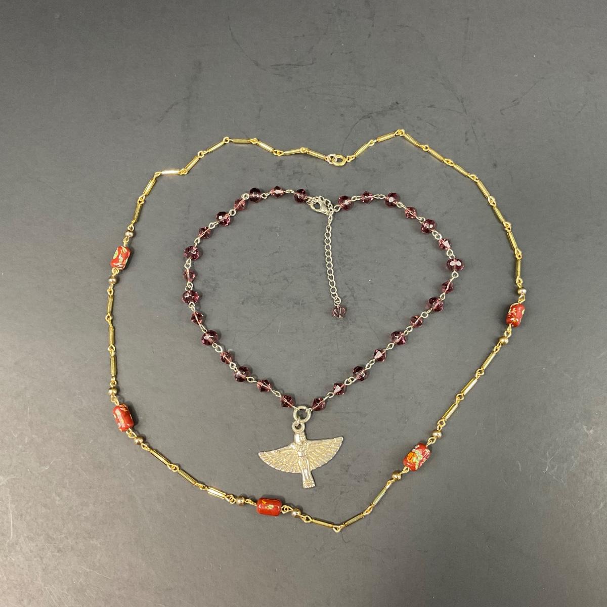 Two colored bead necklaces. Please see photos for details and condition. Any condition statement is given as a courtesy to a client, is an opinion, and should not be treated as a statement of fact. Reference to condition written, oral or within a condition report shall not be regarded as a full account of condition and may not include all defects, alterations, or restorations. Absence of a condition report does not imply a lot is flawless or lacking imperfections or damage. Katherine’s Auction & Appraisal Service shall have no responsibility for any error or omission. Returns shall not be accepted on the basis of condition. ::: Shipping is available on this lot. If you require shipping you must let us know at the close of the auction. We will coordinate with you after the item has been won. Shipping fees will include insurance up to or exceeding the value of all items being mailed. If you have any questions regarding this lot please contact the auctioneer either via this website, by direct email or by phone. PICK UP TIMES and other important information can be found in the TERMS and DESCRIPTION of the auction. Please take a look for pertinent information. Thanks!