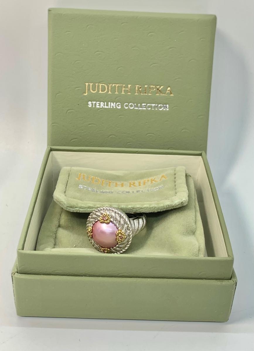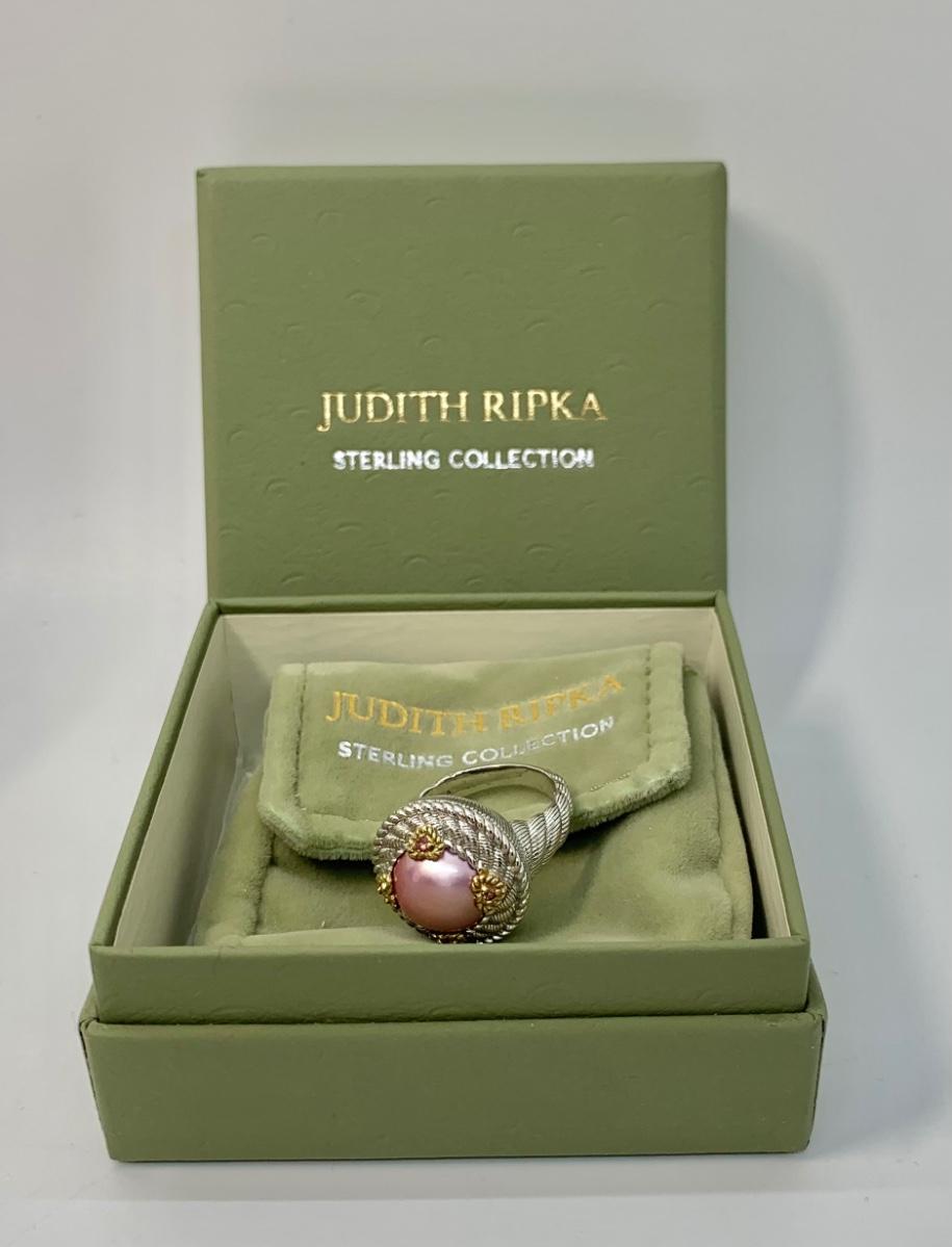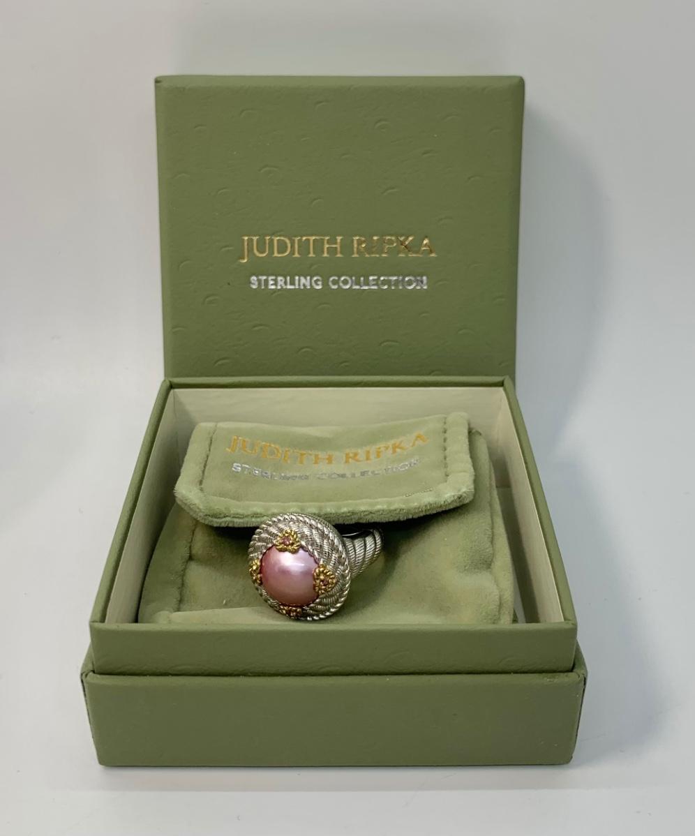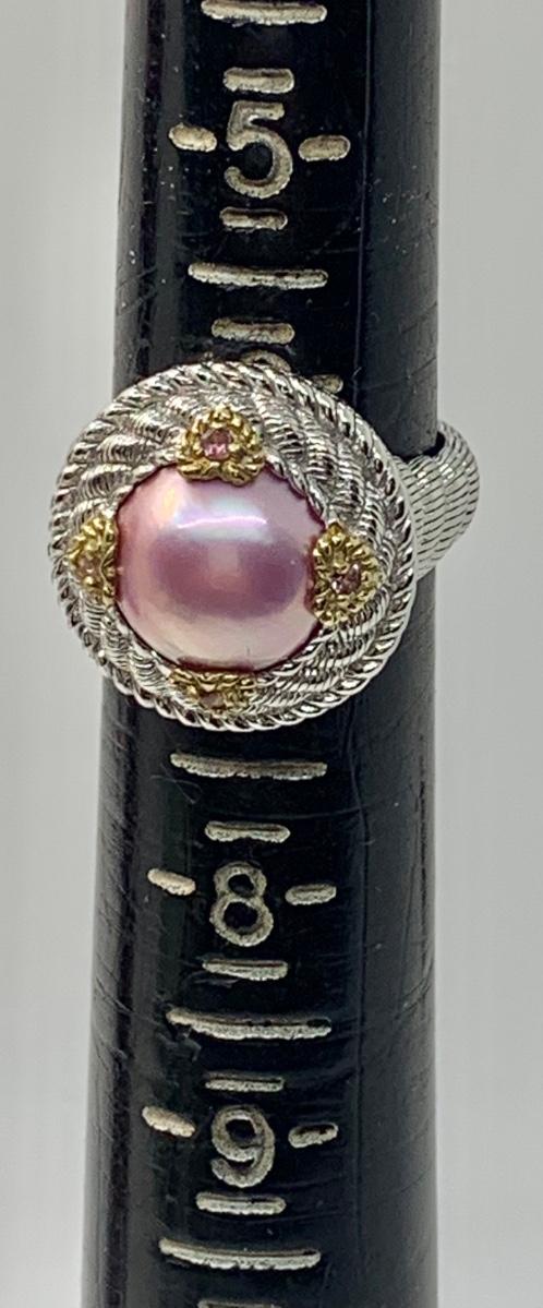 154: New in Box Judith Ripka 925 sterling and gold Pink Iridescent Cultured Pearl Ring size 5.5