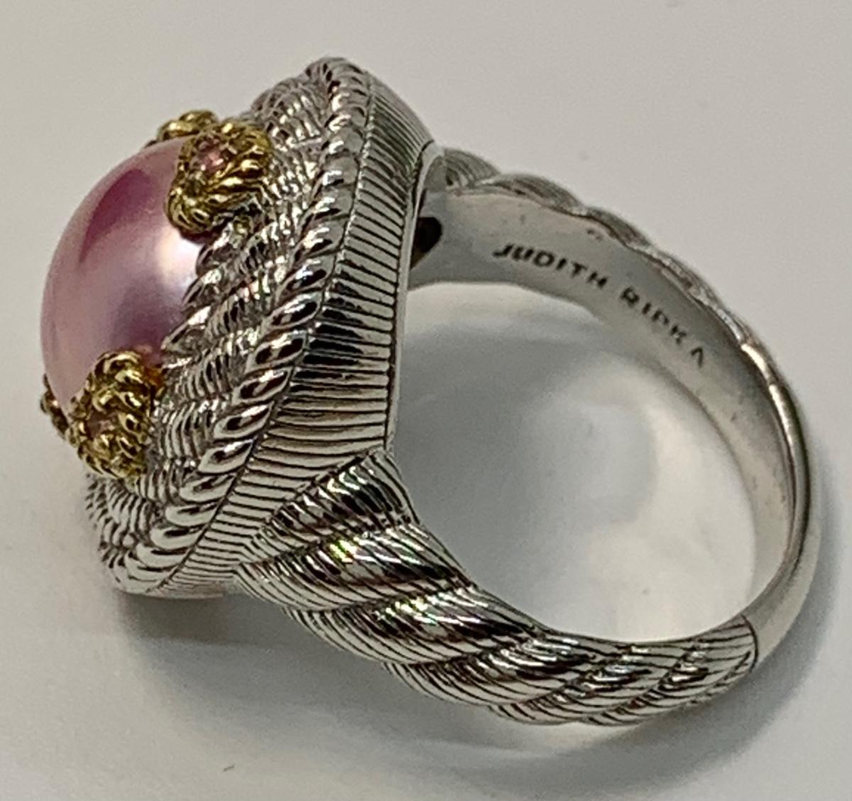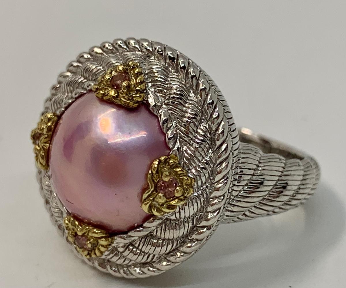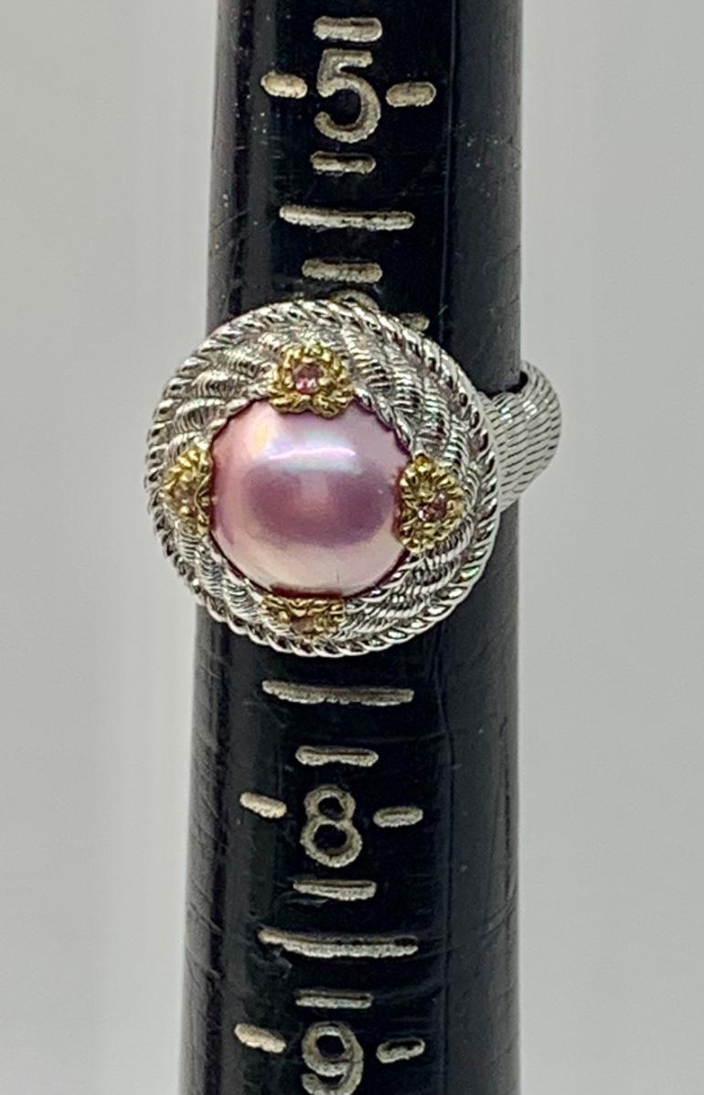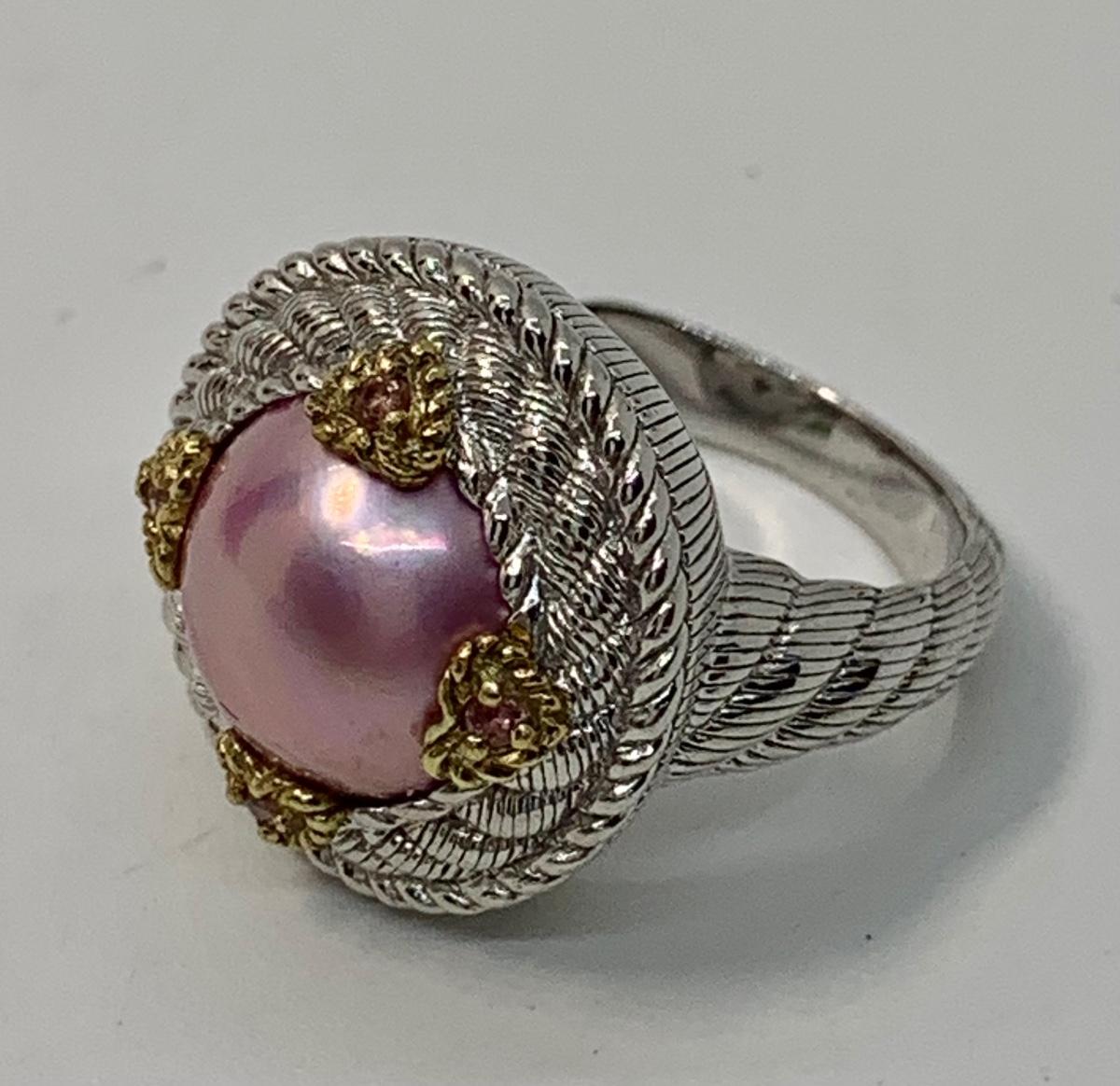 154: New in Box Judith Ripka 925 sterling and gold Pink Iridescent Cultured Pearl Ring size 5.5