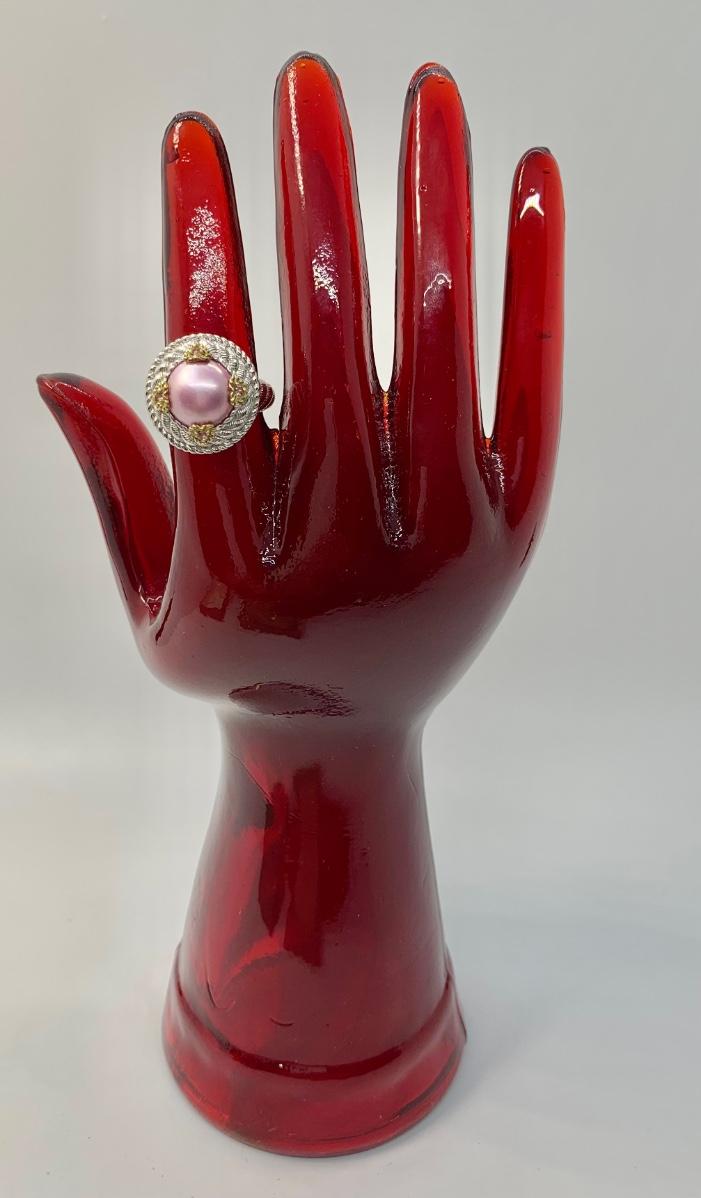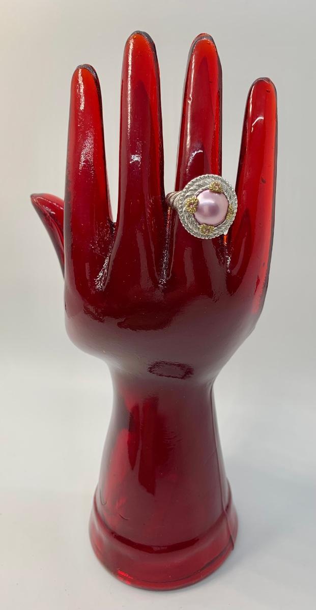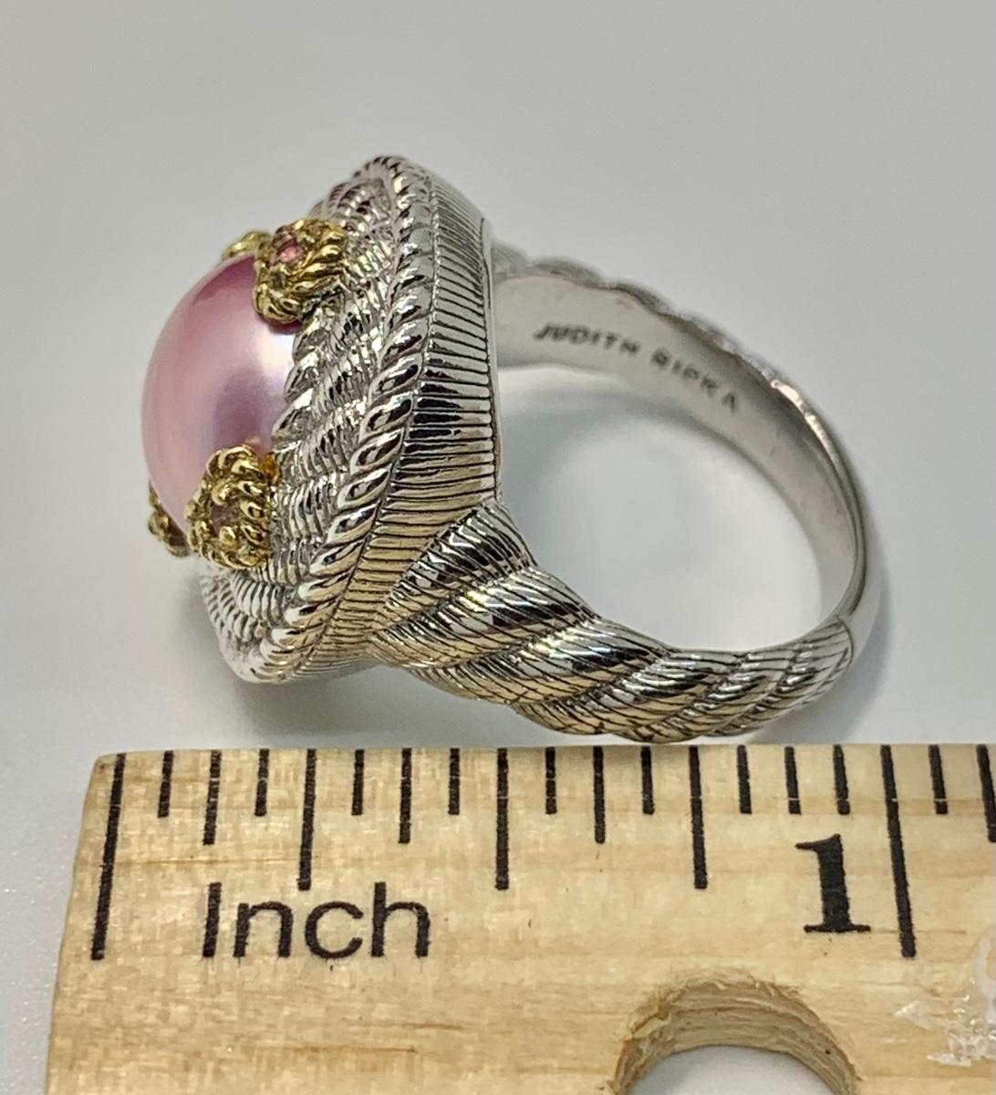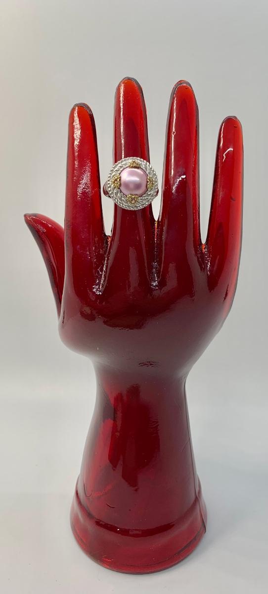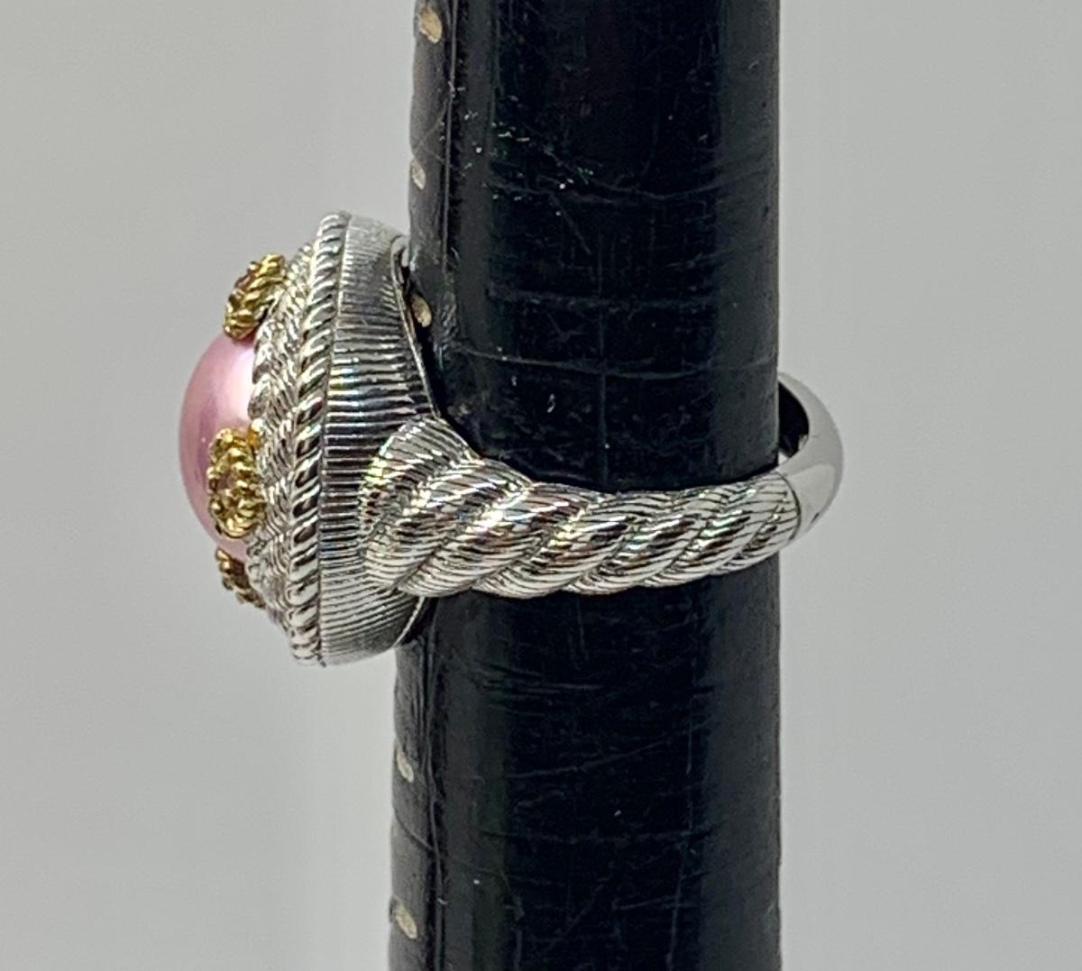 154: New in Box Judith Ripka 925 sterling and gold Pink Iridescent Cultured Pearl Ring size 5.5