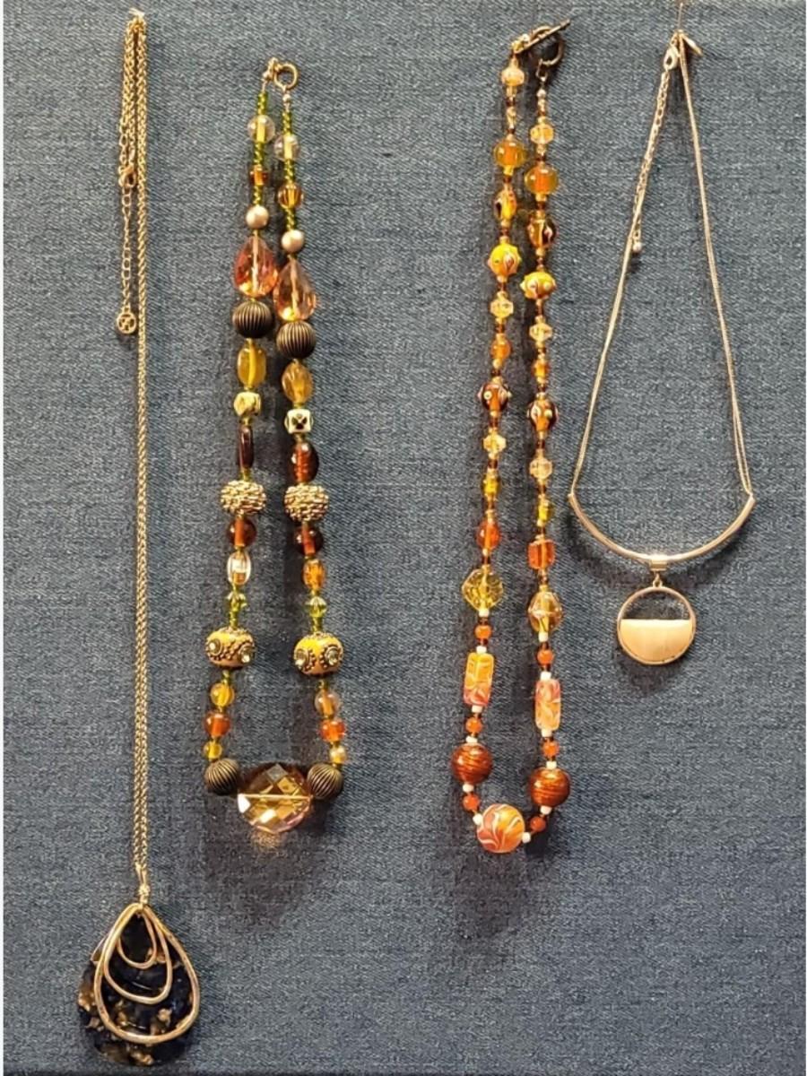 154: Necklace Lot- Necklaces, Brooches. Earrings-