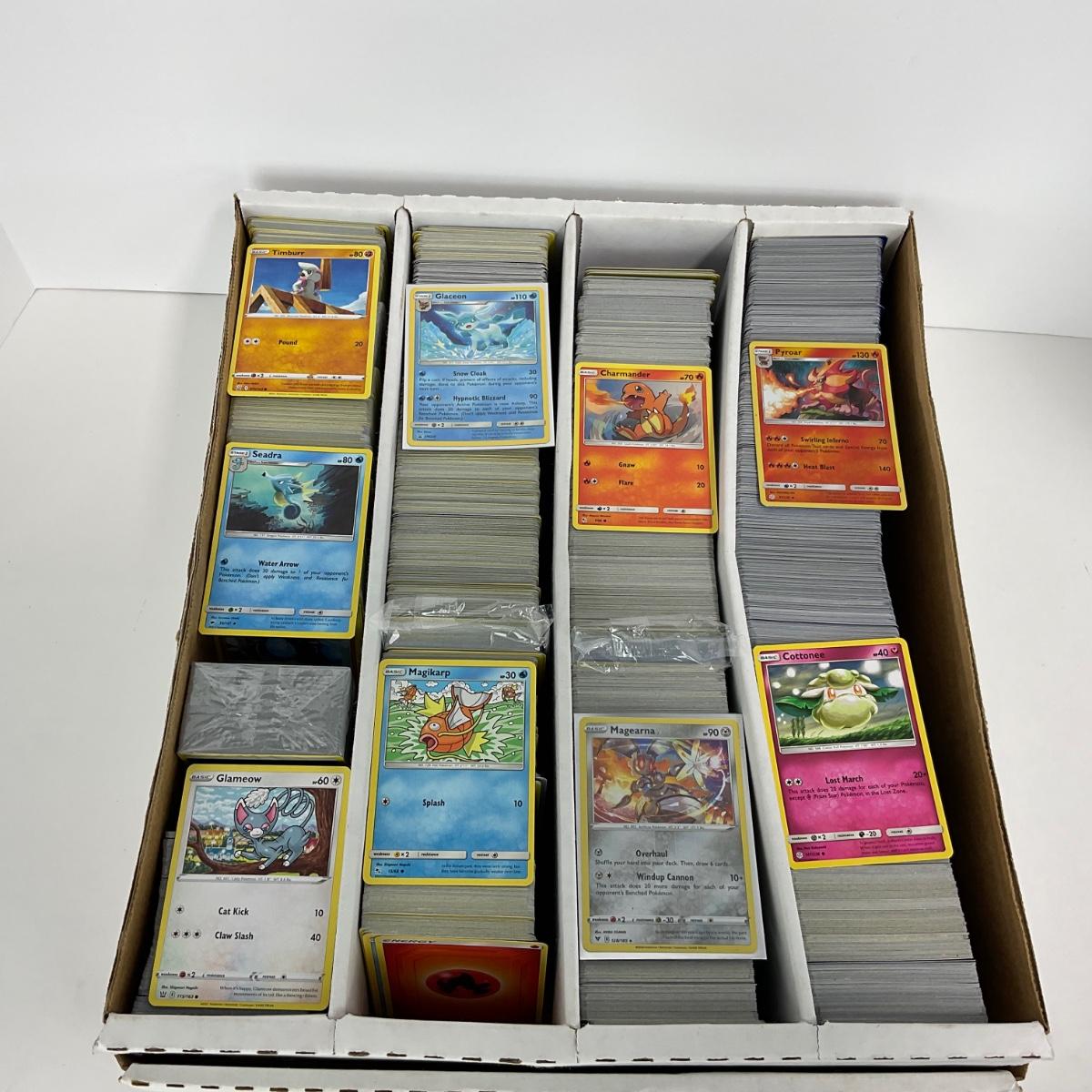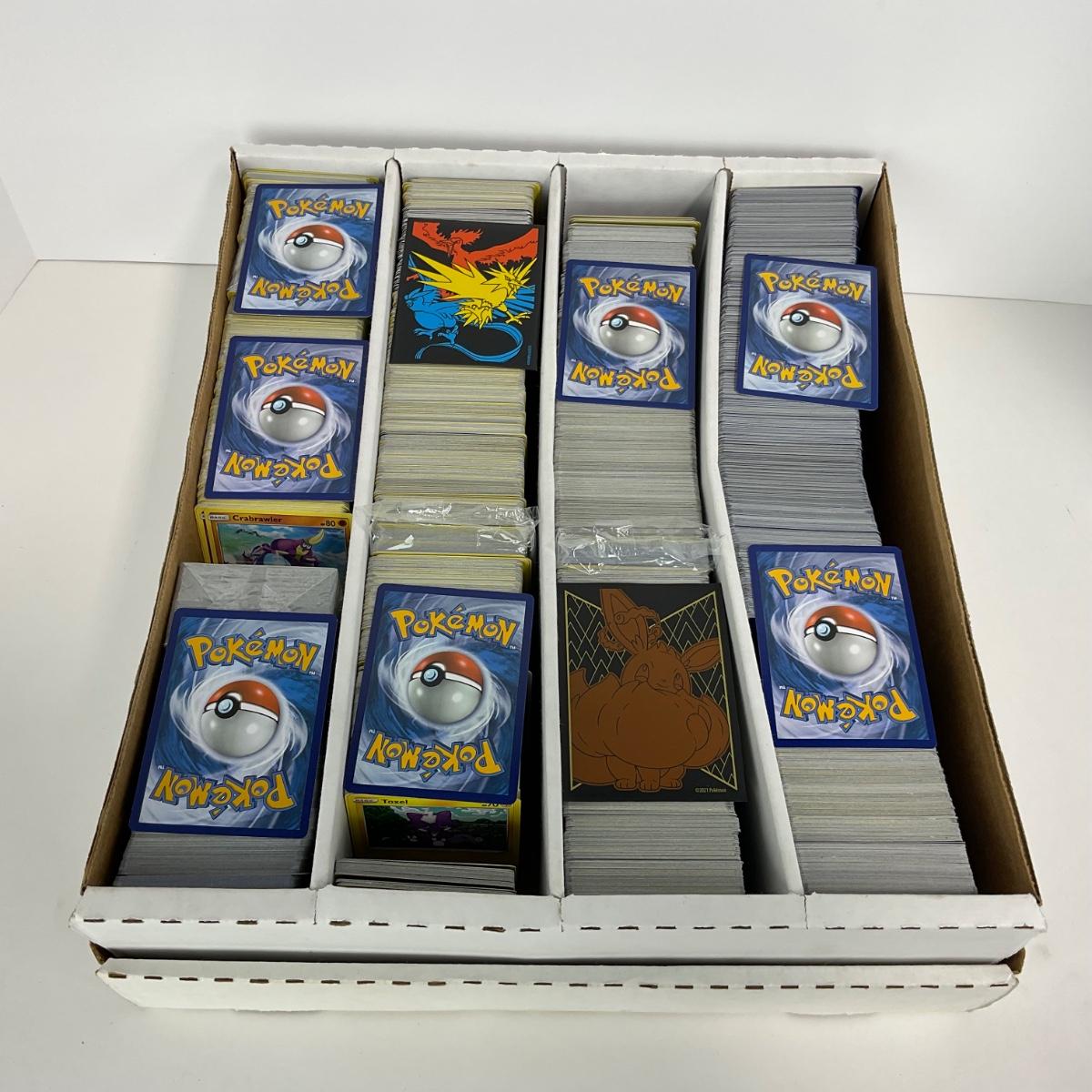 One large box of bulk Pokémon cards. Box is 13 inches by 15 inches. The winning bidder can choose to have these cards shipped with the box they come in or we could save some shipping room by plastic heat wrapping them together. Please inform us after winning which you would prefer. Please see photos for details and condition. ::: Shipping is available on this lot. If you require shipping you must let us know at the close of the auction. We will coordinate with you after the item has been won. Shipping fees will include insurance up to or exceeding the value of all items being mailed. If you have any questions regarding this lot please contact the auctioneer either via this website, by direct email or by phone. PICK UP TIMES and other important information can be found in the TERMS and DESCRIPTION of the auction. Please take a look for pertinent information. Thanks!