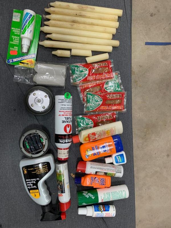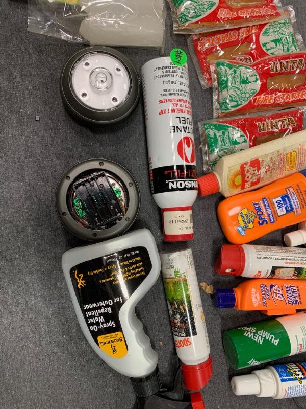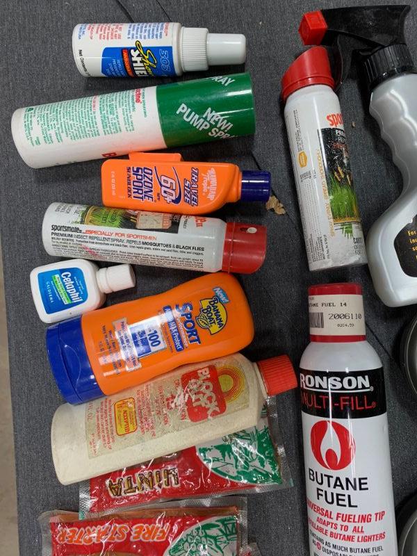 #154 Used Misc Camping Needs. Sunscreen, FireStarters, Water Repellent & More.