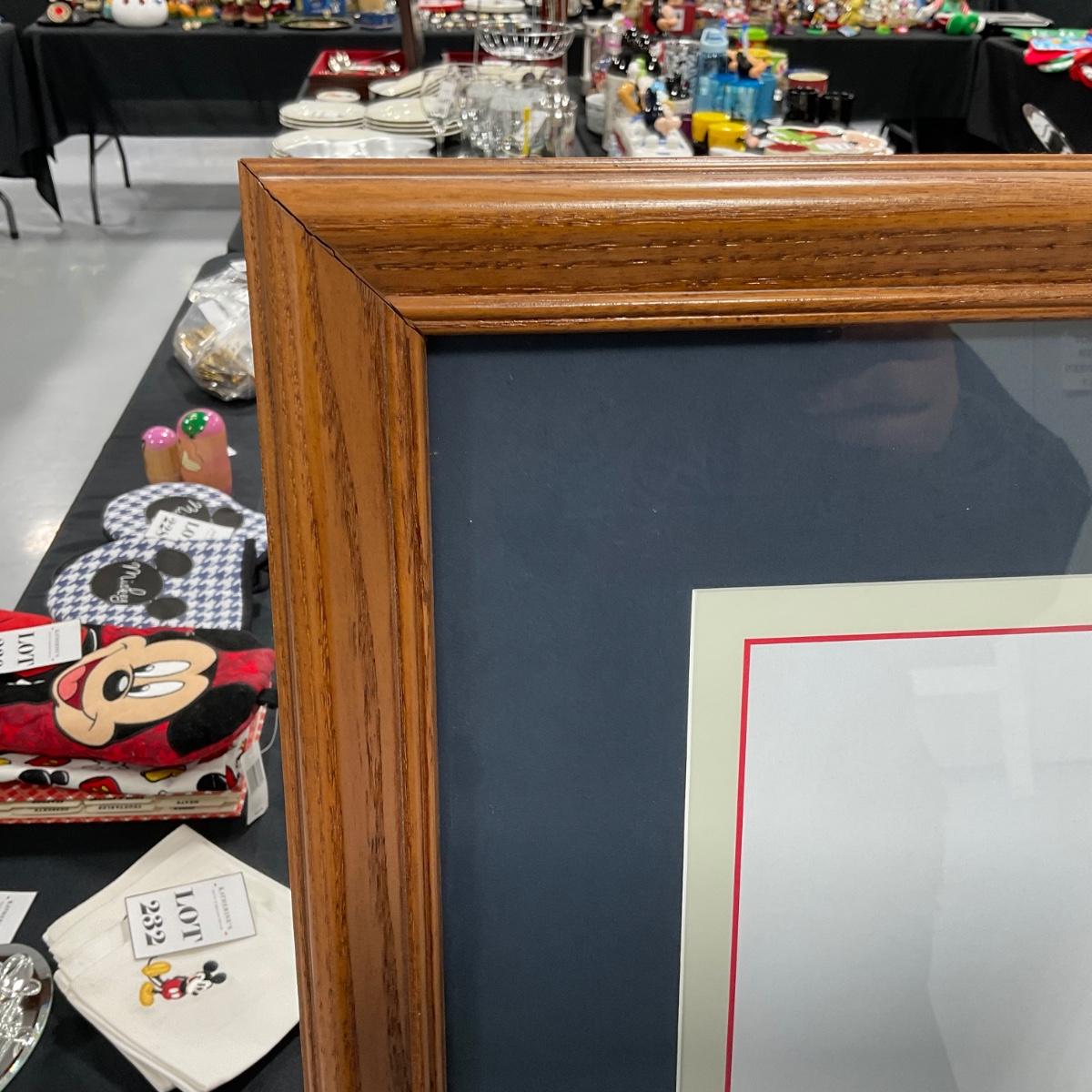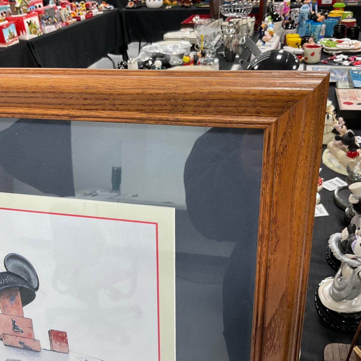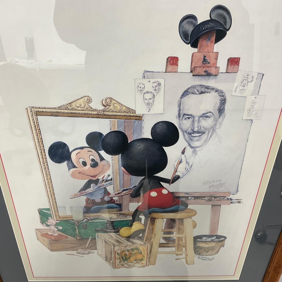 The Art of Disney Large framed wall hanging picture 29 inches wide by 41 inches tall. Does have some slight damage on the back of the picture as well as a missing rubber stopper on the back of the picture. I believe the print to be by artist Charles Boyer titled “Self Portrait”. If you want this item shipped we can do that however it will be sent in a package on its own. Please see photos for details and condition. Any condition statement is given as a courtesy to a client, is an opinion, and should not be treated as a statement of fact. Reference to condition written, oral or within a condition report shall not be regarded as a full account of condition and may not include all defects, alterations, or restorations. Absence of a condition report does not imply a lot is flawless or lacking imperfections or damage. Katherine’s Auction & Appraisal Service shall have no responsibility for any error or omission. Returns shall not be accepted on the basis of condition. ::: Shipping is available on this lot. If you require shipping you must let us know at the close of the auction. We will coordinate with you after the item has been won. Shipping fees will include insurance up to or exceeding the value of all items being mailed. If you have any questions regarding this lot please contact the auctioneer either via this website, by direct email or by phone. PICK UP TIMES and other important information can be found in the TERMS and DESCRIPTION of the auction. Please take a look for pertinent information. Thanks!